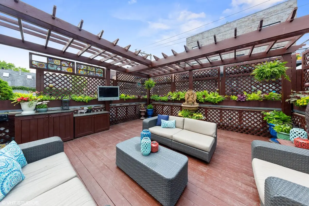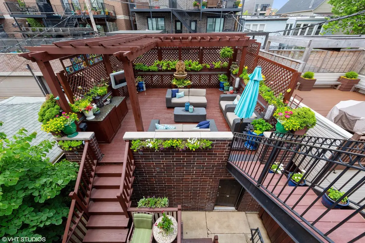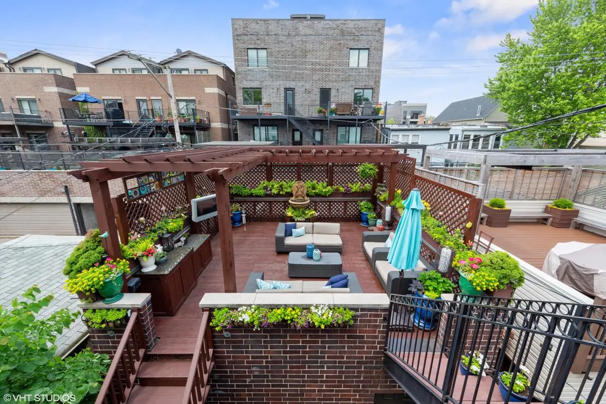 The garage roof deck is wired for sound, outdoor lighting, TV, and a fountain. The pergola and built-in planters create a feeling of beauty, peace and calm rarely found in the city. See floor plan for more details - walking distance to Blaine and Southport shopping/retail. This block is a gem - and it's a happy home filled with joy, ready for the next owner to create their own happy memories.