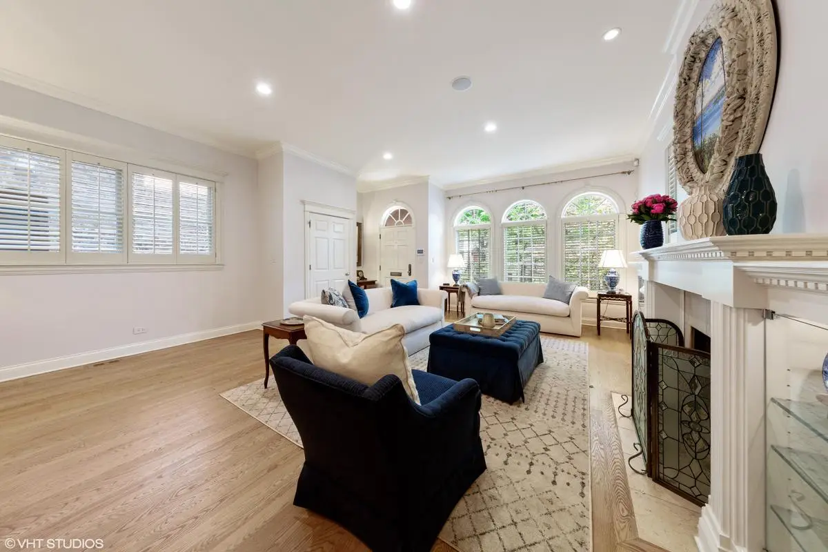 Recently updated for today's aesthetic, this "better-than-new home" offers mega storage with built-ins and closets, three tricked-out decks (landscaping, lights, sound) and a lower level that could be a used as a garden rental or nanny quarters. Open and grand living/dining room with lovely moldings and cabinetry flanking gas fireplace - warm light from front Palladian windows.