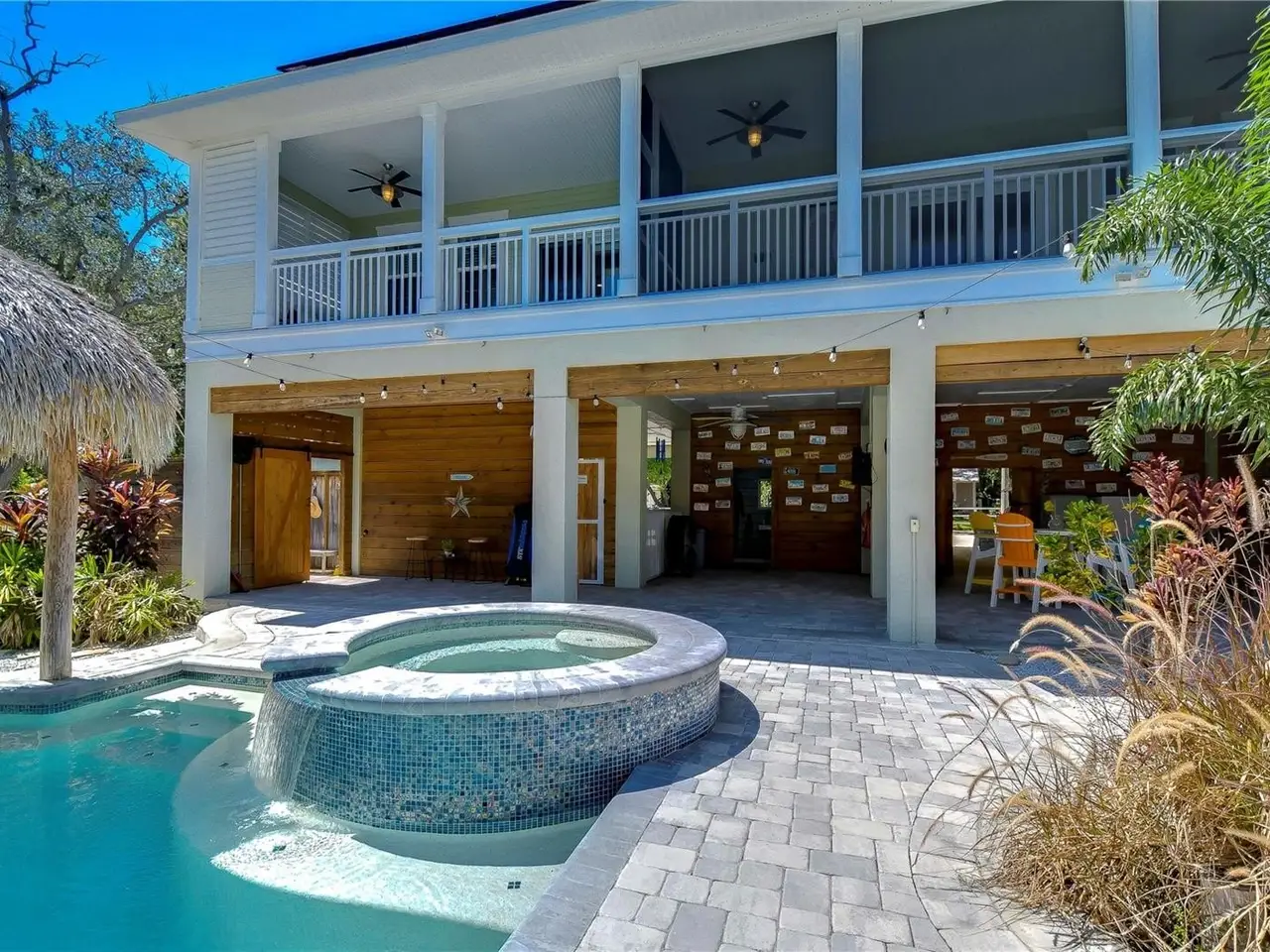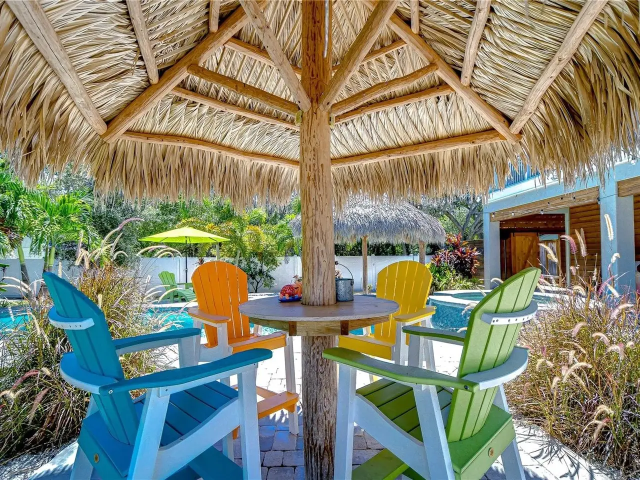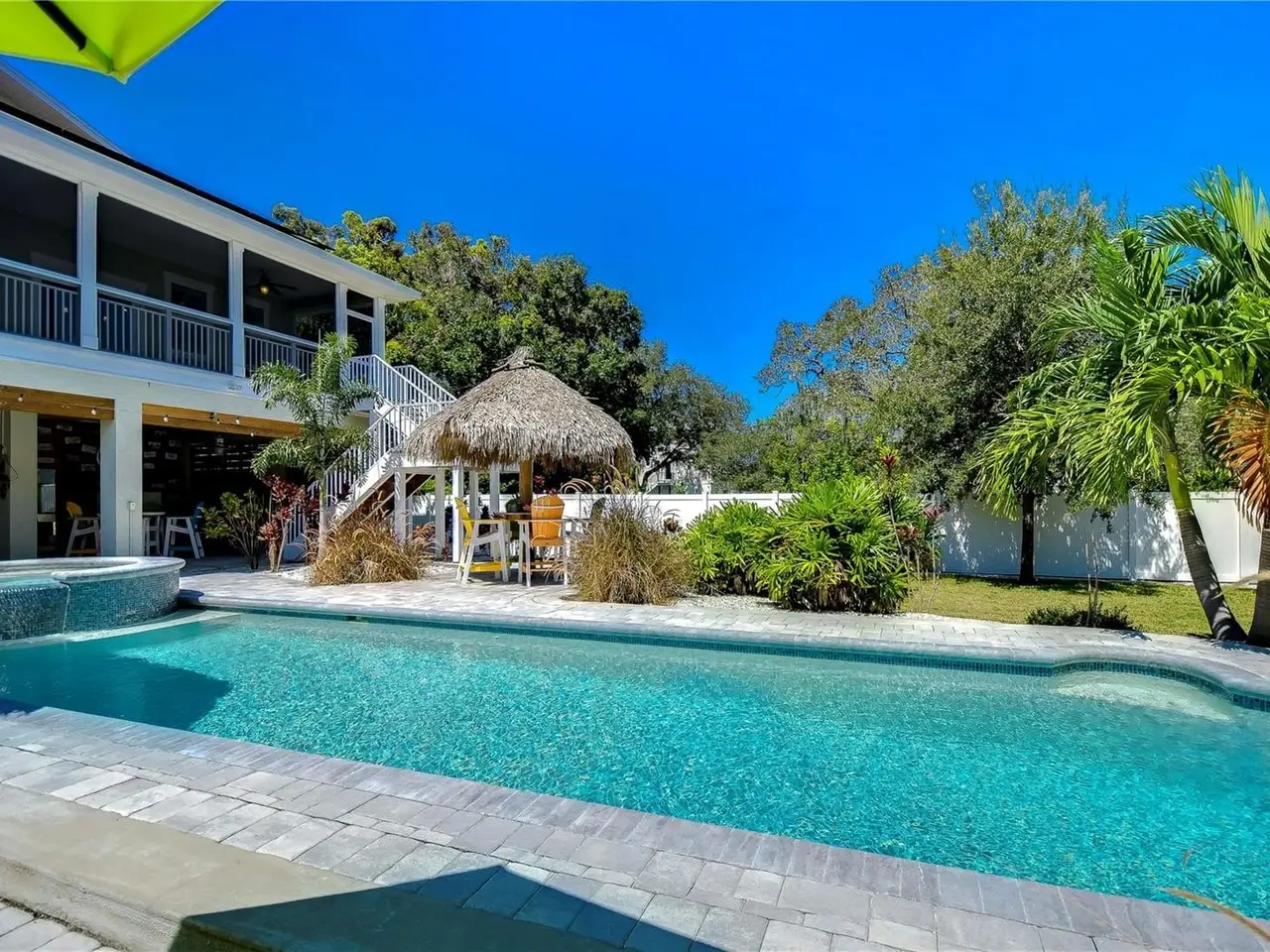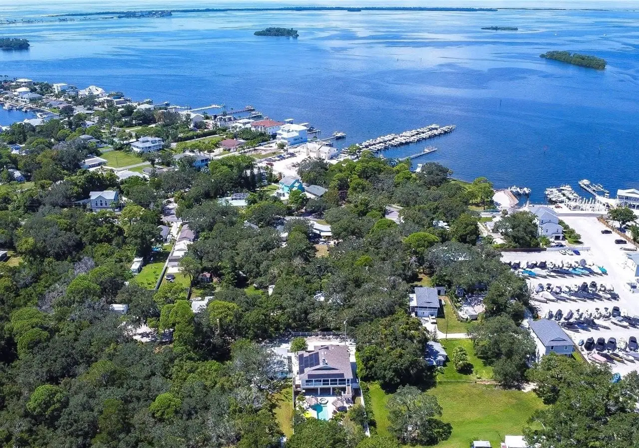 Experience upscale Coastal living in this elevated home...where meticulous construction meets comfortable luxury. Designed to embrace the Florida lifestyle inside and out, this wonderful property offers so much to enjoy.  From a Breezy, light and bright interior to a tropical oasis backyard, it was Custom designed and built in 2016 with impeccable attention to detail and fortified for strength. This private stilt home offers both casually luxurious living and peace of mind.  It proudly sits 17 feet above sea level on a private .32 acre lot and was constructed to rigorous FEMA standards.  Crafted for resilience and eco-conscious living, the home features Hurricane-rated impact windows and doors, 55 solar panels that keep electric bills to an astonishing $30 per month, 140-gallon propane tank powering on-demand hot water, a grill, and generator connections, and all of the under home lumber is desirable "saltwater splash" dock grade, and pilings, headers, footers are concrete. Inside you will discover a space that wows with high quality and uniquely designed finishes.. custom shiplap walls, barn door accents, soaring vaulted ceilings with dimmable LED lighting and fans, and plantation shutters throughout.  The floorplan is fun and functional and just right for everyday living or entertaining.  Enjoy generous bedrooms, laundry utility room, and walk in pantry.  Sliders from Living Room and primary bedroom open to an amazing screened in patio overlooking the backyard.  1000lb exterior elevator lift, 240 sqft of under home storage and under house/carport parking for up to 8 vehicles!  And the Backyard...will truly take your breath away! It is private oasis that would make Jimmy Buffett proud! Showcasing a 2020 heated and cooled sparkling saltwater pool complete with spillover spa a shaded grotto seating, two locally designed and hand crafted tiki huts, and over 1,500 square feet of pavered patio space, and just under 2000 square feet of covered patio space for shady lounging and outdoor living,  a whole house mosquito misting system and a retro fabulous custom outdoor surfboard and cypress lined shower. Your guests will never want to leave! Ozona is a unique community with coastal charm, 5 marinas, restaurants that are loved, and a waterfront with the most beautiful sunsets! Ride your bike or drive your golf cart all around town! This area is in unincorporated Pinellas -- possible short term rental and available fully furnished! Come make 262 Banana Road your Coastal Paradise! View matterport and virtual tour at https://my.matterport.com/show/?m=t4Nu3C1amJL&mls=1