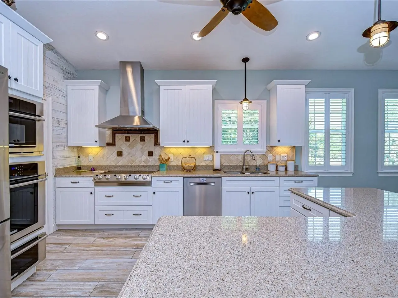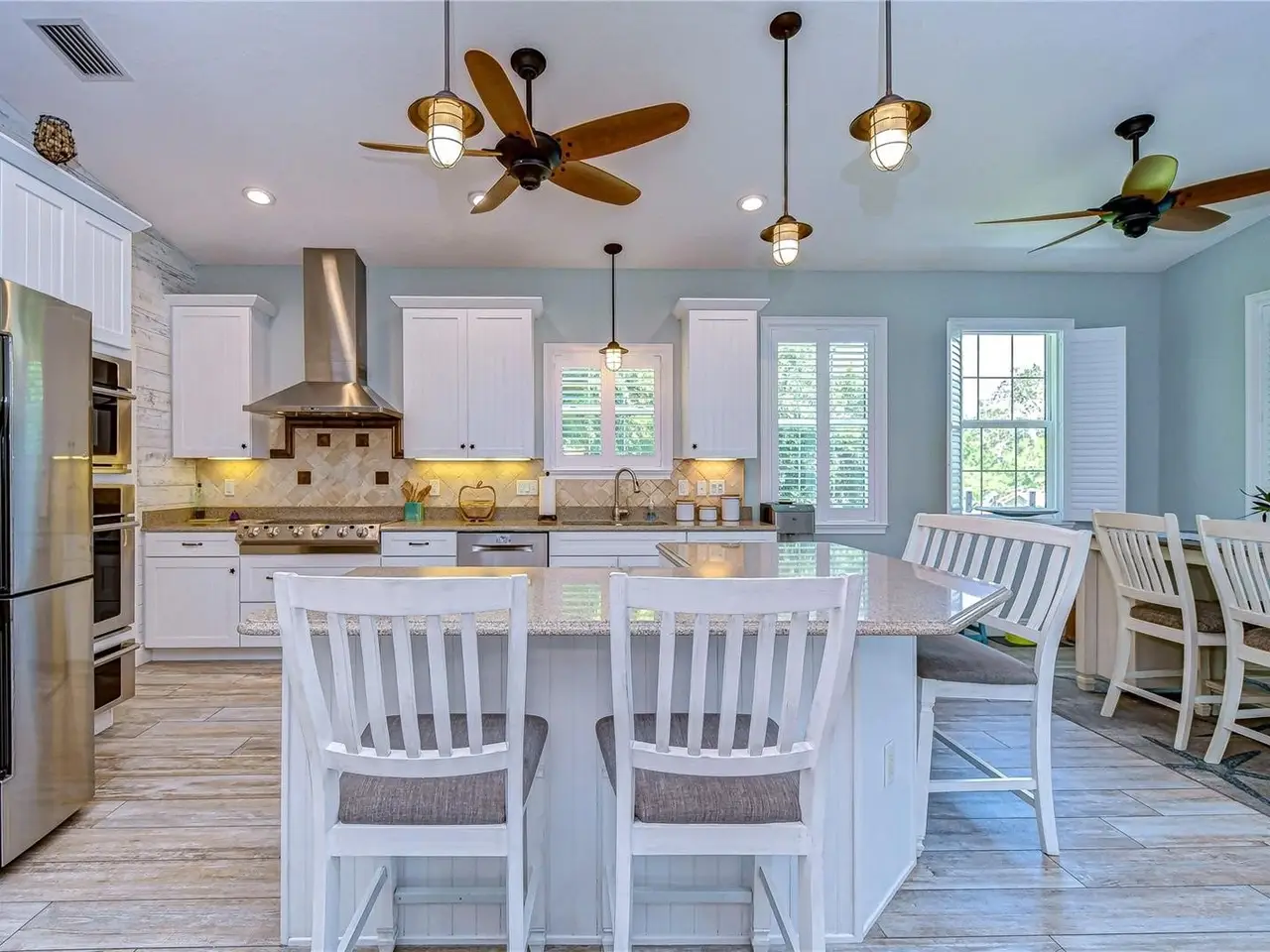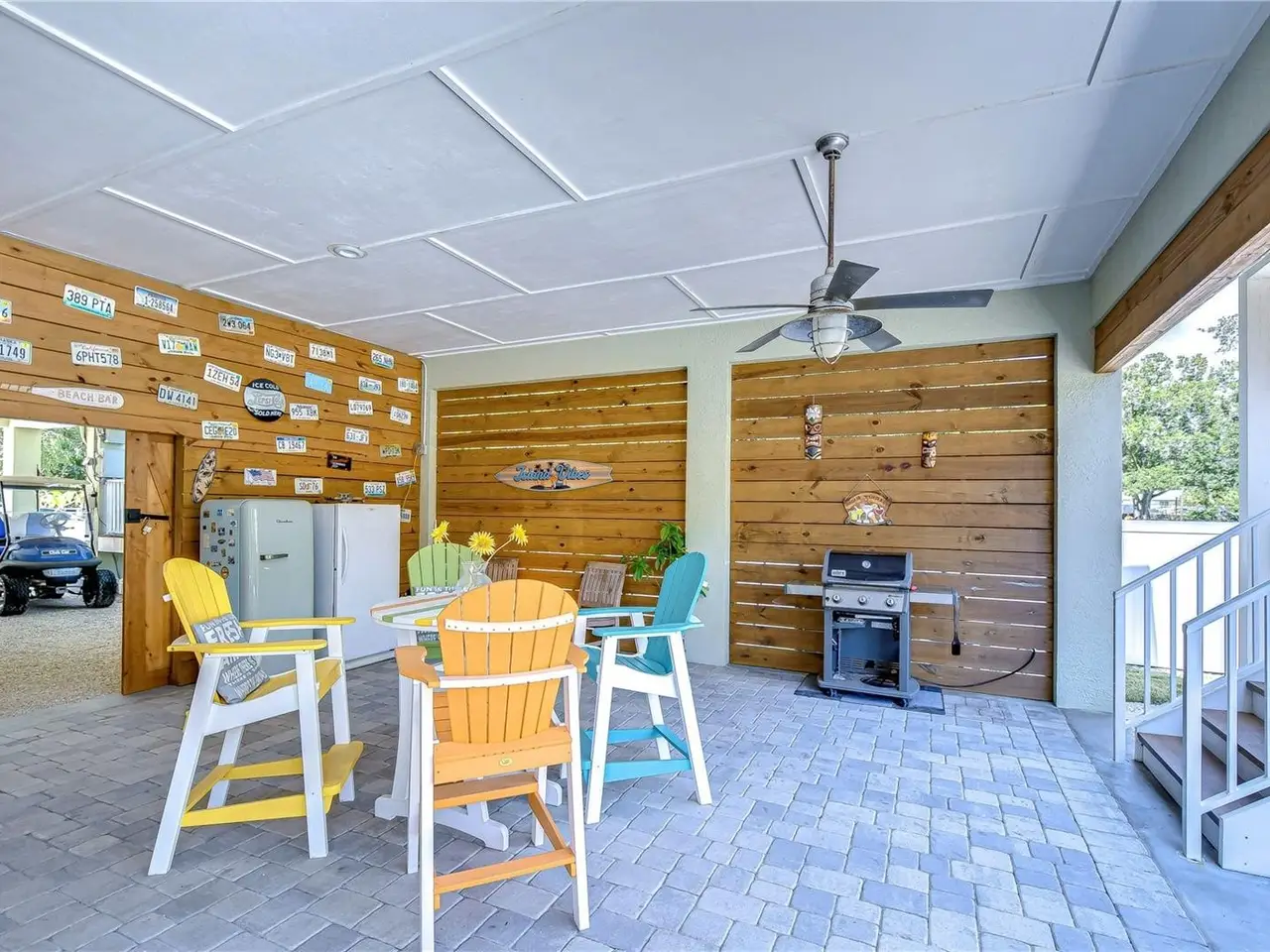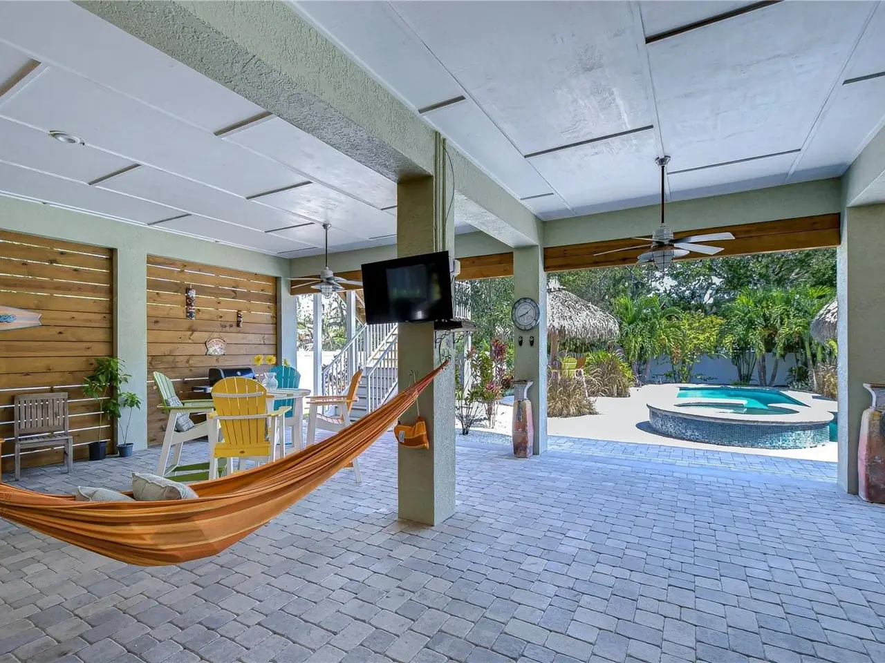 Experience upscale Coastal living in this elevated home...where meticulous construction meets comfortable luxury. Designed to embrace the Florida lifestyle inside and out, this wonderful property offers so much to enjoy.  From a Breezy, light and bright interior to a tropical oasis backyard, it was Custom designed and built in 2016 with impeccable attention to detail and fortified for strength. This private stilt home offers both casually luxurious living and peace of mind.  It proudly sits 17 feet above sea level on a private .32 acre lot and was constructed to rigorous FEMA standards.  Crafted for resilience and eco-conscious living, the home features Hurricane-rated impact windows and doors, 55 solar panels that keep electric bills to an astonishing $30 per month, 140-gallon propane tank powering on-demand hot water, a grill, and generator connections, and all of the under home lumber is desirable "saltwater splash" dock grade, and pilings, headers, footers are concrete. Inside you will discover a space that wows with high quality and uniquely designed finishes.. custom shiplap walls, barn door accents, soaring vaulted ceilings with dimmable LED lighting and fans, and plantation shutters throughout.  The floorplan is fun and functional and just right for everyday living or entertaining.  Enjoy generous bedrooms, laundry utility room, and walk in pantry.  Sliders from Living Room and primary bedroom open to an amazing screened in patio overlooking the backyard.  1000lb exterior elevator lift, 240 sqft of under home storage and under house/carport parking for up to 8 vehicles!  And the Backyard...will truly take your breath away! It is private oasis that would make Jimmy Buffett proud! Showcasing a 2020 heated and cooled sparkling saltwater pool complete with spillover spa a shaded grotto seating, two locally designed and hand crafted tiki huts, and over 1,500 square feet of pavered patio space, and just under 2000 square feet of covered patio space for shady lounging and outdoor living,  a whole house mosquito misting system and a retro fabulous custom outdoor surfboard and cypress lined shower. Your guests will never want to leave! Ozona is a unique community with coastal charm, 5 marinas, restaurants that are loved, and a waterfront with the most beautiful sunsets! Ride your bike or drive your golf cart all around town! This area is in unincorporated Pinellas -- possible short term rental and available fully furnished! Come make 262 Banana Road your Coastal Paradise! View matterport and virtual tour at https://my.matterport.com/show/?m=t4Nu3C1amJL&mls=1