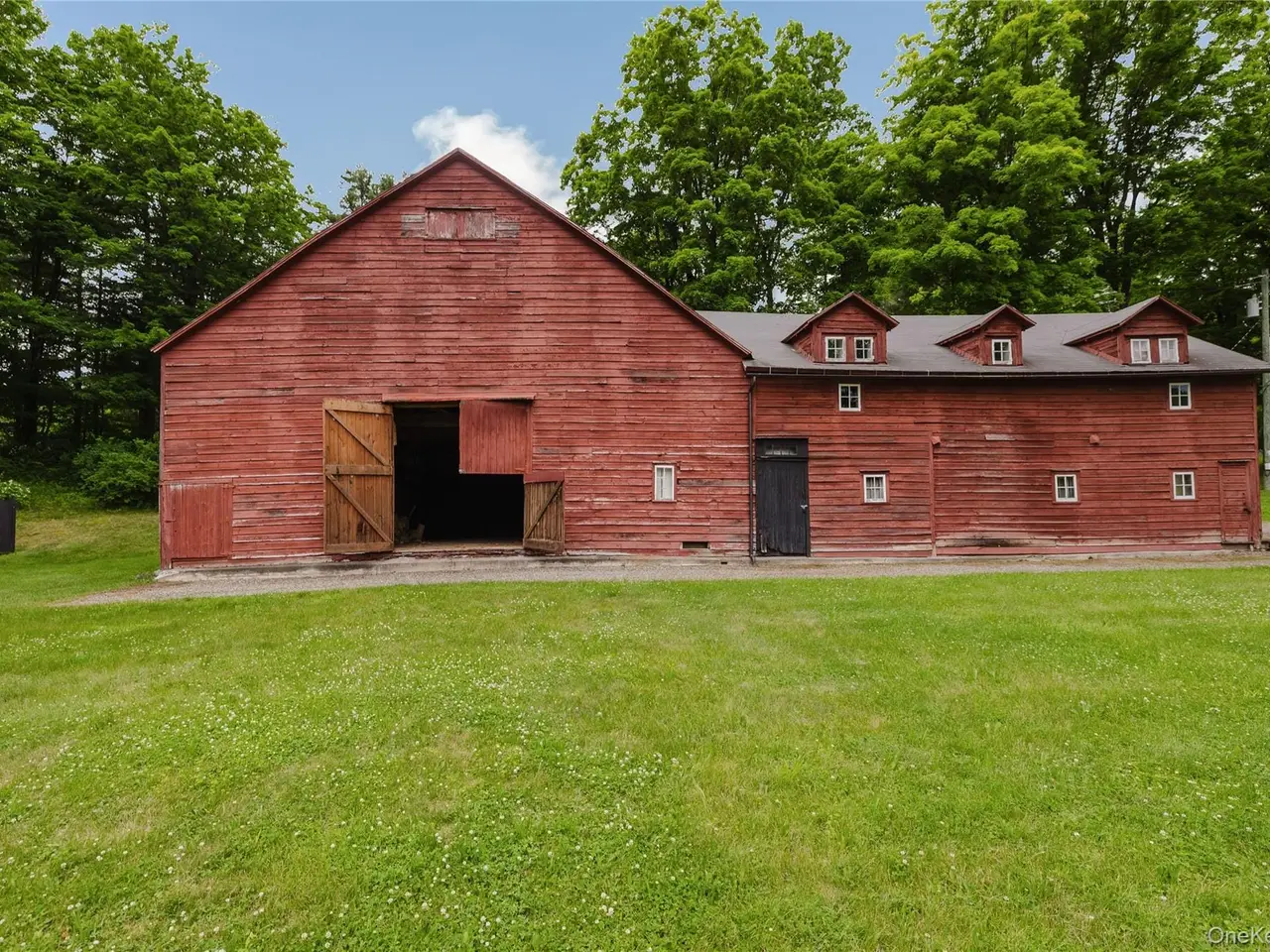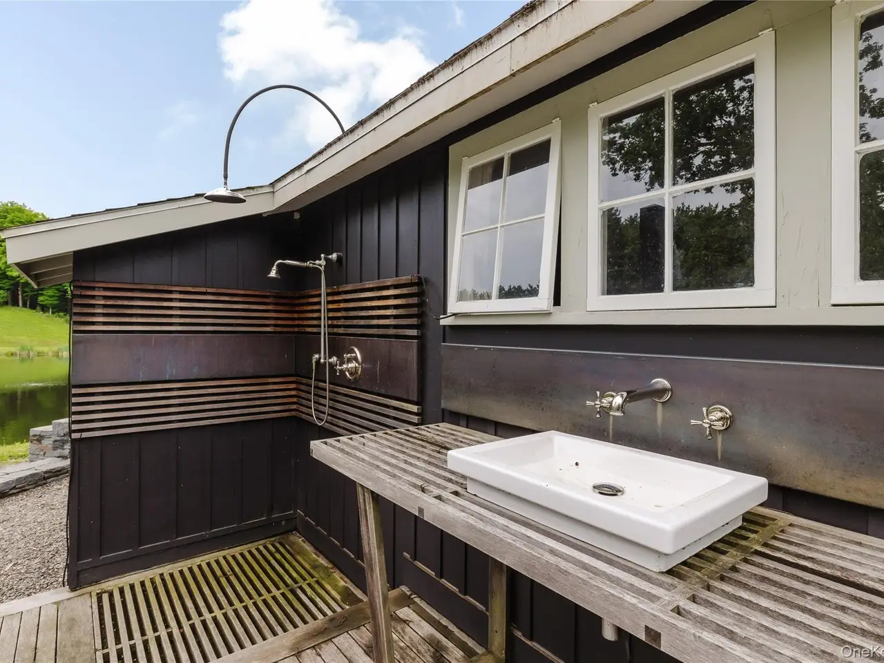 Welcome to Mac Brown Waterhouse, a storied 119-acre estate set within a hidden valley offering complete seclusion and timeless beauty. The original 1830s farmhouse is tucked away at the end of a private lane in Claverack, NY, where the road terminates in a round gravel driveway anchored by the property's original stone well. Two large ponds grace the land, one directly in front of the house that is aerated and swimmable. Sited among meadows and mature woodlands, the main house, upgraded barn, and charming studio shed are framed by terraced stonework, a network of trails, and thoughtfully designed gardens. The setting is peaceful, restorative, and deeply connected to the land, yet only a short drive to both Hudson and Great Barrington. The antique farmhouse offers four bedrooms and two bathrooms across 2,825 square feet, where original details like moldings, wood floors, and Dutch doors preserve its old-world charm. A generous double living room and an office nook outfitted with Vitsoe modular shelving, lead to a bright dining area, kitchen, and direct access to the patios and gardens. The layout encourages an easy indoor-outdoor rhythm, with covered porches, and multiple terraces for lounging, cooking, or gathering. Two staircases rise to the upper-level bedrooms, where the southern exposure fills each room with light, and the attic has been insulated to improve year-round comfort. Throughout the home an intentional color palette lends softness and cohesion. The overall design brings together European sensibility and Hudson Valley character, balancing utility with ease, warmth, and quiet sophistication. Across the garden sits a fully insulated, historic barn that has been transformed into a large-scale creative studio, complete with a bathroom with a clawfoot tub, kitchenette, updated electrical and HVAC. A detached potting shed offers another versatile space, ideal as a garden studio, writer's nook, or future guest cottage. Its connected to an outdoor bath deck that invites restorative soaks beneath the stars with its fireplace, clawfoot tub, and outdoor shower. Next to the house, a carport with EV charging and a full-property generator ensures comfort and continuity year-round. The primary pond is the centerpiece of the property - aerated, swimmable, and bordered by a pebble beach and firepit. It's ideal for swimming, birdwatching, or evening gatherings. Cranes, herons, and even bald eagle sightings make it a birdwatching paradise. Terraced gardens by The Secret Gardener surround the home with a cottage-style blend of flowering plants, herbs and vegetables. Rewilded fields and meadows lead to two miles of maintained trails through native grasses and towering trees. The land qualifies for a forestry exemption and includes multiple cleared areas, offering potential for a guest house, horses, or even a helipad. Whether hosting music on the lawn, harvesting from the garden, or watching the changing sky reflect in the pond, Mac Brown Waterhouse is a rare legacy estate and true sanctuary.