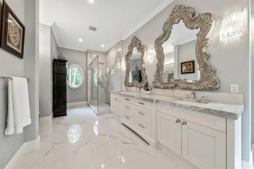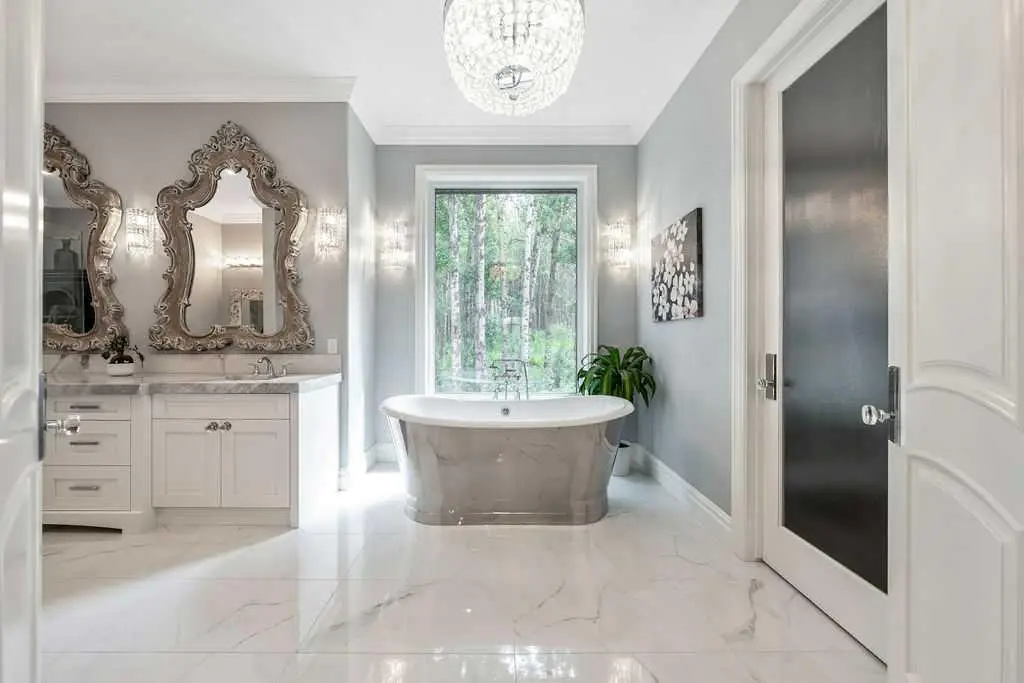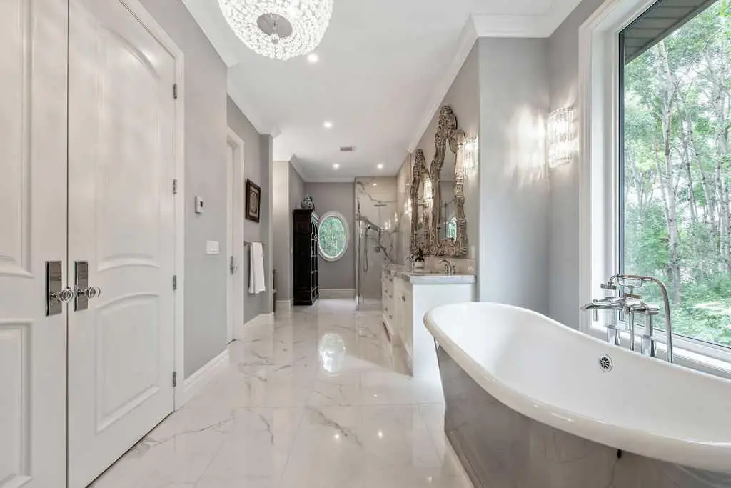 Spa-like bathroom with marble tiles