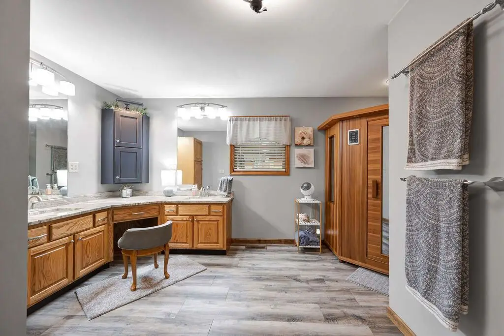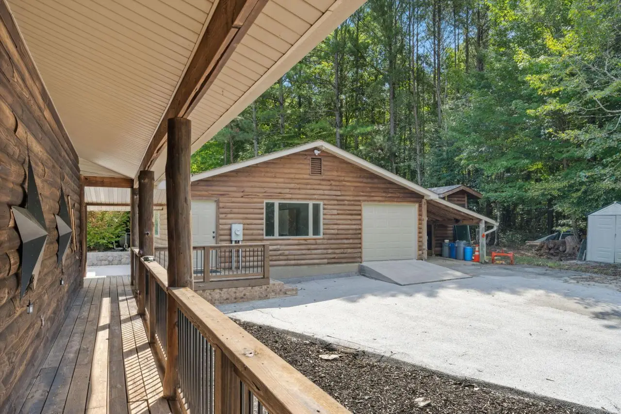 Welcome to your private sanctuary - where luxury meets rustic charm in this stunning custom-built home inspired by the serene beauty of the Smoky Mountains. Nestled on approximately 6.74 acres, this 2,718± sq ft masterpiece is a rare opportunity to own a conventionally framed, log cabin-style retreat, meticulously crafted by its original owners with no detail spared. Totally updated, roof, windows, HVAC, and water heaters have been replaced 2023-2025. Nothing spared. As you arrive, you'll be greeted by one of two private ponds, setting a tranquil tone before you even step inside. The interior opens to a breathtaking great room with soaring cathedral ceilings, seamlessly connected to a gourmet kitchen featuring custom cabinetry, premium countertops, and high-end appliances - perfect for both entertaining and everyday living. The luxurious primary suite is a true retreat, complete with its own fireplace, dual walk-in closets, a spa-like ensuite with upscale finishes, and even a private sauna. Two additional bedrooms, a spacious office (or optional fourth bedroom), a full bath, and a well-appointed laundry room round out the main home's thoughtful layout. Ideal for guests or multi-generational living, the separate 1500 sf guest house offers an open-concept design, full kitchen, and bath - perfect as a mother-in-law suite, extended stay for older children, or a potential income-producing Airbnb. Step outside to your very own resort-style oasis. The expansive patio and sparkling pool are rivaled only by the stylish cabana - complete with built-in grill, refrigerator, and cooler storage to keep refreshments flowing all day long. Additional features include a large 4-bay garage for your RVs, boats, or collector cars, a dedicated workshop, and even a deer-skinning station for outdoor enthusiasts. 6.64 acres joining this property with 2 buildings can be purchased for $250k. This is more than a home - it's a resort lifestyle. Schedule your private showing.