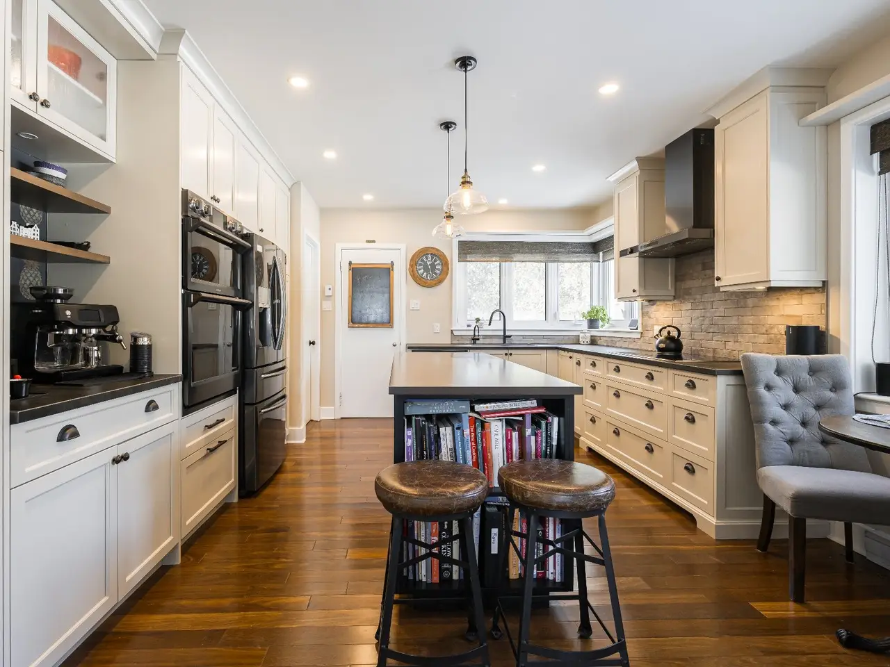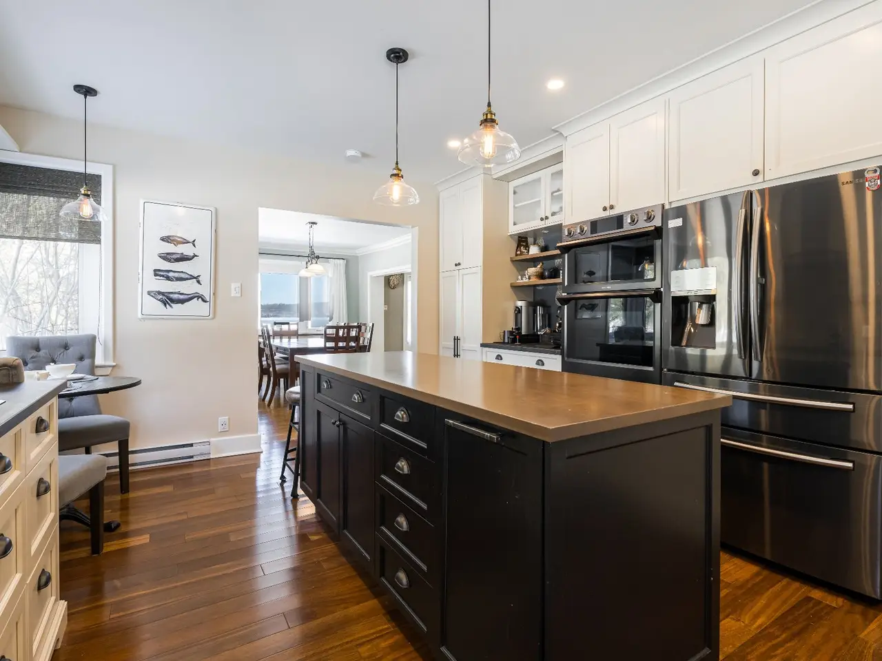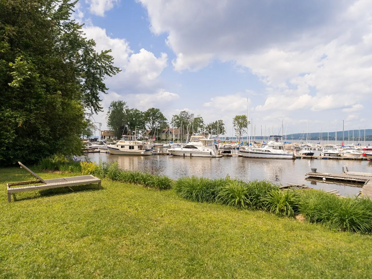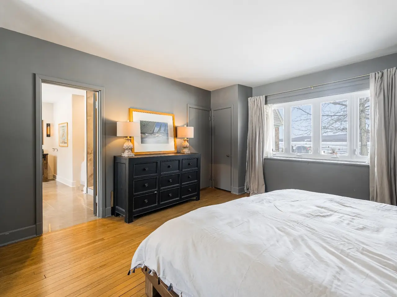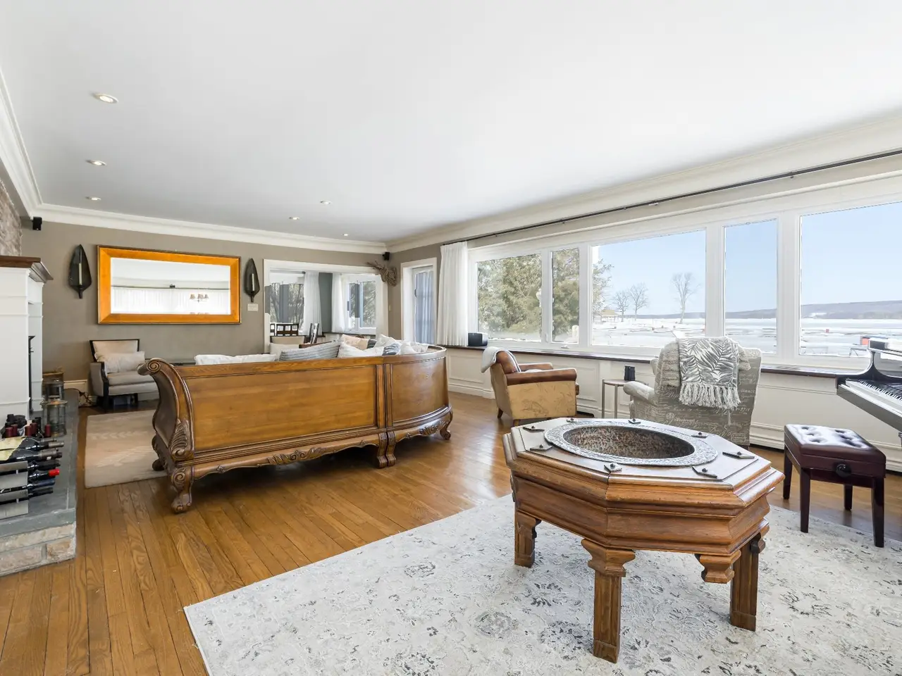 This 4 acre waterfront estate,offers an elegant 5-bedroom stone residence, and 257 feet of lakefront,with panoramic views overlooking the Hudson Yacht Club and Lake of Two Mountains.Nestled at the end of a quiet cul-de-sac,with a gated entrance and accessed via a long,winding,tree-lined drive,the property is within a short walking distance to the village.The residence has undergone $280,000 in renovations and features exquisite stone craftsmanship,hardwood flooring,panoramic windows,a grand wood-burning fireplace,designer kitchen,ground floor primary suite,professional landscaping & inground pool.The asking price is near municipal valuation.