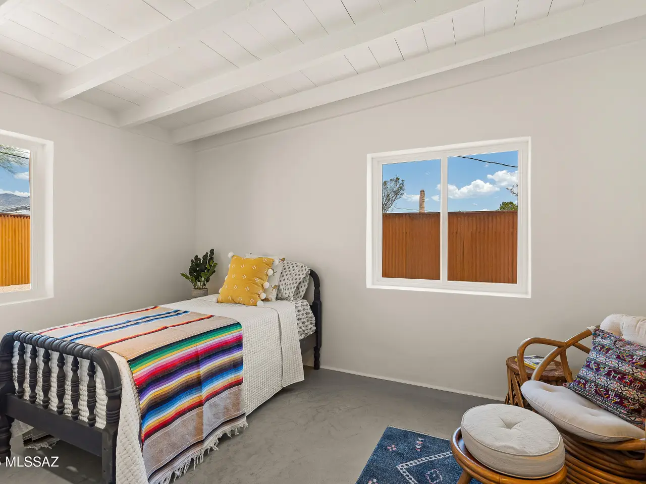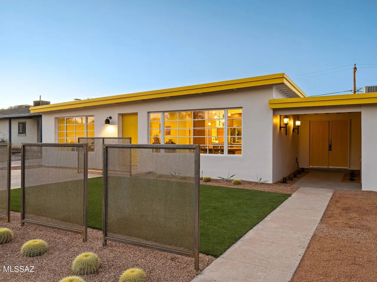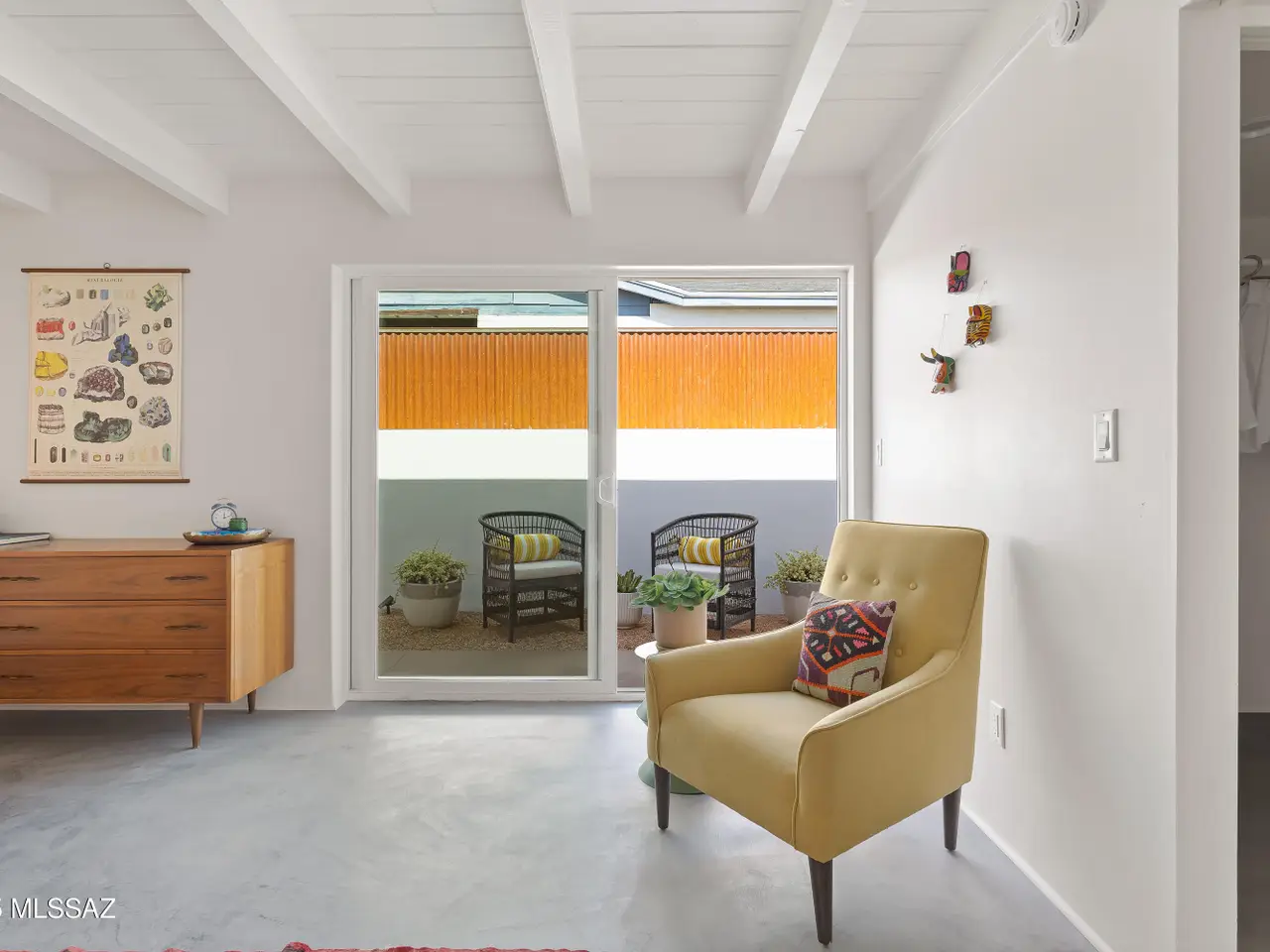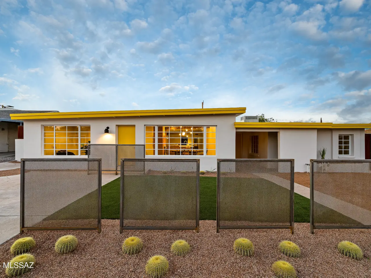 This stunningly reimagined home in coveted Catalina Vista exhibits a beautiful balance of its historic architectural roots and the modern amenities. Each space is infused with era-sensitive materials and functional upgrades. With great care the current owners have replaced systems and refurbished character-rich details. New roof, HVAC units, water heaters, lighting, landscaping, windows, insulation, concrete floors, premium smooth stucco, and both interior and exterior paint to name just a few. The main home centers around a new kitchen with high-end appliances, honed quartz counters, seating for eight, and a spacious pantry/laundry room adjacent. Wood beamed ceilings, expansive natural light through the many sliding glass doors, and period lighting exude the Mid-Century modern aesthetic classic to the 1950's era of this home. The primary suite has two walk-in closets, a private patio and spa retreat style bathroom with a dual sinks and a private commode. Three additional bedrooms and a den/office complete the main home. Across the brick patio or conveniently through the foyer the uncommonly spacious guest quarters feature one bedroom, a walk-in closet and kitchenette in the living room. All this just a short distance to the University of Arizona, Banner Hospital, Tahoe Park, and the Arizona Inn.