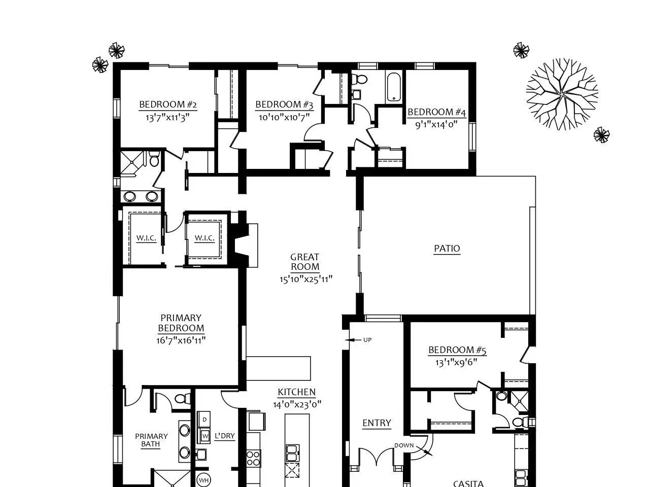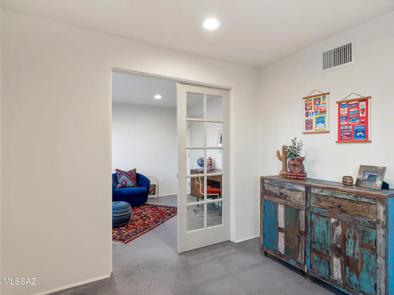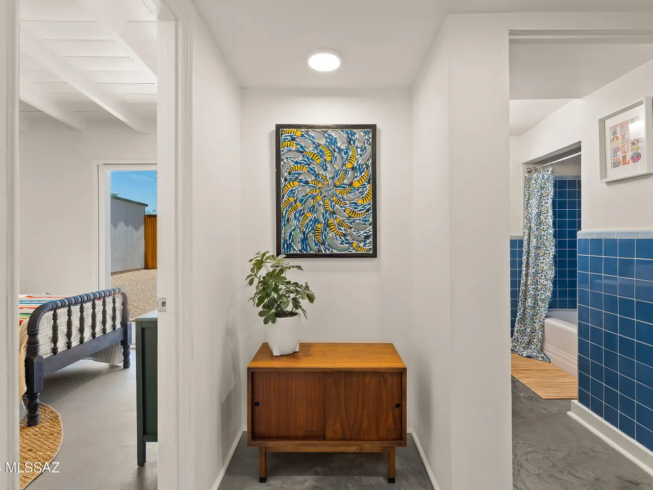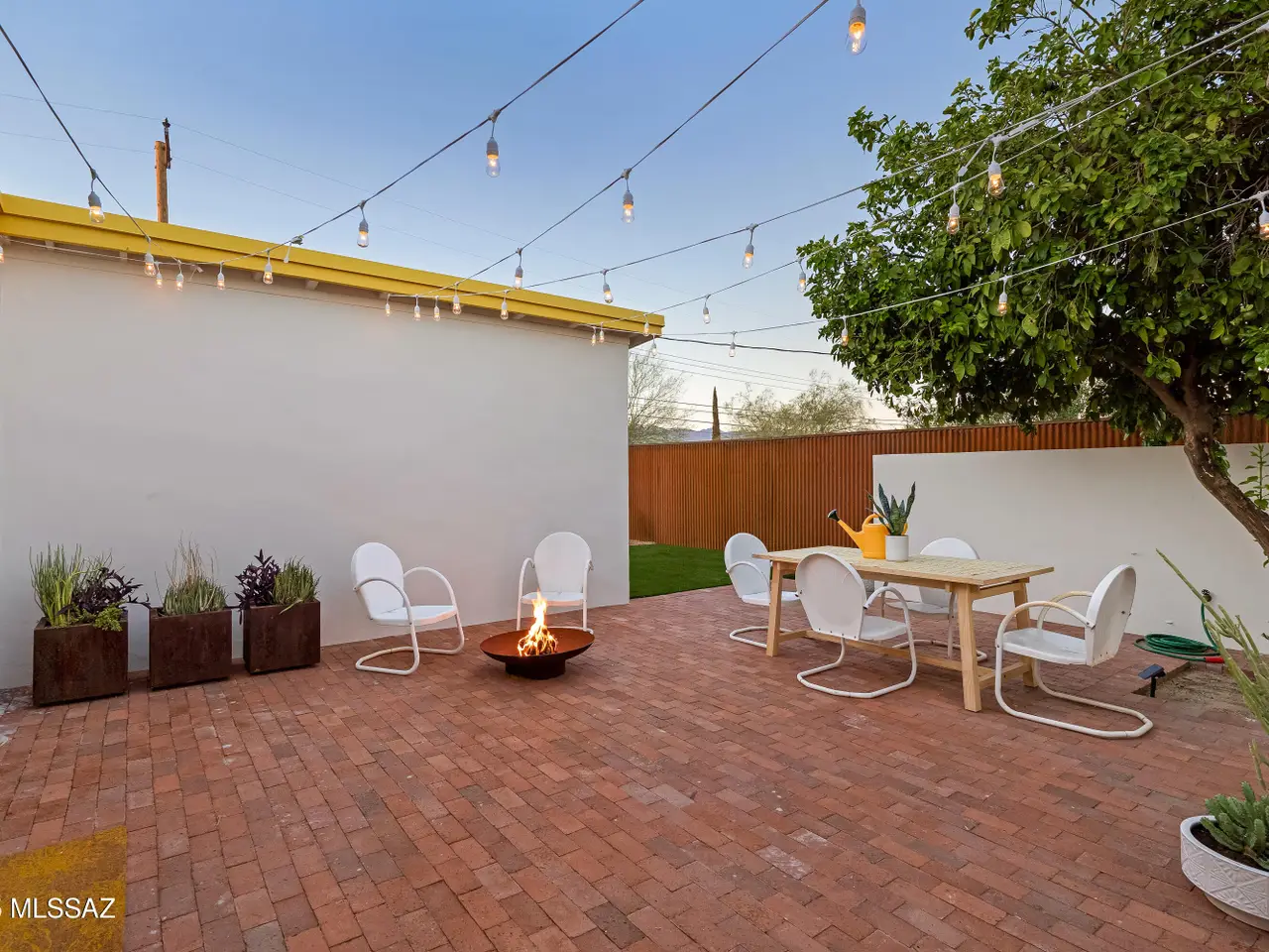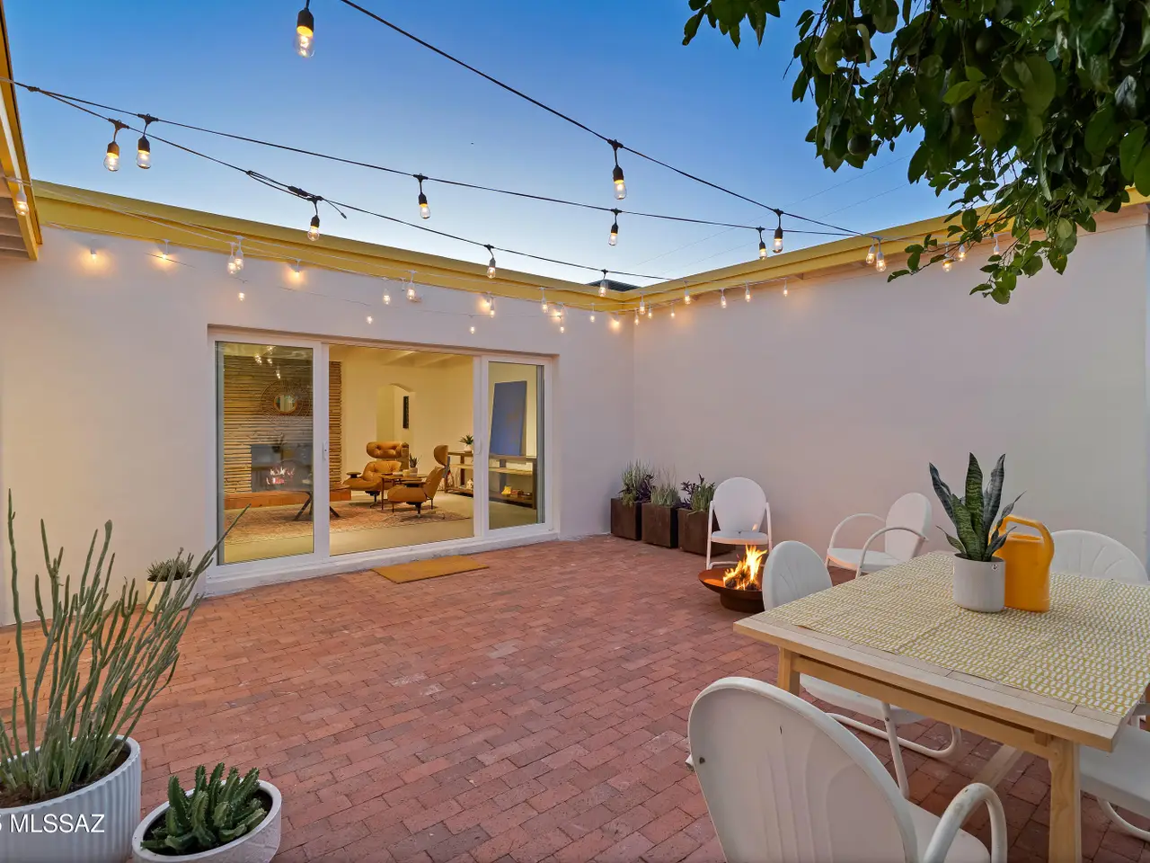 This stunningly reimagined home in coveted Catalina Vista exhibits a beautiful balance of its historic architectural roots and the modern amenities. Each space is infused with era-sensitive materials and functional upgrades. With great care the current owners have replaced systems and refurbished character-rich details. New roof, HVAC units, water heaters, lighting, landscaping, windows, insulation, concrete floors, premium smooth stucco, and both interior and exterior paint to name just a few. The main home centers around a new kitchen with high-end appliances, honed quartz counters, seating for eight, and a spacious pantry/laundry room adjacent. Wood beamed ceilings, expansive natural light through the many sliding glass doors, and period lighting exude the Mid-Century modern aesthetic classic to the 1950's era of this home. The primary suite has two walk-in closets, a private patio and spa retreat style bathroom with a dual sinks and a private commode. Three additional bedrooms and a den/office complete the main home. Across the brick patio or conveniently through the foyer the uncommonly spacious guest quarters feature one bedroom, a walk-in closet and kitchenette in the living room. All this just a short distance to the University of Arizona, Banner Hospital, Tahoe Park, and the Arizona Inn.