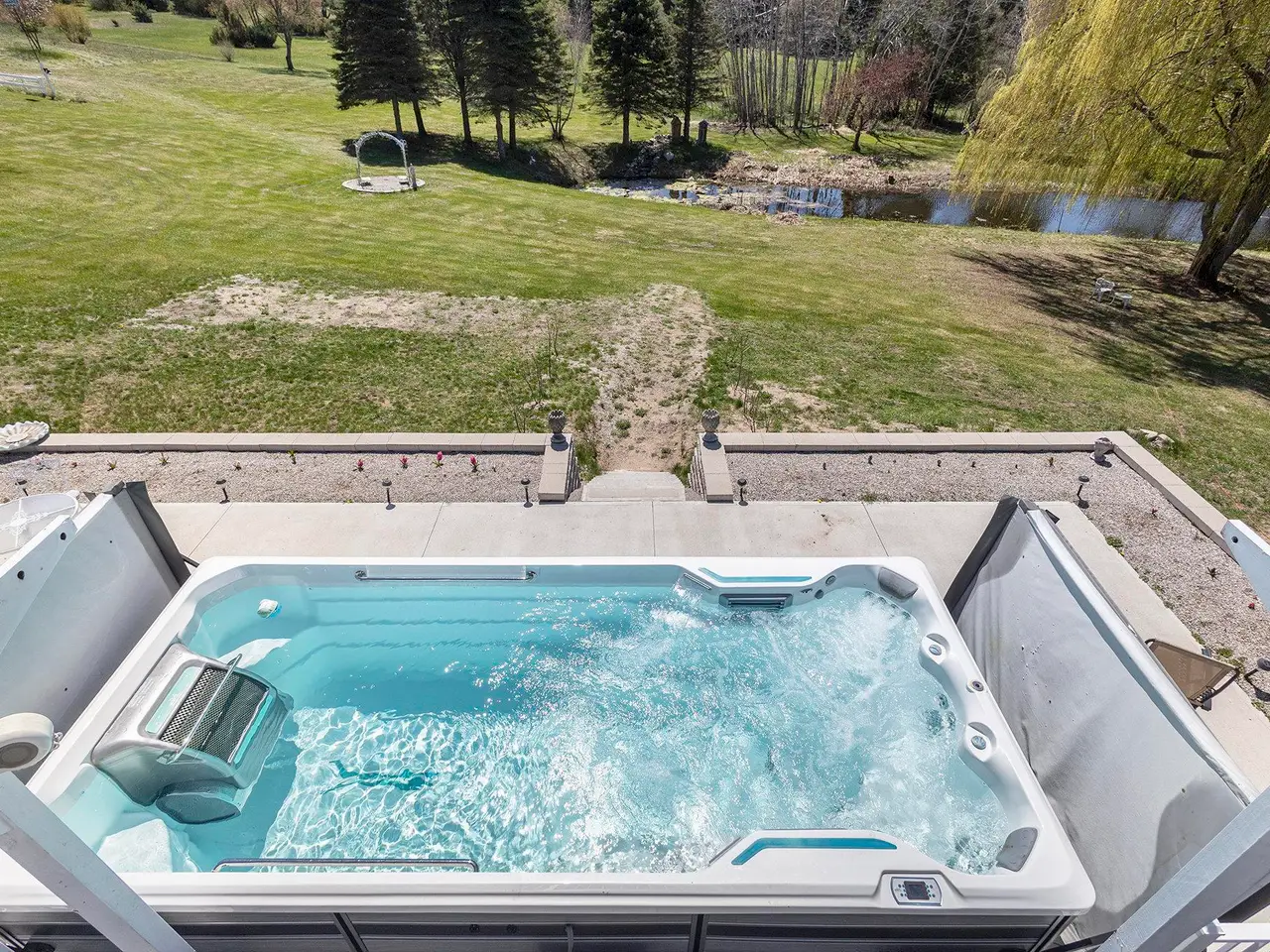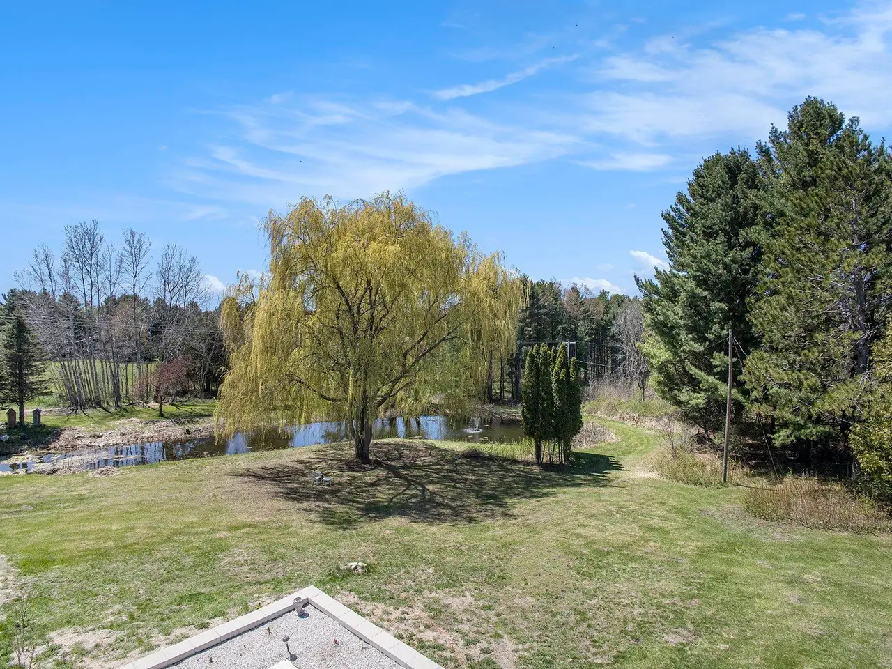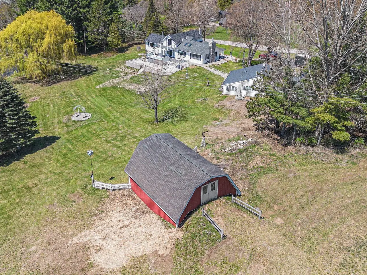 This remarkable home and property offers stunning and peaceful views that can truly be appreciated during a visit. Nestled on 25 beautiful acres of rolling woodlands, white pine groves, and open areas perfect for farming and gardening, this property also includes a shooting range and hunting blinds. The residence features nearly 2,300 square feet of remodeled living space, including an updated kitchen with elegant cabinets and quartz countertops. The bathrooms have been renovated, and hardwood floors enhance the interior. The living room has a newer gas fireplace, and the family room includes a high-efficiency wood-burning stove. A lovely 12 x 40-foot Trex deck overlooks the grounds, complemented by a second-floor balcony and charming brick-paver retaining walls, as well as a swim/spa pool. The patio is a generous size, designed with a durable concrete slab, and there is a whole-house generator. The master bedroom includes an en-suite with a walk-in bathtub. A spacious garage of about 1,000 square feet has electricity and natural gas heating. The pole barn features a concrete floor and has an upper-level loft with a private entry, providing versatile usage options. The grounds are diverse, featuring raspberry bushes, wild asparagus, mushrooms, and many apple trees. With ample land available, this property has great potential for future development or could serve as a family compound or campsite. It includes a serene pond and is serviced by a second well. The best way to fully appreciate all the impressive features is to visit in person, so please take the time to explore this exceptional property. Additionally, just 2.5 miles away is Grace Road Beach on Lake Michigan, enhancing the appeal of this location.