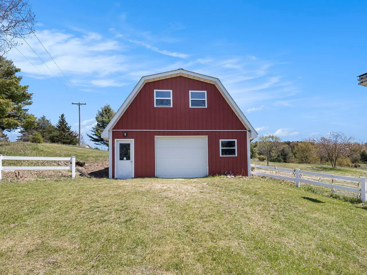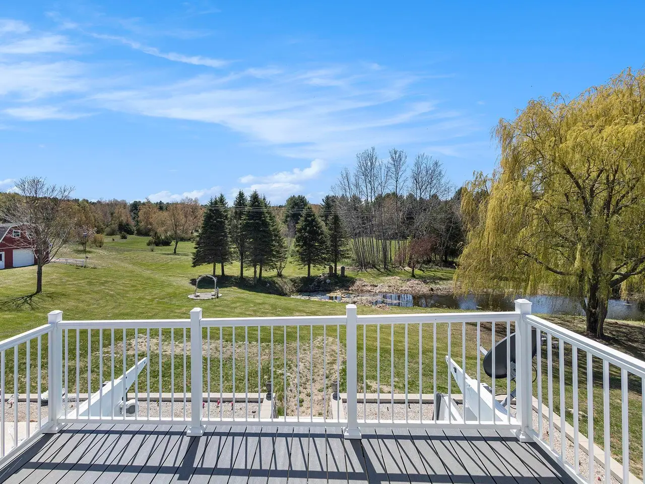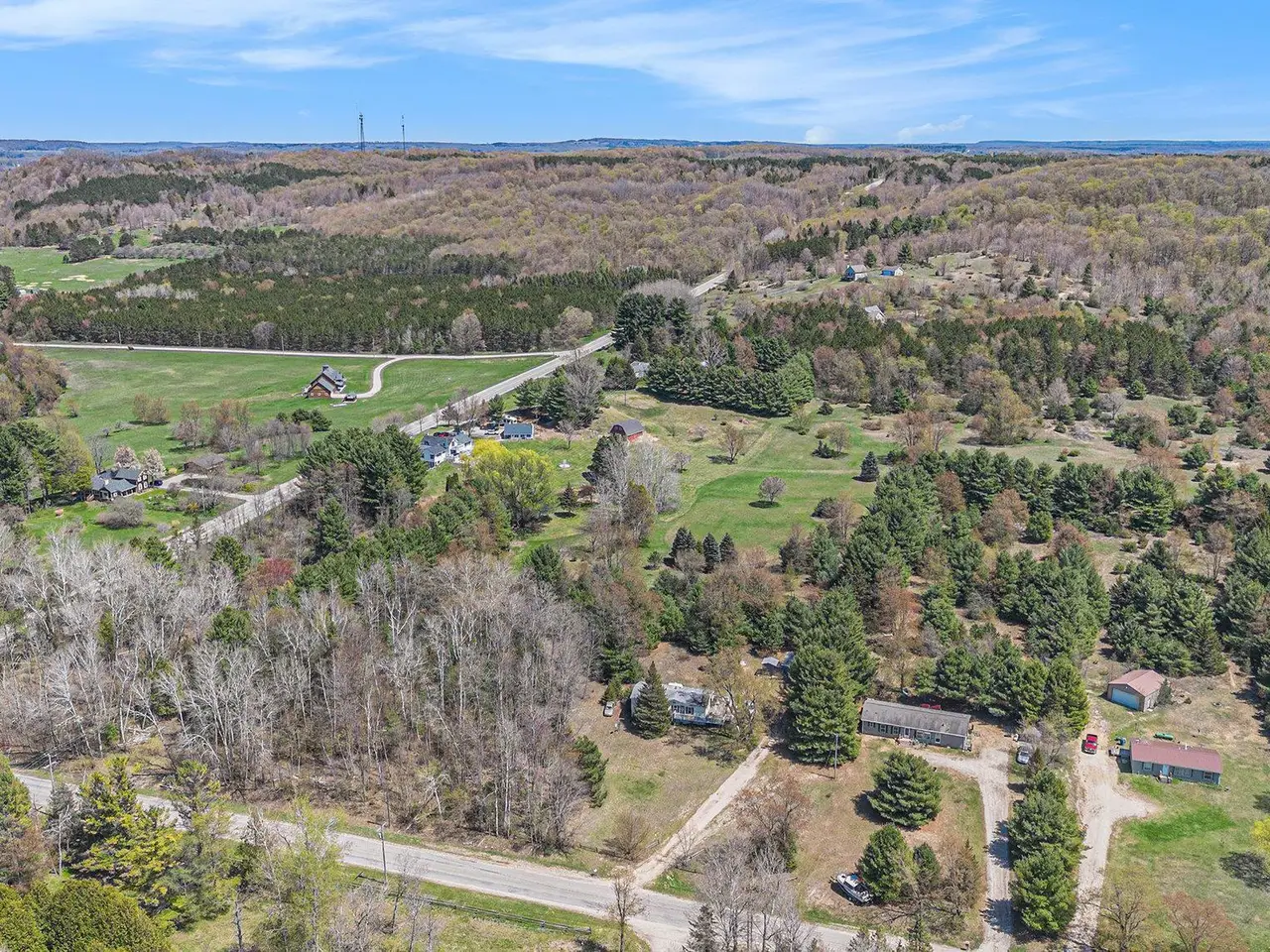 This remarkable home and property offers stunning and peaceful views that can truly be appreciated during a visit. Nestled on 25 beautiful acres of rolling woodlands, white pine groves, and open areas perfect for farming and gardening, this property also includes a shooting range and hunting blinds. The residence features nearly 2,300 square feet of remodeled living space, including an updated kitchen with elegant cabinets and quartz countertops. The bathrooms have been renovated, and hardwood floors enhance the interior. The living room has a newer gas fireplace, and the family room includes a high-efficiency wood-burning stove. A lovely 12 x 40-foot Trex deck overlooks the grounds, complemented by a second-floor balcony and charming brick-paver retaining walls, as well as a swim/spa pool. The patio is a generous size, designed with a durable concrete slab, and there is a whole-house generator. The master bedroom includes an en-suite with a walk-in bathtub. A spacious garage of about 1,000 square feet has electricity and natural gas heating. The pole barn features a concrete floor and has an upper-level loft with a private entry, providing versatile usage options. The grounds are diverse, featuring raspberry bushes, wild asparagus, mushrooms, and many apple trees. With ample land available, this property has great potential for future development or could serve as a family compound or campsite. It includes a serene pond and is serviced by a second well. The best way to fully appreciate all the impressive features is to visit in person, so please take the time to explore this exceptional property. Additionally, just 2.5 miles away is Grace Road Beach on Lake Michigan, enhancing the appeal of this location.