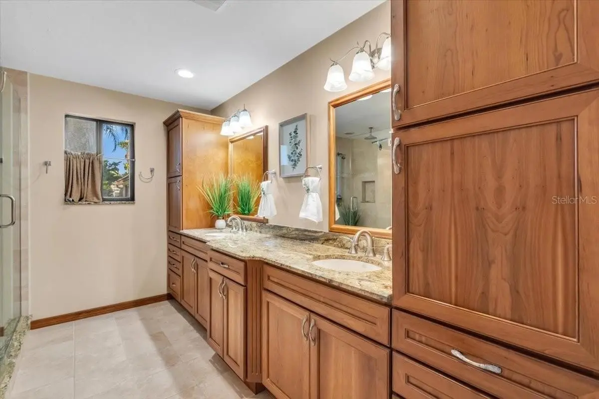 Set on a quiet half-acre in Riverview Landings, this beautifully maintained residence offers a rare blend of privacy, natural beauty, and everyday convenience in one of Bradenton’s most loved neighborhoods. Here, you can walk to De Soto National Memorial Park for sunrise riverfront trails, launch kayaks at the nearby Robinson's Preserve, and reach Anna Maria Island, Blenker’s Marina, and award-winning beaches in just minutes. The home welcomes you with mature oaks, a long paver driveway, and a side-entry three-car garage that enhances the property’s estate-like feel. Inside, light fills the living spaces through dramatic windows and two wood-burning fireplaces add warmth and character that newer homes cannot replicate. Every room feels connected to the outdoors, with peaceful garden views and an easy sense of comfort throughout. A highlight of the property is the expansive screened outdoor living area, designed for year-round enjoyment. Stone pavers, covered seating areas, an outdoor sink and cabinetry, and a heated pool surrounded by lush landscaping create a private retreat for relaxing, dining, and gathering with friends and family. Thoughtful outdoor lighting brings the landscape and pool area to life at night. The property includes its own dedicated irrigation well, supplying water to the entire yard and landscaping—an efficient feature that keeps the grounds beautifully green while significantly reducing utility costs. Major structural and practical upgrades add confidence and long-term value: hurricane-impact windows and doors, an impact-rated garage door, four AC units, a Generac propane generator, beautifully maintained hardwood flooring, and extensive storage throughout. The interior has been cared for with pride, offering timeless materials, spacious living areas, and architectural features rarely available in today’s market. This property delivers the lifestyle buyers seek in Northwest Bradenton—space, privacy, nature, and quick access to the water and the Gulf—within a neighborhood known for its quiet streets, oversized lots, and custom homes. A special opportunity in a location that offers so much of what makes this area beloved. Call us now for more information or to arrange a private tour.