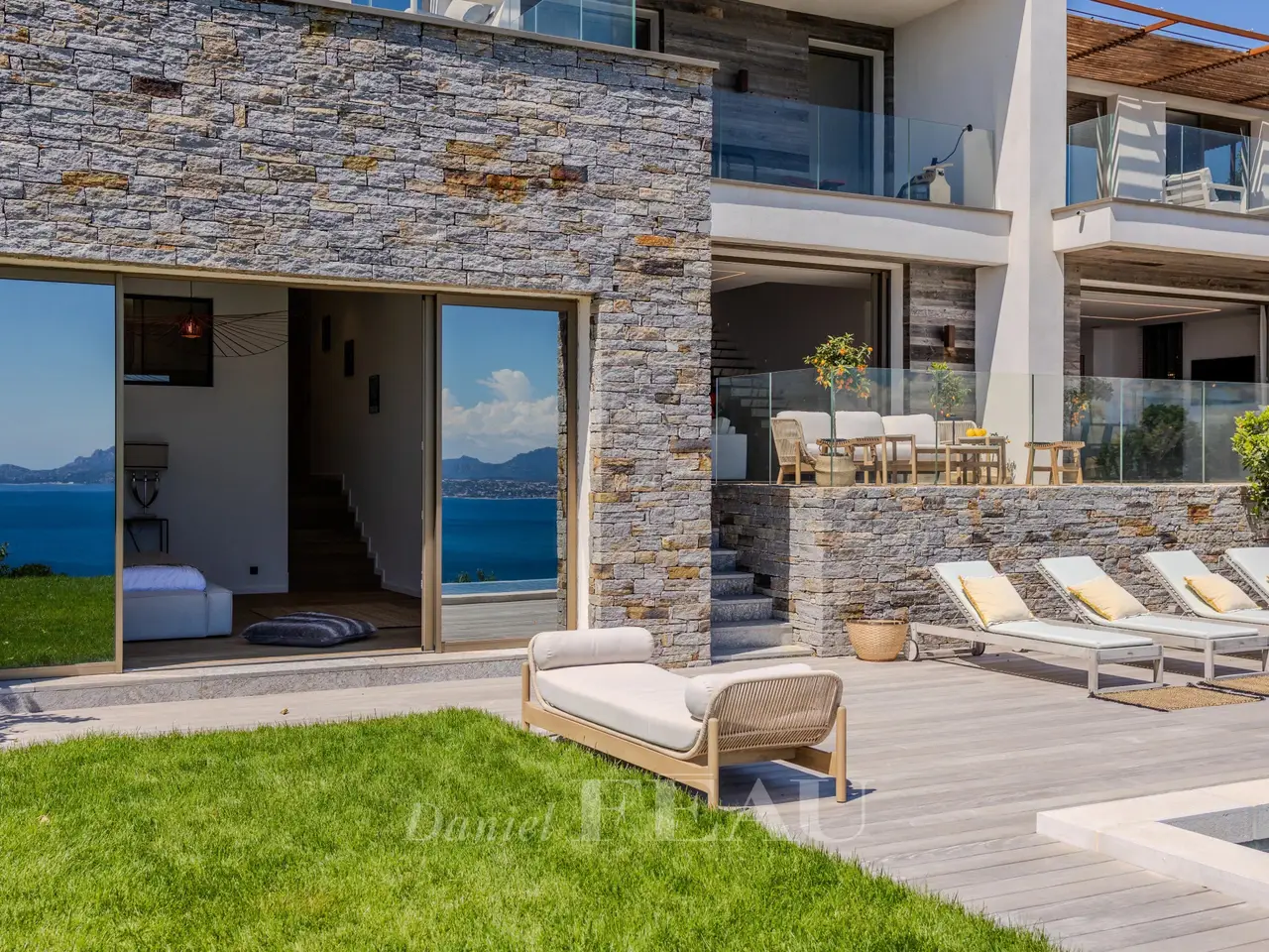 This peaceful 350 sqm architect-designed property dating from 2023 is located 10 minutes from the shops. Enjoying an exceptional sea view, it includes a double living/reception room with a fireplace, an open-plan kitchen and spacious dining room, a pantry, a utility room, and a master suite with a shower room and dressing room. Upstairs are two bedrooms with shower rooms, dressing rooms and a terrace, and a master suite with a bathroom and dressing room opening onto a private terrace. With an overflow swimming pool, a garage and a carport.