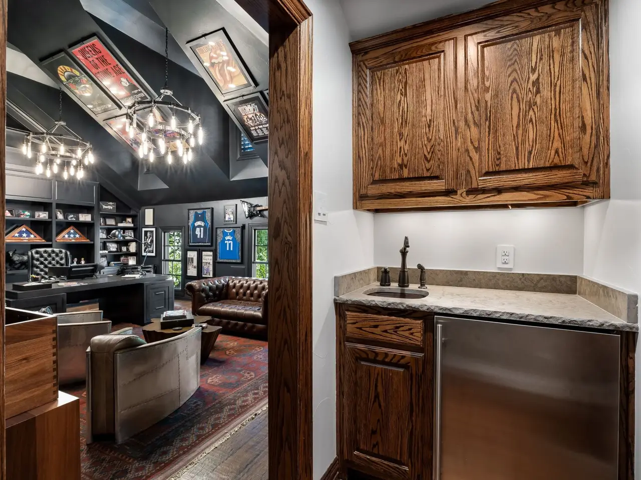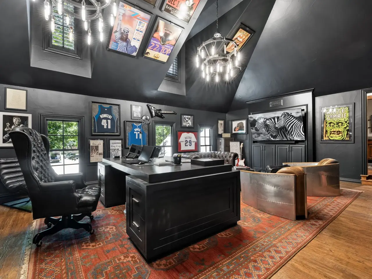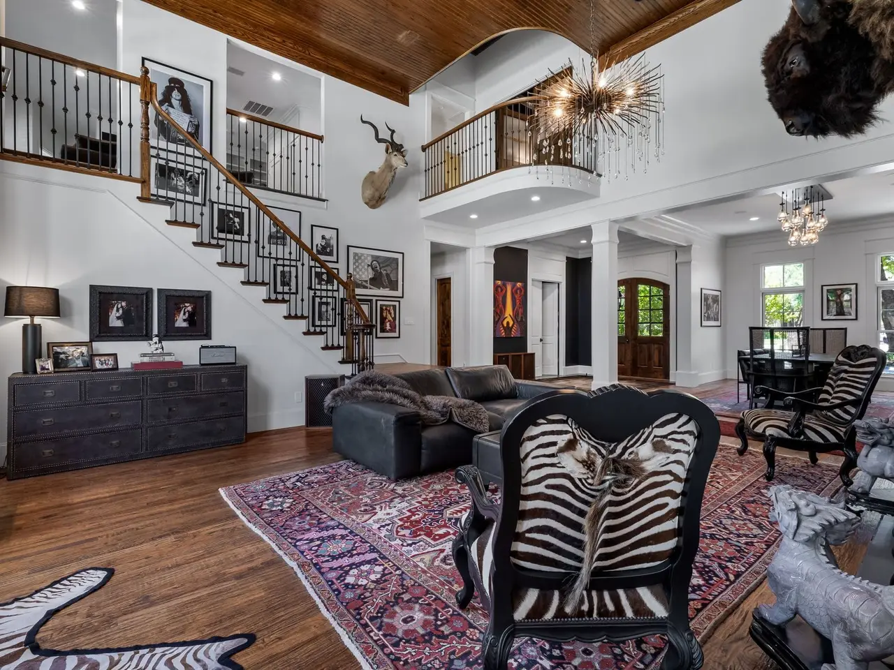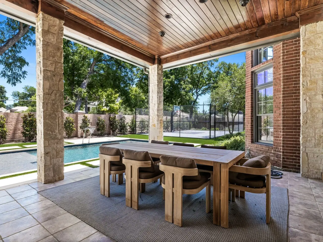 This home has been updated from head to toe. New hardwood floors throughout, paint, countertops, designer light fixtures. A brand new kitchen including Taj Mahal quartzite, custom copper hood, new appliances, and new cabinets. Primary bath completely updated into spa like bath including steam shower and infrared sauna. 1 study or lounge downstairs and second study or library upstairs. Even with all the amazing updates inside, the backyard is the show stopper! New pool, firepit, fireplace, spool, outdoor grill, in-ground trampoline, AND sport court. There is no other property like this!