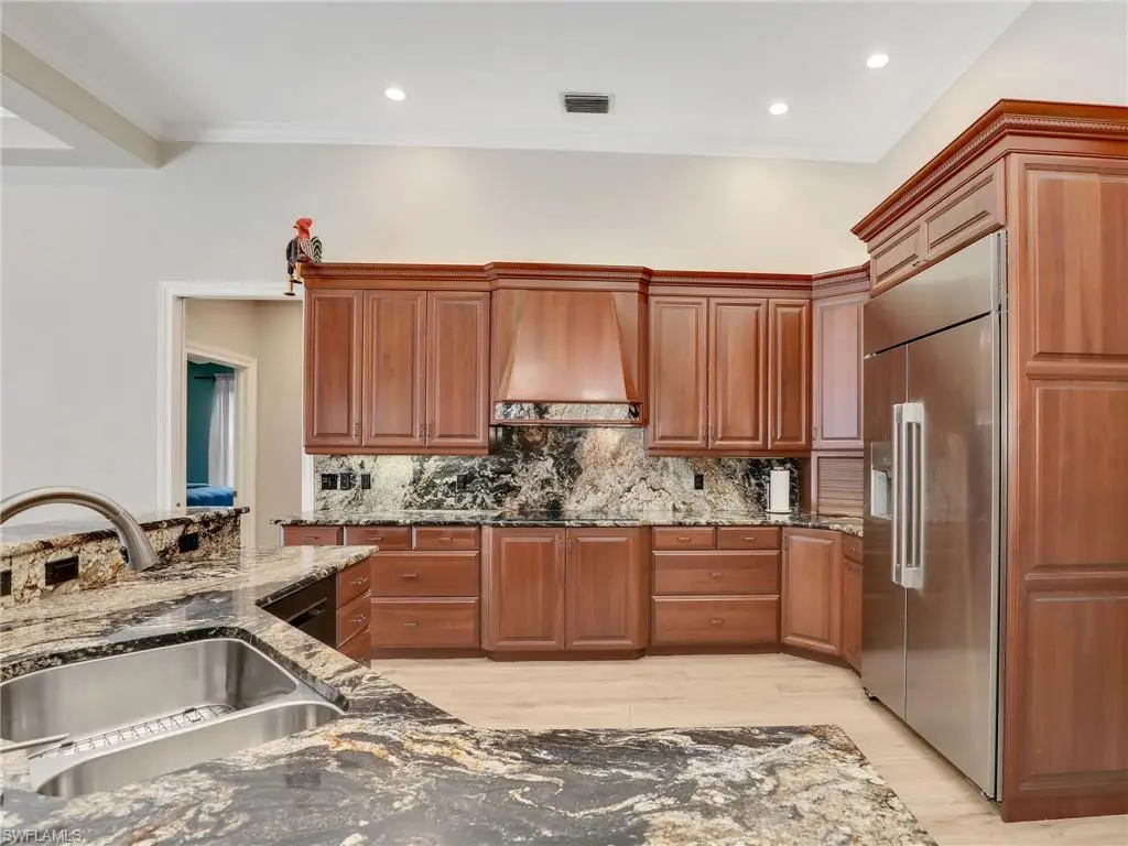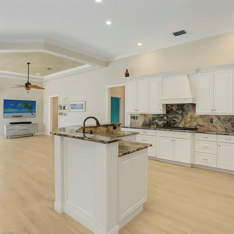 Located in the highly desirable Logan Woods community with no HOA fees, this solidly built DIVCO home sits on a rare 2.57-acre square lot with lush landscaping, a fenced side yard, and total privacy. Designed for entertaining and ideal for those with hobbies or home businesses, the property features a recently renovated southern-exposure pool and spa area with full sun all day, an upgraded picture screen enclosure, and a convenient pool bath. Zero-corner sliding glass doors seamlessly connect the indoor living spaces to the outdoor pool area, creating a true open-concept flow for Florida living. Beyond the pool, step out to an expansive open-air deck, ideal for large gatherings, alfresco dining, or enjoying peaceful evenings under the stars. Inside the 2,953 square foot main home, you’ll find a thoughtfully designed four bedroom, three bath split floor plan, enhanced with new tile flooring, plantation shutters, and custom cabinetry throughout. The gourmet kitchen is a chef’s dream, featuring an induction cooktop, double convection wall oven, and abundant prep space - perfect for both everyday living and entertaining. Additional highlights include a whole-house water filtration system. A unique bonus is the 576 sq ft air-conditioned outbuilding, currently used as an office and workshop. Complete with a full bathroom and room for a refrigerator, this flexible space offers income-producing potential as an efficiency apartment, guest suite, or creative studio. Additional features include fruit trees, a circular driveway with dual entrances from Logan Blvd and Mahogany Ridge Dr, and ample space for parking a boat, RV, or recreational vehicles. Located just minutes from world-class Gulf beaches, shopping, dining, and top-rated schools, this property offers the perfect blend of space, privacy, and convenience.