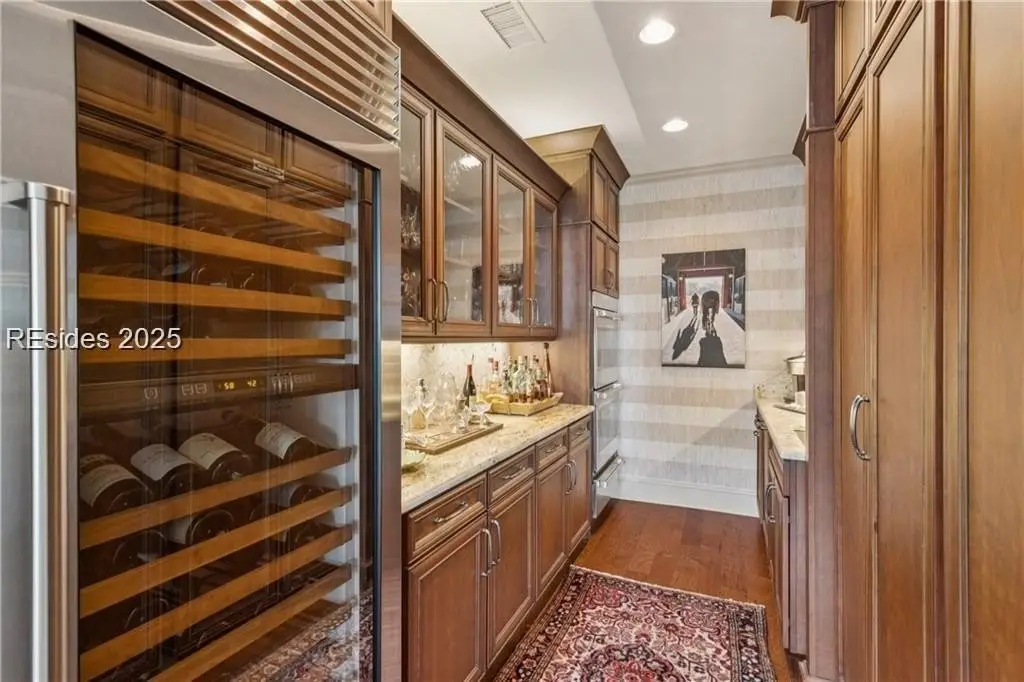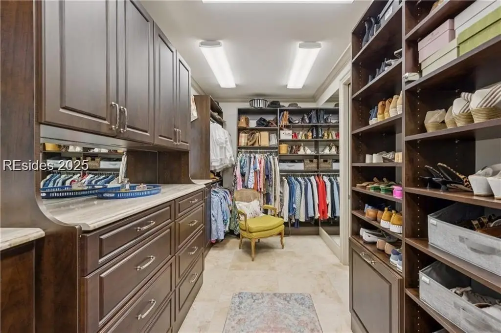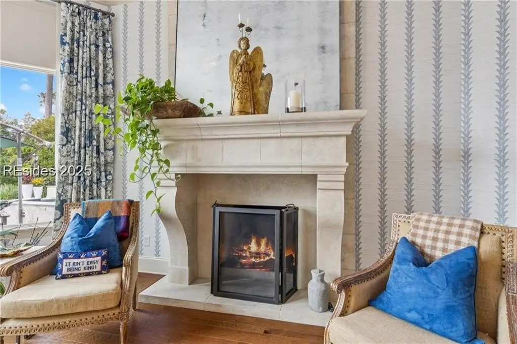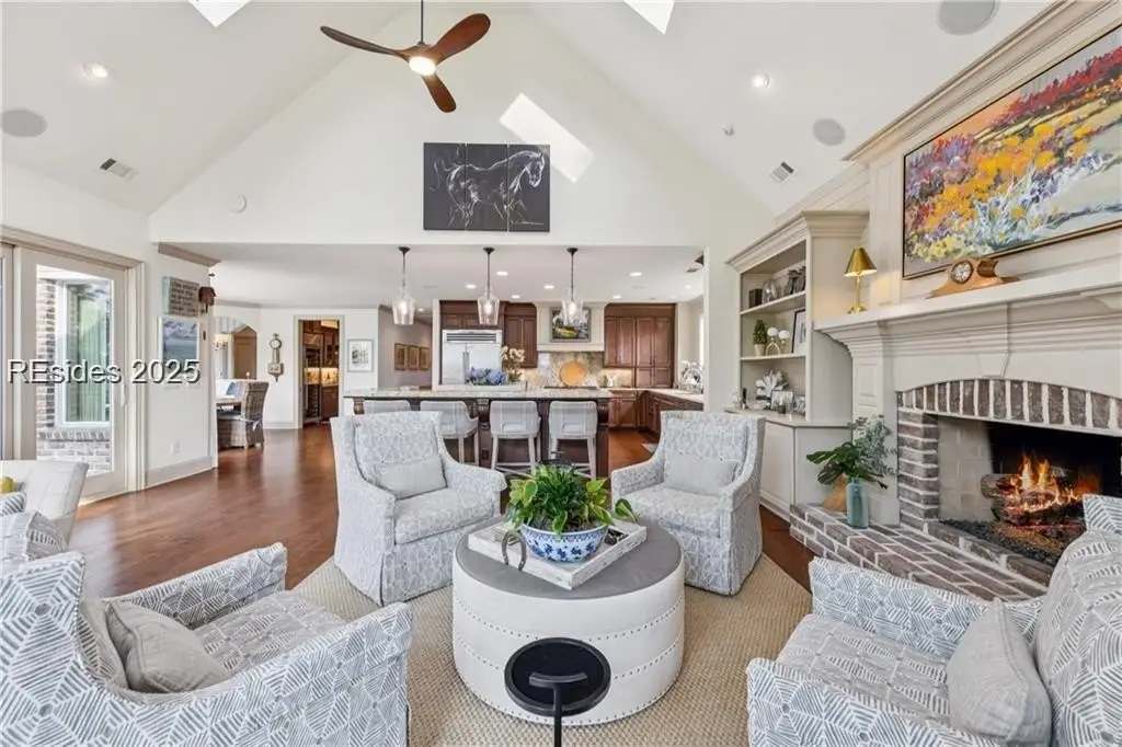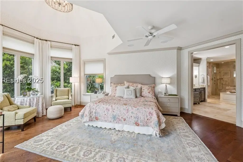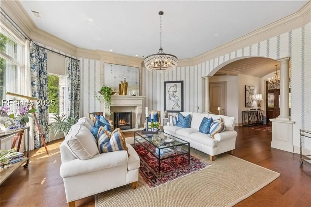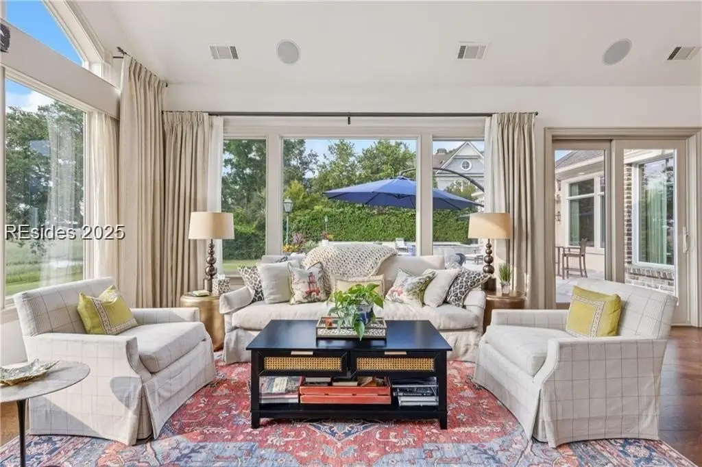 Spectacular marsh-to-river views framed by live oaks in this beautifully updated custom home. Enter through a gated garden into soaring 12’ ceilings, abundant light, and elegant living spaces. The chef's kitchen boasts a Wolf range, 4 ovens, Sub-Zero fridge, wine fridge, 10' island, 2 dishwashers, and more. First-floor primary suite has dual walk-in closets and a private laundry. Bonus room, custom closets, second laundry, new carpet (2023), HVAC (2020), pool heat/cool pump (2024), UV window film, custom built-ins, fire pit, and more. It's an ideal layout for entertaining and hosting family.