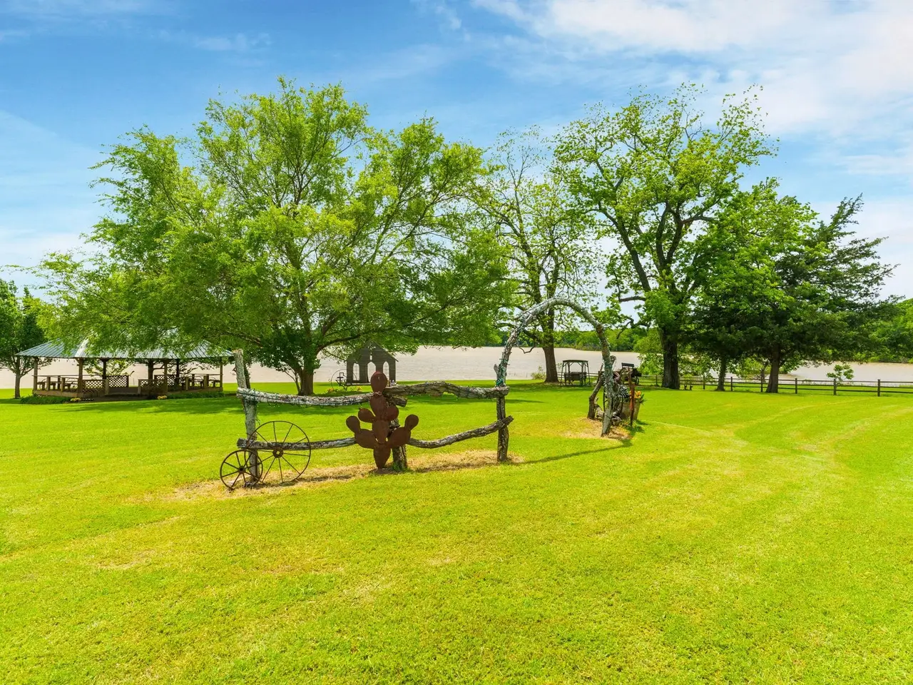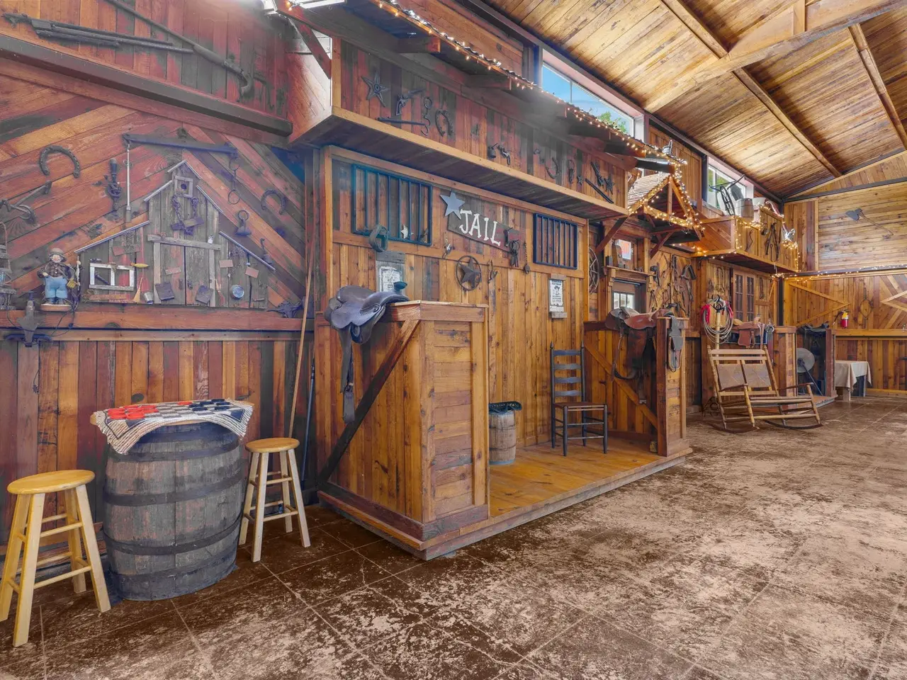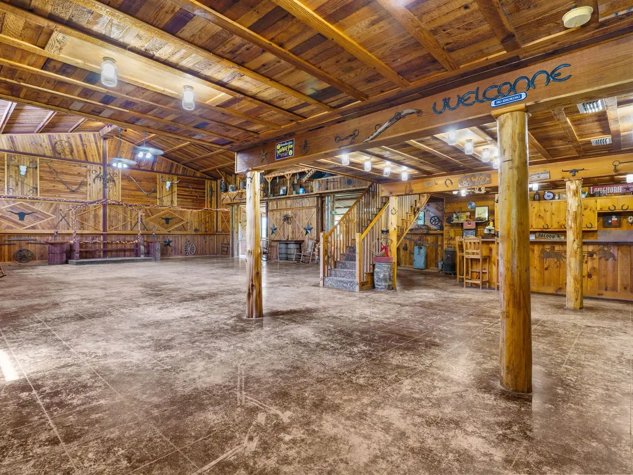 The Longhorn Hill Ranch Venue is a true getaway and a perfect place to raise a family, enjoy the ranch life, or escape the city. This barndominium features vaulted beamed ceilings, 2 huge doors can open for an outdoor experience. Trimmed w cedar wood for unique designs & themes. The 2 front facades that says Jail on one and the other is a porch look will move over on rollers to provide an outdoor opening for a party to flow indoor and outdoors. The structure provides a rustic western atmosphere. The upstairs has living accommodations and a balcony overlooking the Ball Room. 2 bedrooms, Full kitchen,3 baths, ( 1 full bath up and 2 down) storage room. Less than 1 hour from downtown Dallas and DFW airport, this sprawling 63-acre Ranch offers large trees, a 32-acre lake ( owned by sellers and In soil and water conservation), a gazebo, lush pastures, This property is perfect for equine lovers. The Structure and gazebo are located near the lake to make a beautiful setting for weddings, cookouts, and pictures. Ideal location to live and work in a setting for family reunions, retreats, receptions, holiday parties, special birthdays, class reunions, bridal showers, church events, company picnics, & Christmas or New Year parties. Centrally located to many towns. Part of the property has ag exemption due to growing hay. No Mobile or manufactured homes will be added in deed restrictions. lake in a water and soil conservation area but per owners and survey is owned by the sellers. Buyer to verify if there are rules for the lake with Collin County SWCD. Additional 4 bedroom,3 bath, 2 living. Log House with shop on 3.5ish acres may be purchased with a year leaseback.