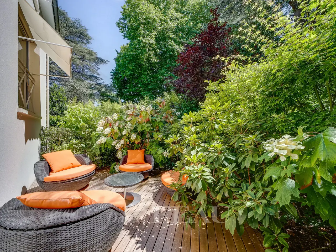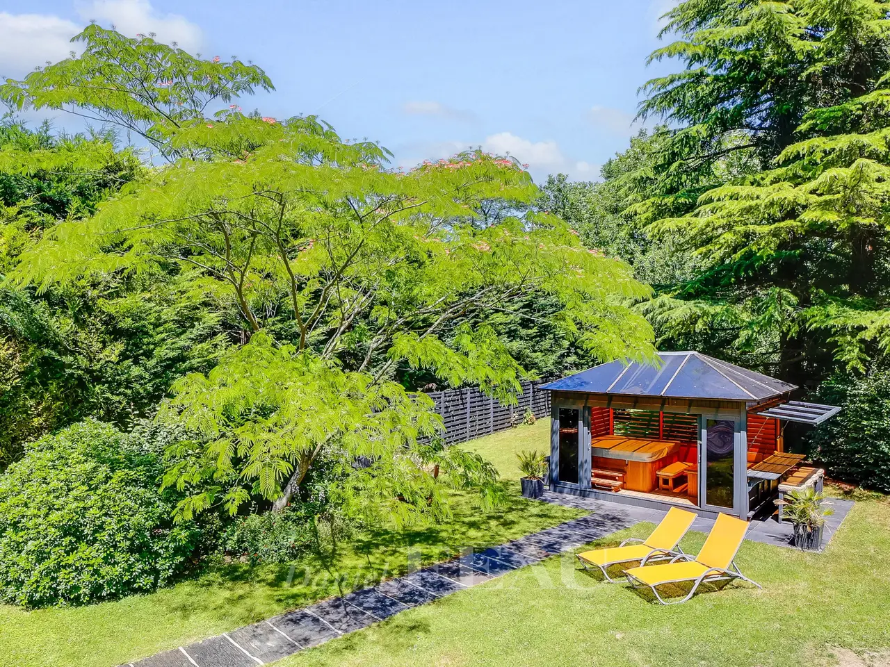 VILLENNES-SUR-SEINE - Discover a property on the Île de Villennes, offering a rare privilege: living on the banks of the Seine. This 208 m² (342 m² usable) house, built in 2001, offers high-quality features. The ground floor comprises an entrance hall with a cloakroom and toilet, a living room with an insert fireplace, all opening onto a level terrace and providing access to the garden. A spacious 35 m² eat-in kitchen with a central island and dining area completes this level. Upstairs, discover a 35 m² master suite, including an open bathroom and a dressing room. Two other bedrooms with wardrobes share a shower room and a separate toilet. The basement is fully furnished: a gym, a laundry room, a shower room and toilet, an air-conditioned wine cellar, and a large 35 m² garage. The exterior is a haven of peace with a landscaped garden of 1800 m², a large sunny terrace, a jacuzzi, and, as a bonus, a private pontoon offering privileged access to the Seine. Close to the A13/A14 motorway, a stone's throw from the city center, schools, shops, and the SNCF train station.