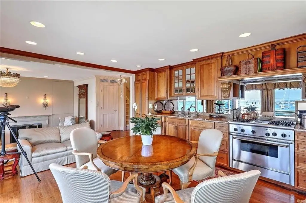 This remarkable townhouse-style condo is part of the coveted Beechbound Condo Association, and available for the first time in 25 years. Offering a front row seat to the most beautiful views of Newport Harbor front. Overlooking a steady parade of boating life and the Newport Bridge - the ever-changing sky, sun and clouds promise a view that always delight. This beautiful property has been renovated to the highest standards with meticulous custom cabinetry in each of the four ensuite bedrooms. The expansive primary suite occupies the upper level and enjoys a large deck that over looks Beautiful Newport Harbor. The finely finished primary bathroom offers teak and holly flooring, and custom teak cabinetry throughout. The lower level has two well-sized bedrooms each with finely finished bathrooms. The lower level also has a second beautiful kitchen, meticulously outfitted, perfect for when housing a group of sailors or extended family. The lower level also has its own terrace for enjoying the outdoors. Beechbound stately grounds are the perfect setting for enjoying life on the waterfront. The Beechbound boat house dock and launch pad add wonderful access to fun on the waterfront, whether its to launch a paddle board and enjoy the harbor or taking the Launch boat over to Bannisters Wharf for Dinner, the Life Style offered with this property is exceptional.