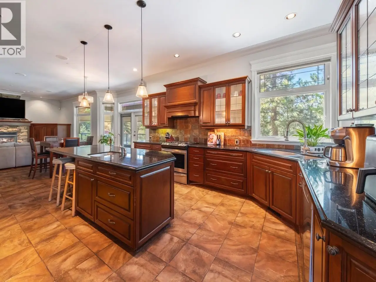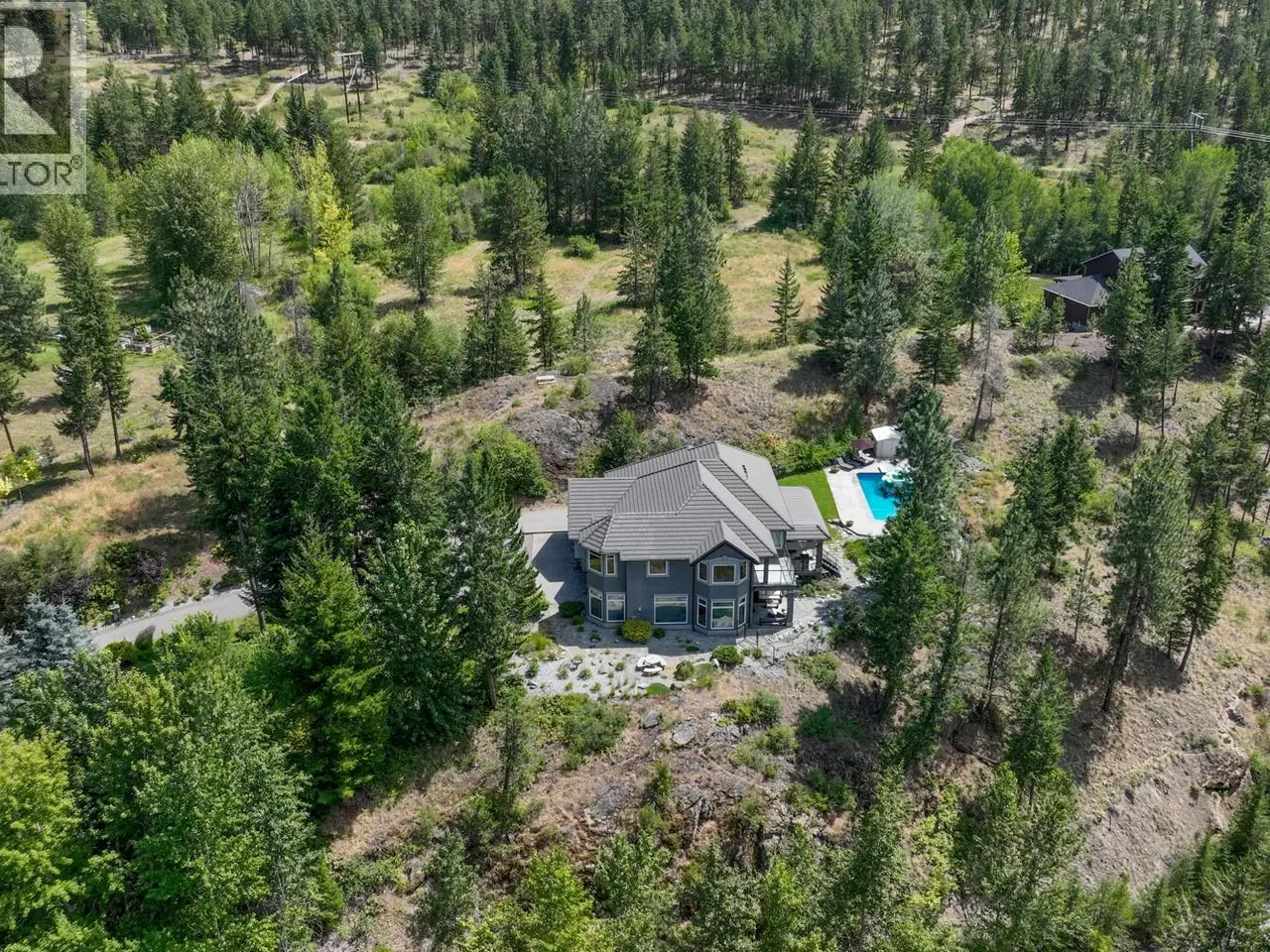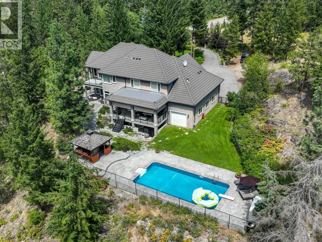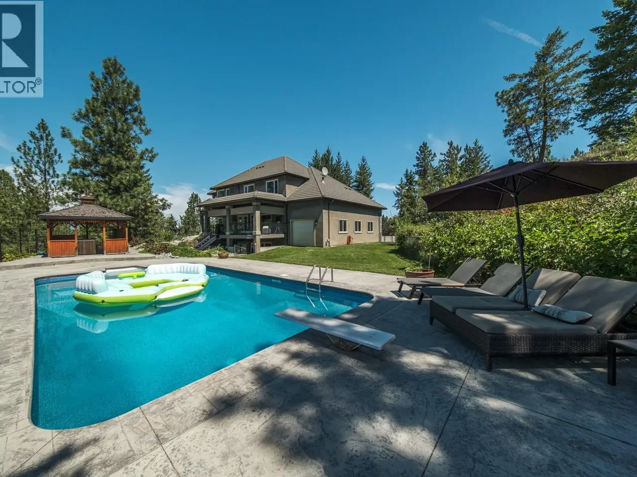 Welcome to this private estate on nearly 5 flat acres in the heart of SE Kelowna. This meticulously crafted 4/5 bed, 4 bath residence offers over 5,100sqft of classic design and updates. A sweeping tree-lined driveway leads to a timeless estate featuring a 1283sqft 3-car garage plus a 40-ft deep tandem bay, perfect for an RV, boat, or workshop. The home blends classic and modern, with a grand curved staircase, formal living and dining rooms, & a chef’s kitchen complete with high-end appliances. Doors open to the expansive backyard oasis with a heated 18x36 saltwater pool, patio space, and a covered gazebo complete with a hot tub—perfect for entertaining or unwinding in total privacy. Upstairs, the lake view primary suite features a walk-in closet, and a serene outlook over the surrounding landscape. Two additional bedrooms provide ample space for family and den or 5th bedroom plus an additional room. The walkout lower level includes a media room, a self-contained suite with separate laundry & kitchen, which could also be for guests, or poolside entertaining. Even provision in plans for elevator. Approx 3 acres are cleared and level—ideal for horses, outbuildings, or hobby farming. Zoning and size of land allows for engaging in agriculture, forestry, animal clinics, kennels and operating stables. Easy access to Crown Land and the nearby Crawford Trails/Myra-Bellevue Provincial Park offers excellent opportunities for hiking, biking, & horseback riding right from your doorstep (id:7434)