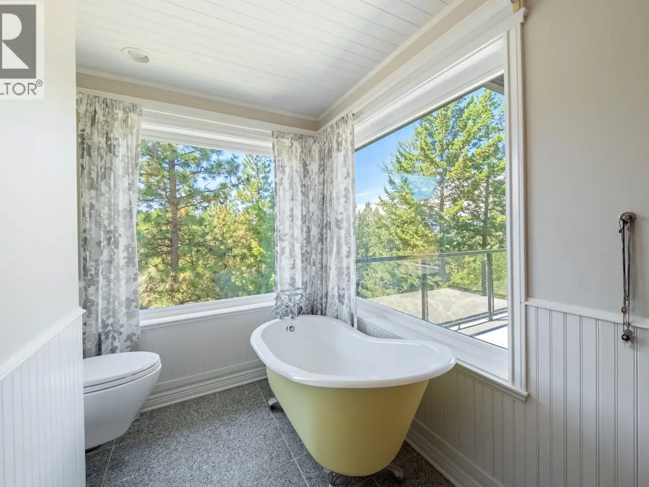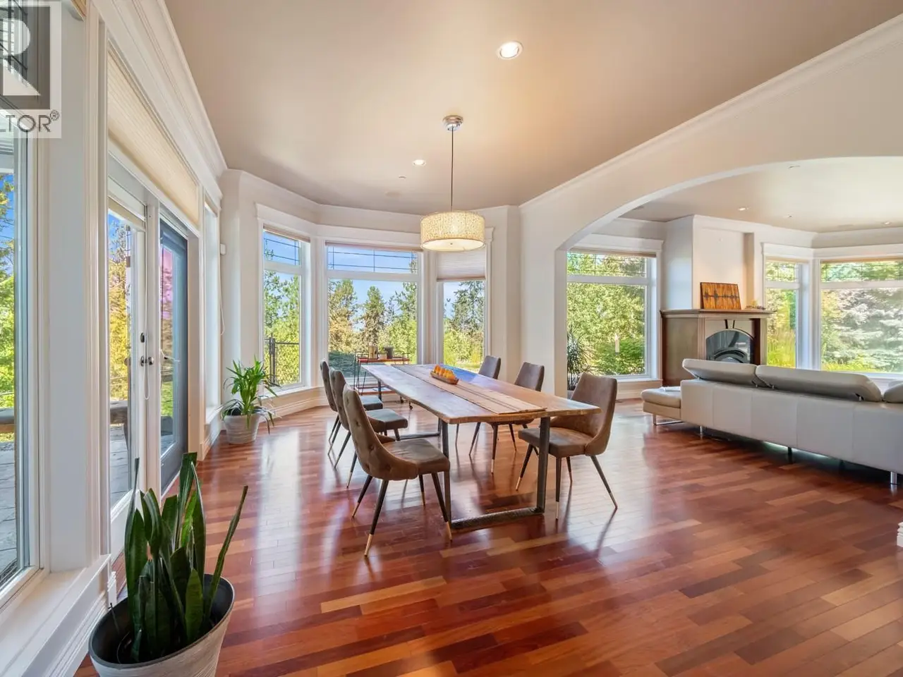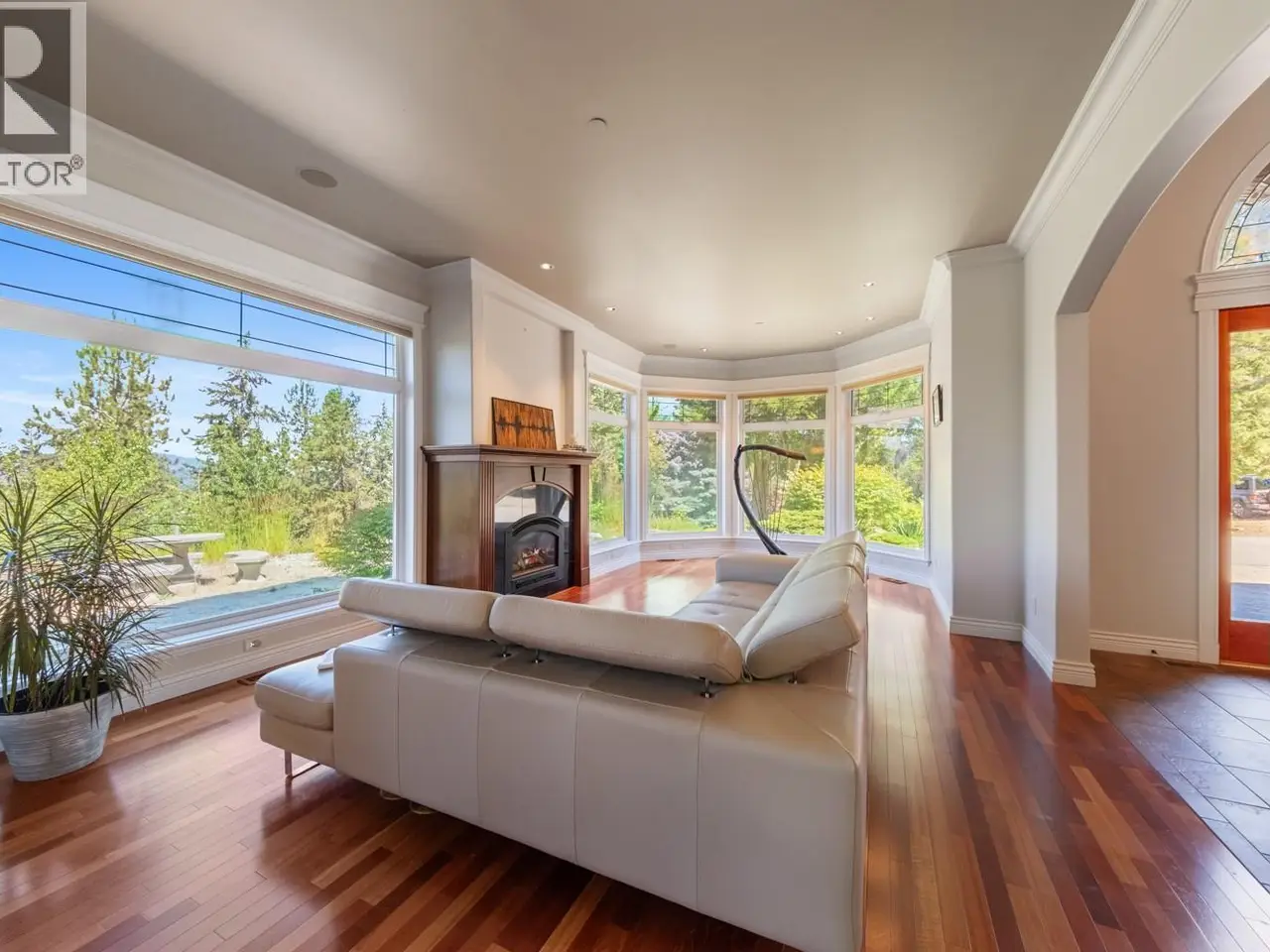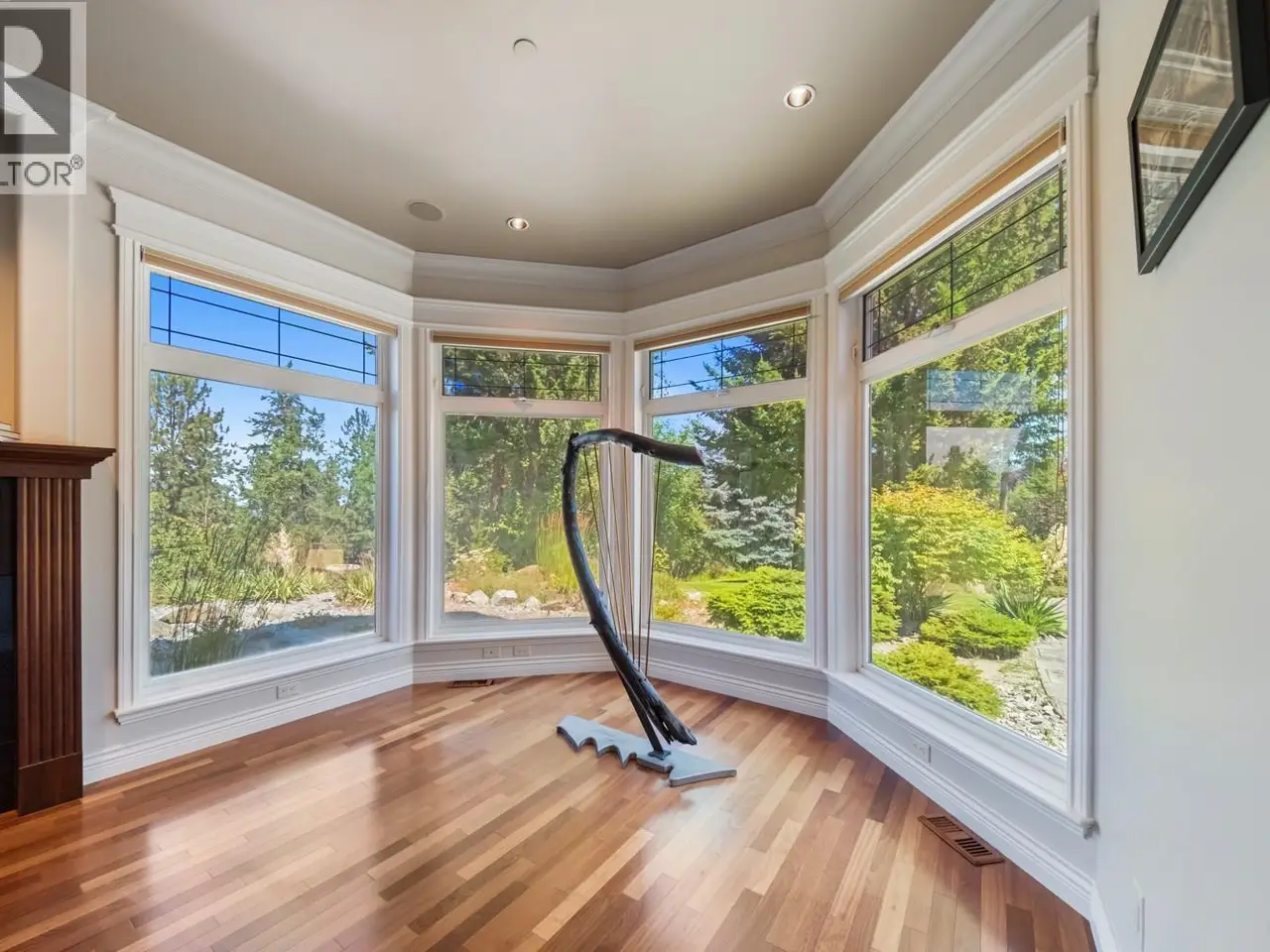 Welcome to this private estate on nearly 5 flat acres in the heart of SE Kelowna. This meticulously crafted 4/5 bed, 4 bath residence offers over 5,100sqft of classic design and updates. A sweeping tree-lined driveway leads to a timeless estate featuring a 1283sqft 3-car garage plus a 40-ft deep tandem bay, perfect for an RV, boat, or workshop. The home blends classic and modern, with a grand curved staircase, formal living and dining rooms, & a chef’s kitchen complete with high-end appliances. Doors open to the expansive backyard oasis with a heated 18x36 saltwater pool, patio space, and a covered gazebo complete with a hot tub—perfect for entertaining or unwinding in total privacy. Upstairs, the lake view primary suite features a walk-in closet, and a serene outlook over the surrounding landscape. Two additional bedrooms provide ample space for family and den or 5th bedroom plus an additional room. The walkout lower level includes a media room, a self-contained suite with separate laundry & kitchen, which could also be for guests, or poolside entertaining. Even provision in plans for elevator. Approx 3 acres are cleared and level—ideal for horses, outbuildings, or hobby farming. Zoning and size of land allows for engaging in agriculture, forestry, animal clinics, kennels and operating stables. Easy access to Crown Land and the nearby Crawford Trails/Myra-Bellevue Provincial Park offers excellent opportunities for hiking, biking, & horseback riding right from your doorstep (id:7434)