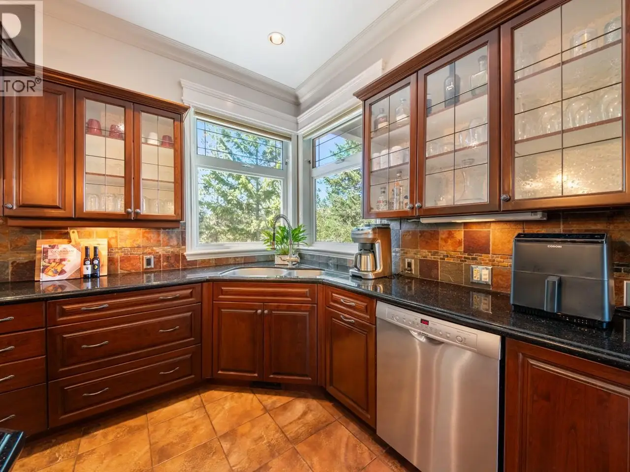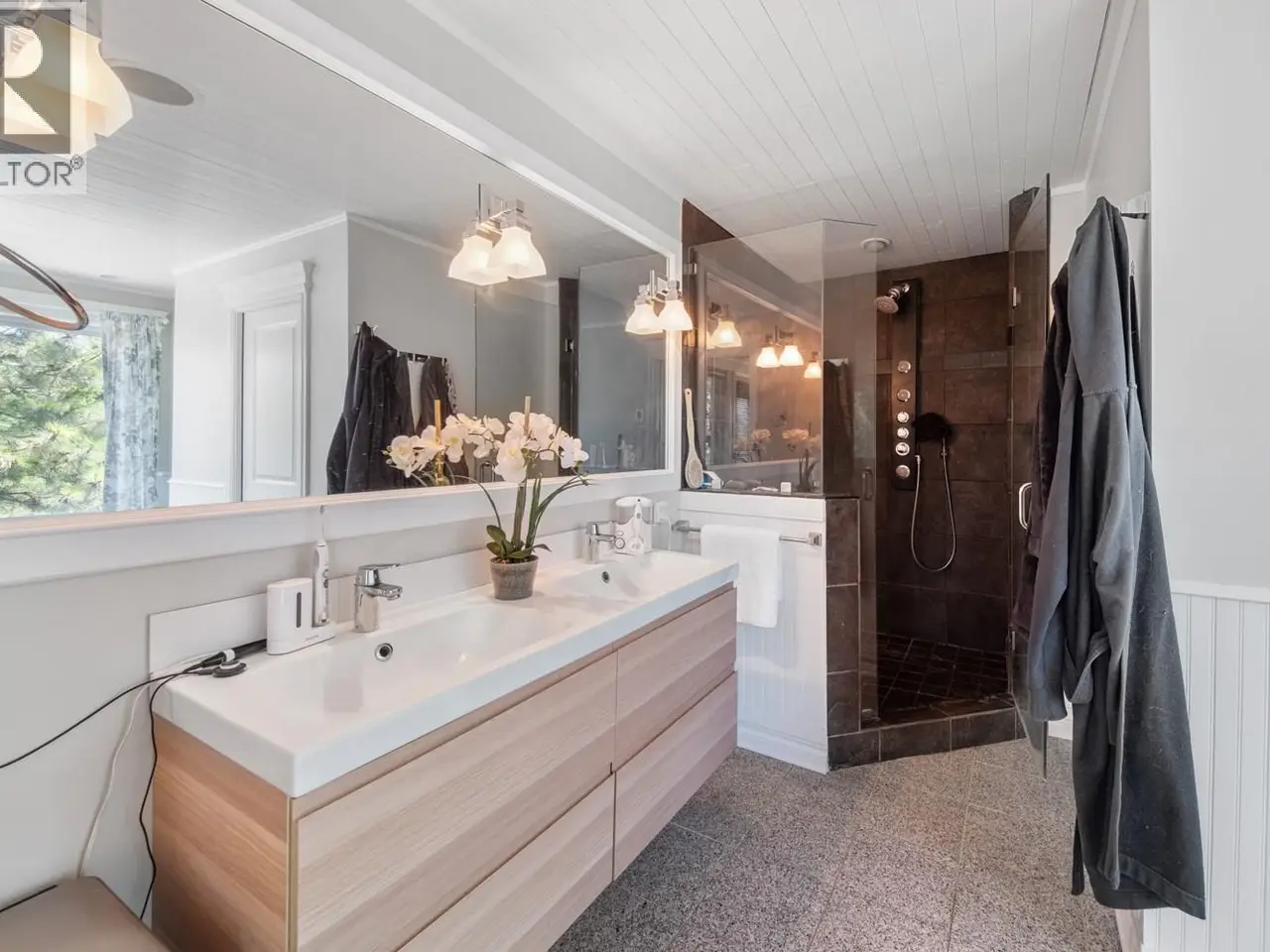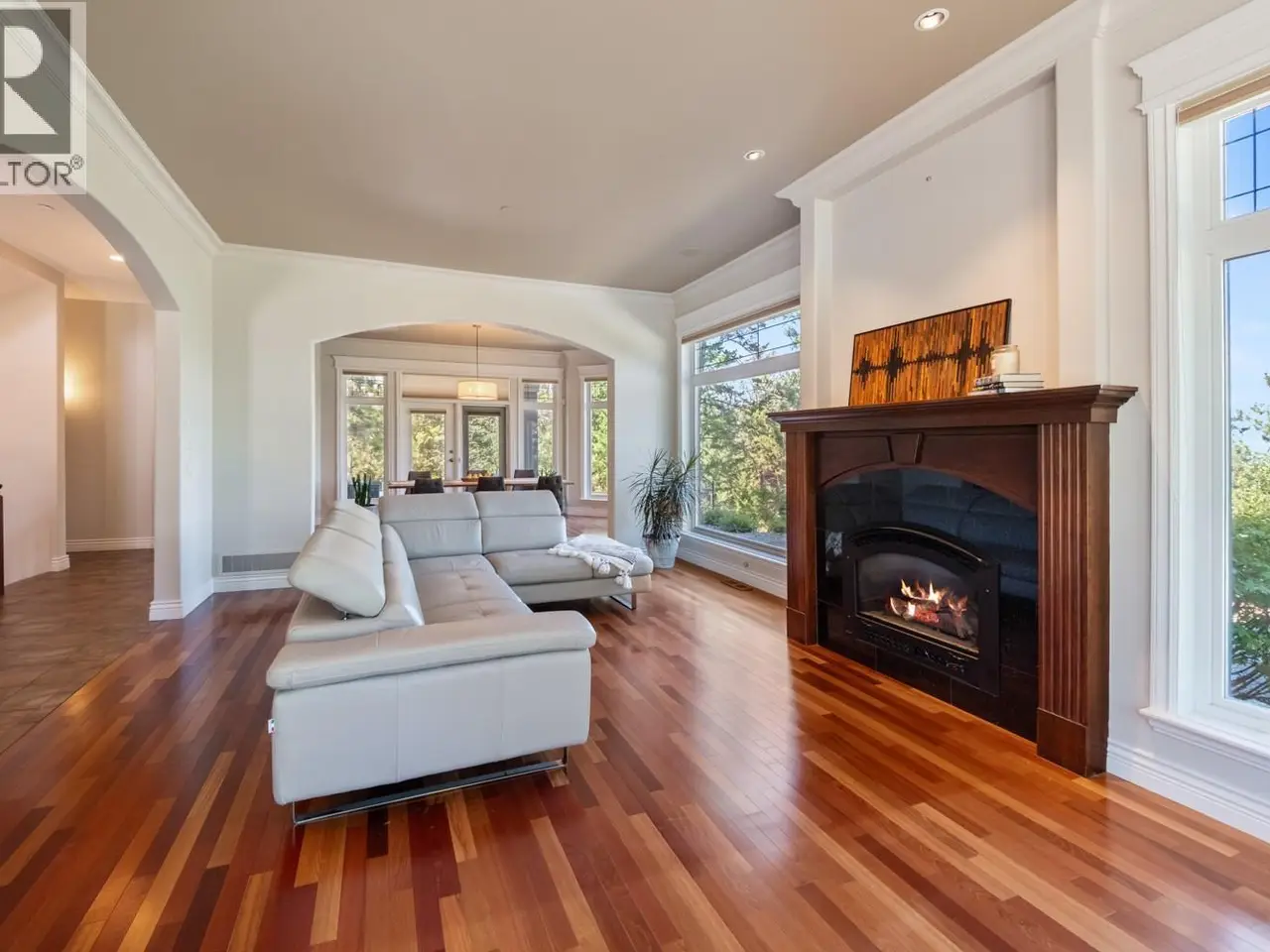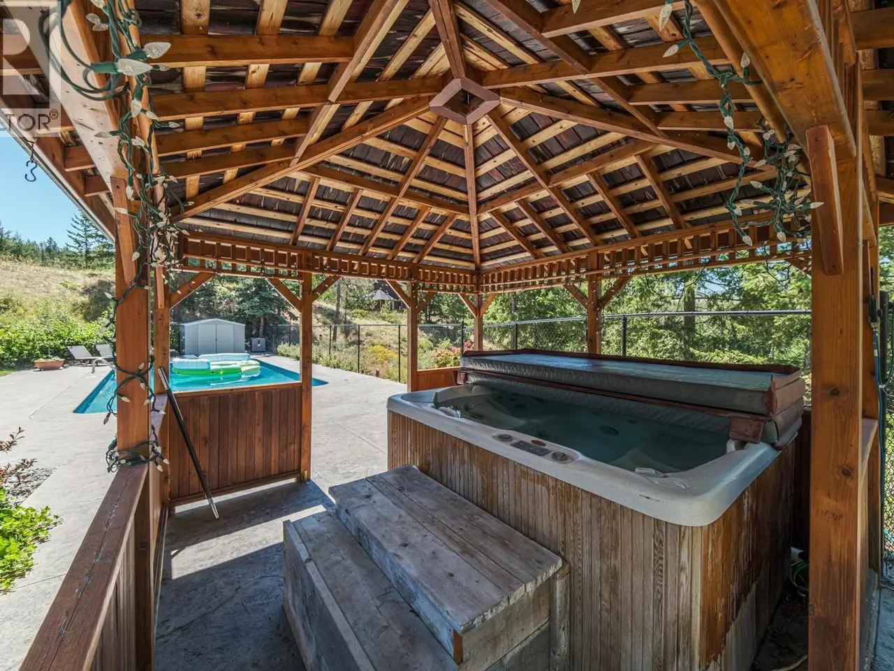 Welcome to this private estate on nearly 5 flat acres in the heart of SE Kelowna. This meticulously crafted 4/5 bed, 4 bath residence offers over 5,100sqft of classic design and updates. A sweeping tree-lined driveway leads to a timeless estate featuring a 1283sqft 3-car garage plus a 40-ft deep tandem bay, perfect for an RV, boat, or workshop. The home blends classic and modern, with a grand curved staircase, formal living and dining rooms, & a chef’s kitchen complete with high-end appliances. Doors open to the expansive backyard oasis with a heated 18x36 saltwater pool, patio space, and a covered gazebo complete with a hot tub—perfect for entertaining or unwinding in total privacy. Upstairs, the lake view primary suite features a walk-in closet, and a serene outlook over the surrounding landscape. Two additional bedrooms provide ample space for family and den or 5th bedroom plus an additional room. The walkout lower level includes a media room, a self-contained suite with separate laundry & kitchen, which could also be for guests, or poolside entertaining. Even provision in plans for elevator. Approx 3 acres are cleared and level—ideal for horses, outbuildings, or hobby farming. Zoning and size of land allows for engaging in agriculture, forestry, animal clinics, kennels and operating stables. Easy access to Crown Land and the nearby Crawford Trails/Myra-Bellevue Provincial Park offers excellent opportunities for hiking, biking, & horseback riding right from your doorstep (id:7434)