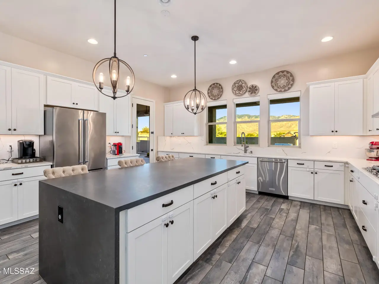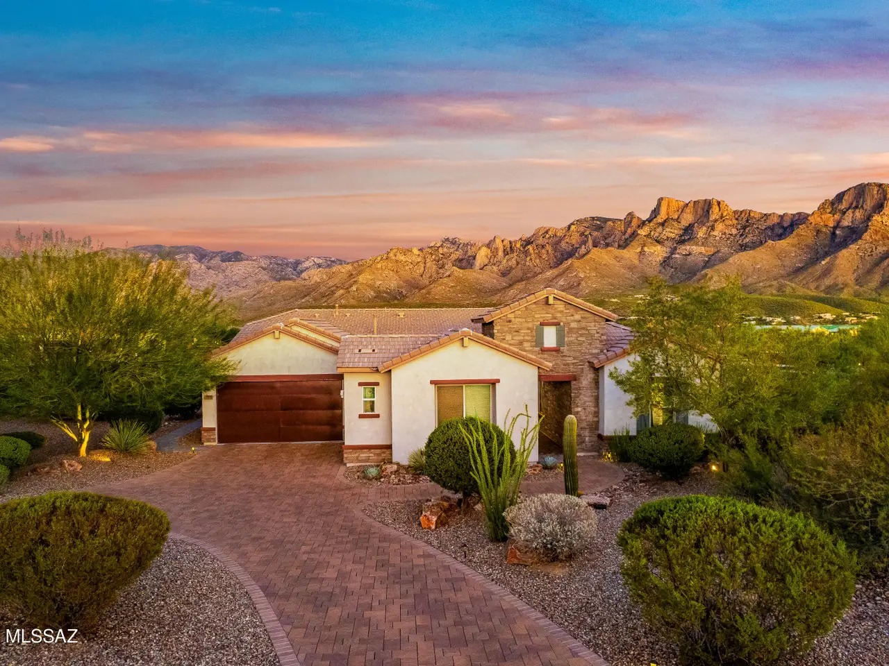 Tucked away in the gated community of Sanctuary at Silverhawke, this exceptional single-level home blends elegant design with sweeping Catalina & Pusch Ridge mountain views. With 3BR/31/2BA+office, den & bonus room & flexible 3,249sf floor plan, this residence sits on an oversized cul-de-sac lot offering privacy & tranquility. Recently renovated with about $100,000 in premium upgrades, every inch reflects elevated craftsmanship and thoughtful design. Kitchen has been elevated with a new sink and faucet, walk-in pantry and addition of a half bath, seamlessly blending convenience with design. In the laundry room, updates like a new backsplash, pocket door & modern countertop give the space a fresh, functional feel. Great room & office were also transformed
