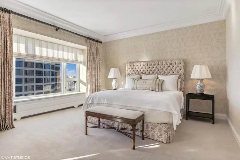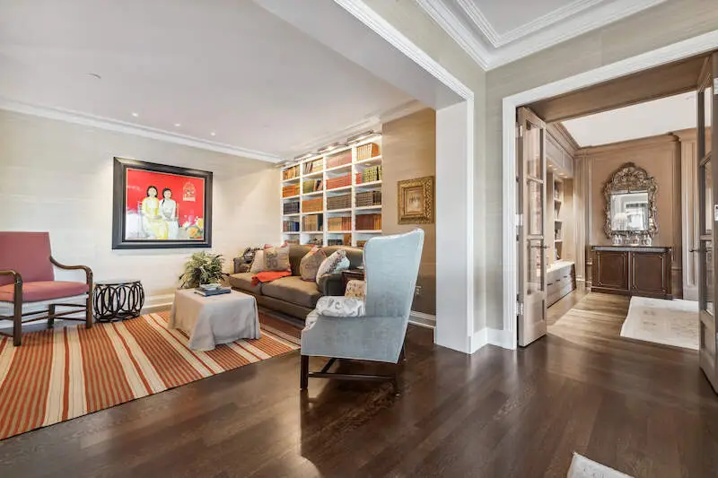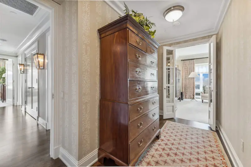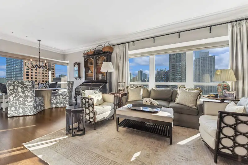 This extraordinary, elegant residence at Park Tower stands as a testament to sophistication and grandeur. Custom designed by Robert Klingel, elegance surrounds you in this expansive 5,250 square foot, 4 bedroom plus paneled library / office. This home has been meticulously crafted using only the finest materials and design. A grand foyer welcomes you into the home, setting the tone for the grandeur that lies beyond. A spectacular 30 x 20' living room is anchored by a fireplace and oversized windows that artfully frame the east-facing views of the lake and city. Two pairs of French doors with beveled glass leads you to the rich wood-paneled office, showcasing the craftsmanship that went into creating this sanctuary. The custom cabinets seamlessly integrate into the paneling, providing both functionality and aesthetic appeal. Each cabinet is a work of art, featuring handcrafted details and ornate handles that add a touch of luxury to the room. These cabinets are not only storage solutions but also contribute to the overall design, adding depth and dimension to the space. As you explore the office, you'll discover hidden gems - a discreetly concealed television and hidden storage. A graceful transition to the formal dining room dressed in embroidered silk wallcoverings by Holly Hunt that creates a backdrop of sophistication that sets the stage for memorable gatherings. The piece de resistance of this dining sanctuary is undoubtedly the crystal chandelier that hangs majestically from above, casting a soft, ambient glow that dances off the wallpaper, creating an atmosphere of intimacy and grace. The dining room flows into the eat-in kitchen offering south and east-facing views. Anchored by an oversized center island, the kitchen features quartzite countertops that complement the custom cabinetry with polished nickel detailing and a center chandelier. The extensive suite of appliances by Wolf and Sub Zero and a discrete butler's pantry that offers additional ovens, wine storage and prep space. The oversized balcony is just off the kitchen providing the perfect amount of space to relax and enjoy the city and lake views. An extension of the kitchen is a cozy breakfast nook that is nestled in the SE corner and flows seamlessly into the comforting embrace of the family room that exudes an atmosphere of casual elegance. The bedroom wing offers 4 bedrooms including a primary suite that is a study in grandeur. Featuring a 29x14 bedroom wrapped in windows to the west, an incredible organized closet, and a spacious ensuite bath with radiant heated floors. Elegantly appointed in marble with polished nickel fixtures throughout, the primary bathroom features two separate custom carved vanities, Rohl plumbing fixtures and a luxurious shower. Three additional bedrooms, South facing bedroom two is wrapped in elegant wallcoverings and is ensuite, while bedrooms three and four enjoy western views and sunsets. Completing the residence are a beautifully appointed powder room, a discreet utility room with side-by-side washer and vented dryer, and a separate service entrance for the ultimate in privacy. No detail has been overlooked, from the custom interior lighting, the luxurious drapery fabrics, the textured wall coverings to the motorized shades throughout and a Control 4 system that automates the home. This five-star dwelling surpasses all expectations. The NoMi Club, offering a state-of-the-art fitness center and an indoor pool, coupled with premium hotel services, elevates the resident experience to unprecedented levels. Two garage spaces and a capacious storage unit are included. Seize the ultimate lifestyle opportunity in this prime location, where every element of luxury living has been meticulously curated. This residence at Park Tower is more than a home; it's a symphony of indulgence in the heart of the city. 2023 Taxes: $68,350.03 (a $13K decrease from 2022).