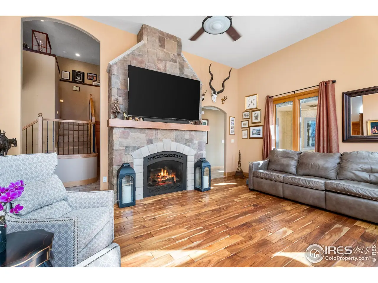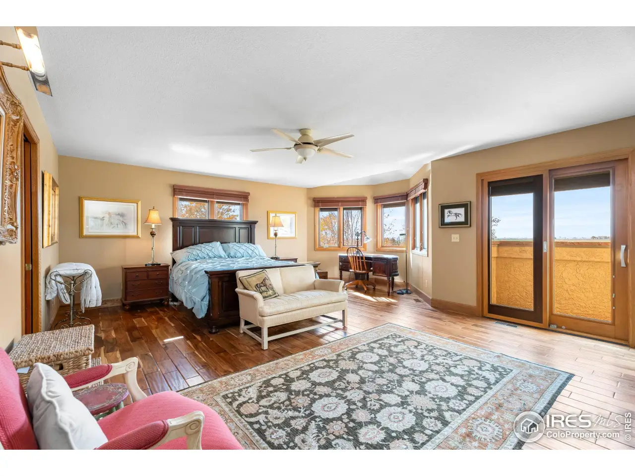 Set behind private gated entrance, this 35-acre equestrian estate perfectly captures the essence of Colorado living & mountain charm with stunning views. Originally built in 1988 & remodeled in 2015, home offers over 5,500 sf. Hand-scraped hardwood & tile flooring throughout-no carpet. Chef's kitchen w/custom soft-close cabs, granite counters, dual sinks, walk-in pantry w/wine frig & microwave, breakfast area & dining space w/bar seating & built-ins. Premium appliances-Wolf range w/pot filler, Miele side-by-side frig & dishwasher, KitchenAid under-cabinet drawers. Living room has soaring ceilings & stone fireplace while the foyer welcomes guests through arched wooden doors w/3 closets & 1/2 bath. Main-floor primary has 2 walk-ins, fireplace, arched ceilings, lit bookcases & luxurious bath w/custom cabs, dual vanities, large shower & private Toto washlet room. Upstairs, the 2nd primary has bay window, private balcony w/mountain views, walk-in & full bath. Adjacent bdrm opens to library w/antique gas fireplace & hidden behind built-in bookcase is secret wine room. Spacious office w/custom cabs & private balcony. 3-car garage w/220V power. Equestrian facilities include 75x145 indoor riding arena with lights, mirrors, premium footing & 14' overhead doors; 36x48 horse barn w/7 stalls (four active), concrete center aisle, sliding doors, covered overhangs, attached pipe runs & heated electric waterers. 3 large paddocks w/heated waterers adjoin barn area, 3 fenced pastures of approx 8 acres each. 20x60 meter outdoor riding arena w/sand & rubber footing, cross-country galloping track, & obstacle course-creating a true equestrian paradise for horse & rider alike. Zoned within the Left Hand Water District & equipped w/2 split leach fields & 1,500-gal septic tank, this estate delivers both luxury & practicality. Whether you're a serious equestrian, hobbyist, or simply seeking serene retreat surrounded by Colorado's natural beauty, this home offers unparalleled lifestyle.