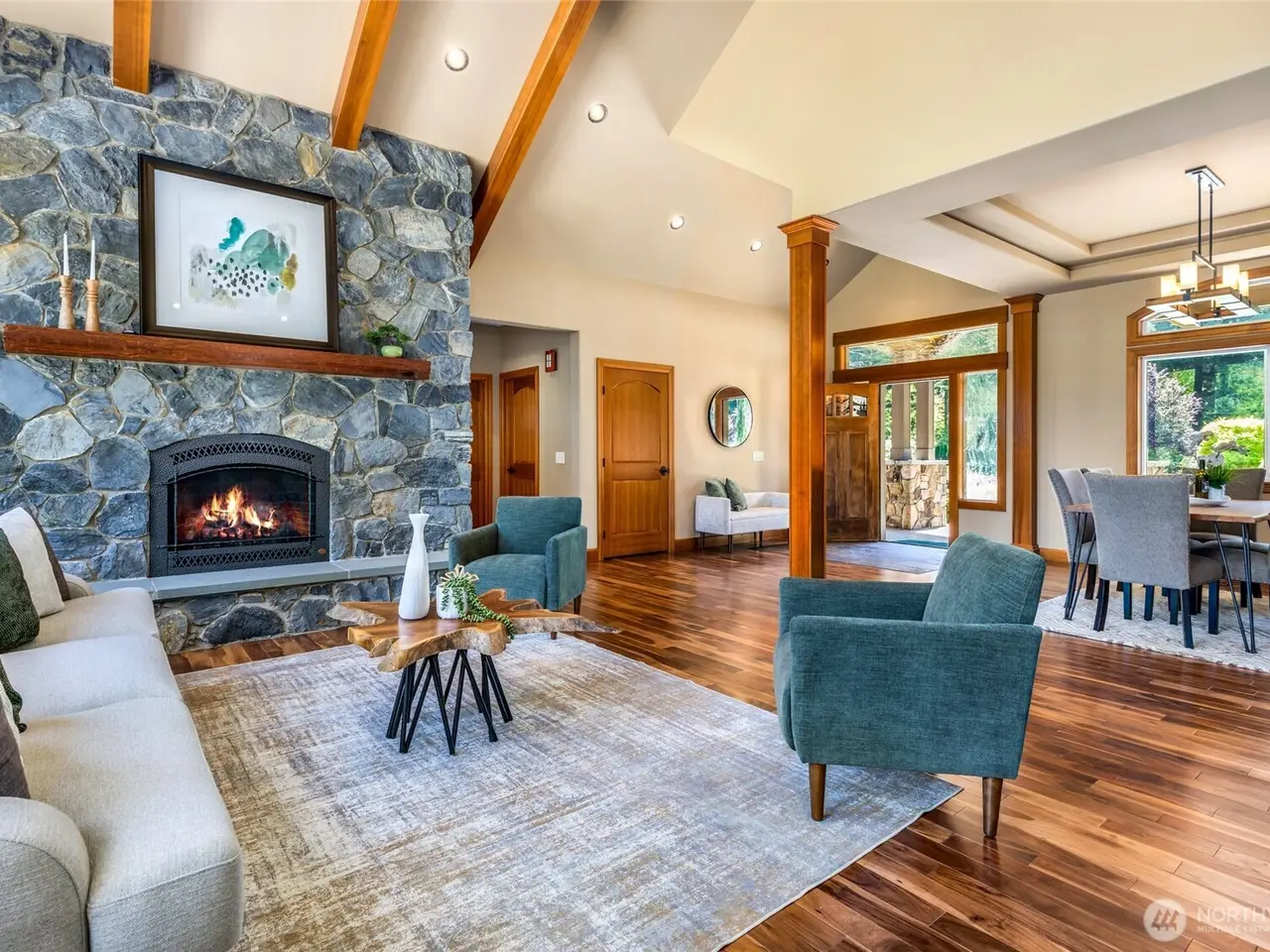 Experience elegant entertaining on 5 private acres near Woodinville wine country. The gated drive opens to a circular court with a tranquil water feature and entryway that sets the tone for sophistication. Inside, dramatic beam ceilings, a stone fireplace, and acacia floors create a warm, inviting ambiance. The gourmet kitchen with Sub-Zero and Wolf appliances inspires every culinary creation. Amazing upstairs surround sound theatre area. Step outdoors to a covered outdoor kitchen, water feature, and stamped patio all designed for gatherings. A Generac backup generator system, huge detached shop, and 42' motorhome garage complete this exceptional property.