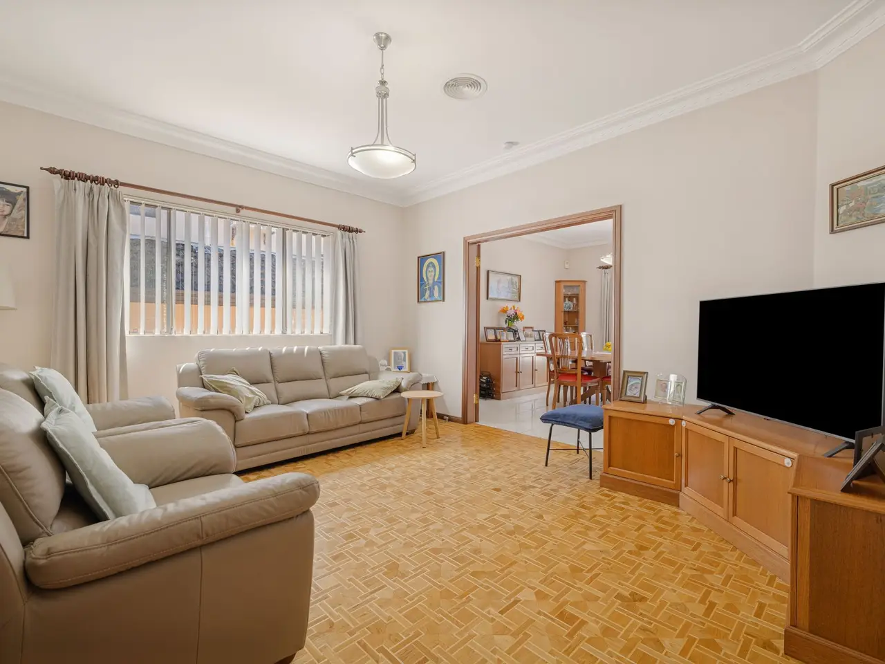 Beautifully presented and designed for family versatility, this north-to-rear facing residence combines timeless comfort with a superb sense of space and natural light. Perfectly positioned within 1.5km of Strathfield Station and elite local schools, it ensures everyday convenience in a highly sought-after pocket. The home's adaptable layout offers a series of indoor and outdoor living zones, complemented by a private detached workshop. - Versatile layout with multiple living zones across a light-filled, dual-level design - North-facing yard framed by manicured hedges, ensuring privacy and warmth - Detached workshop with bathroom and kitchen facilities, perfect for an extended family - Elevated front verandah, alfresco terrace, open-air patio for private entertaining - Well-maintained timber kitchen featuring a dishwasher and quality gas appliances - Three generous bedrooms, each fitted with built-in robes, polished timber floors - Full main bathroom with a corner spa tub plus an additional guest w/c and laundry - Timber flooring, large highlight windows and a welcoming ambience throughout - Double garage with internal access, plus driveway parking, and plenty of storage - Conveniently located close to city transport, shopping and prestigious schools