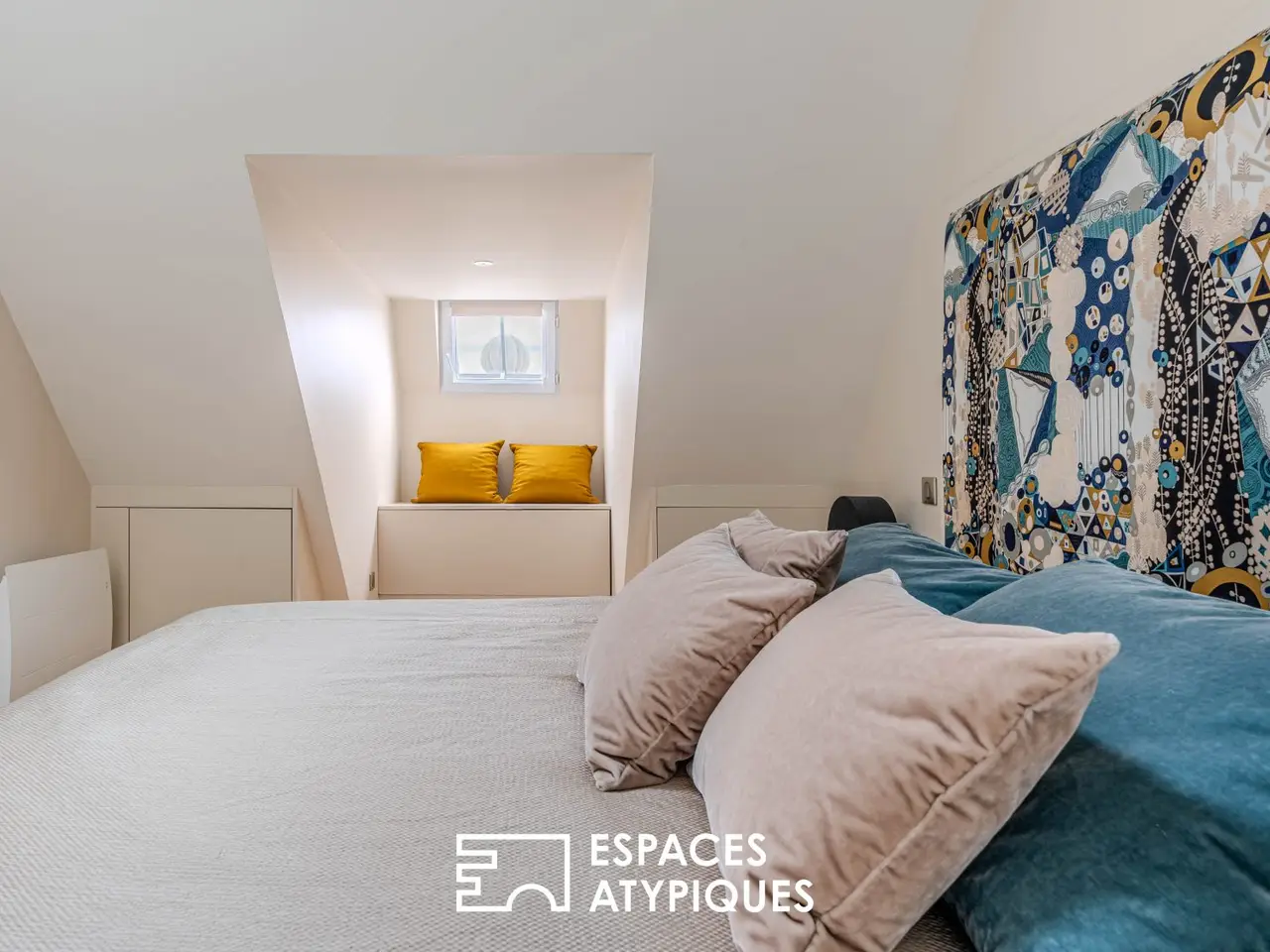 Ideally located in the hypercentre, on the top floor of a Haussmannian building, this fully renovated apartment has 108 sqm (113.48 sqm) and offers a refined and bright living environment. Its private elevator, its generous volumes and its neat finishes make it a rare property on the Nantes market. From the entrance, the living room bathed in light reveals a warm and sophisticated space. The spacious living room, decorated with a custom-made library and a cathedral ceiling with exposed beams, benefits from a double exposure that enhances every moment of the day. The open kitchen, fully fitted and equipped, combines contemporary design and functionality. On the night side, the apartment has an elegant master suite, with a custom-made dressing room and a refined bathroom with double sink and high-end finishes. Two other bedrooms complete the space, accompanied by a bathroom with noble materials, designed in a sober and refined spirit. Located in the heart of a sought-after area, close to shops, schools and transport, this apartment combines old-world charm and modern comfort. Its privileged location, its optimized layout and its atypical character make it a unique address for lovers of exceptional properties. Possible purchase option in addition on a closed and secure box in the area Property subject to the status of co-ownership: 12 lots including 9 residential Annual charges: EUR3,100 Information on the risks to which this property is exposed is available on the Georisques website https://www.georisques.gouv.fr Energy class C / Climate class A, Estimated average amount of annual energy expenditure for standard use, Average prices Average energy prices indexed on January 1, 2021 (including subscriptions): between EUR1,096 and EUR1,482 per year. REF. 2421 Additional information * 4 rooms * 3 bedrooms * 1 bathroom * 1 bathroom * Floor : 6 * 6 floors in the building * 20 co-ownership lots * Annual co-ownership fees : 3 100 € * Property tax : 1 900 € Energy Performance Certificate Primary energy consumption : 160 kWh/m2.an High performance housing