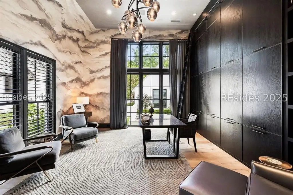 Welcome to 115 Mount Pelia--an award-winning, private oasis tucked on the banks of the May River. With its winding drive and inviting courtyard entrance, including a koi pond, this home welcomes you in with stunning architecture and floor to ceiling windows showcasing the sweeping waterfront views. The main floor features the ultimate chef's kitchen with a large island, work sink and entertaining sink, warming drawers, oversized Wolf range and built-in SubZero refrigerator and freezer. The scullery provides additional work space, sink and refrigerator, while the full back kitchen is stocked with pizza oven, grill, sink, refrigeration and more. Just off the kitchen is a large dining space with fireplace and living space with views of the water. The main floor screened-in porch offers 180 degree views of the May River while featuring additional living and dining space and a fireplace. Also on the main floor, you will find a sprawling primary wing with a large bedroom and spa-like bathroom, both with breathtaking river views, plus a private office. Downstairs provides additional living space with gorgeous views of the water, a game room, a media room, a wine cellar, a large exercise room plus sauna, additional laundry and two guest suites. The screened-in porch that opens to the pool provides even more entertaining space with a dining area, sitting area and fireplace. The large pool is perfect for lounging or laps and the outdoor shower that connects to the indoor half bath provides guests the perfect spot to shower off after a day in the sun.With an additional guest suite over the garage that includes a large sitting area and kitchenette plus a separate guest cottage with an additional bedroom, bathroom and kitchenette, there is plenty of room for family and friends to have space and privacy while they share in the beauty of this property. Don't miss the ultimate Palmetto Bluff retreat in the highly sought-after May River Forest neighborhood!
