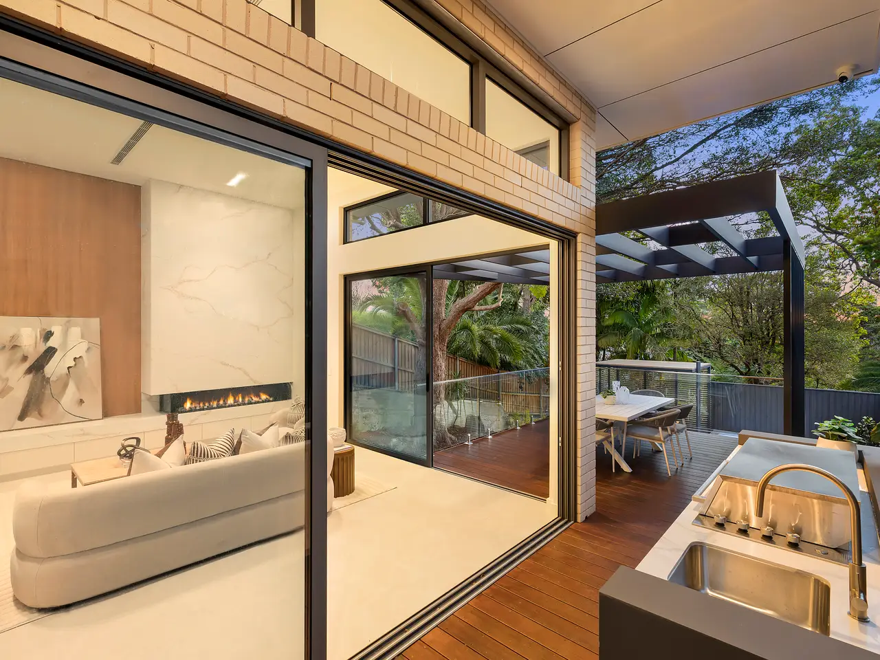 Celebrating the latest in contemporary innovation with flawless design, high-spec finishes and effortless indoor/outdoor integration, this magnificent freestanding residence has been crafted to deliver the pinnacle of designer sophistication and relaxed entertaining. Spanning multiple split levels with lift access to all floors, it showcases extensive glass-wrapped living spaces, a fully integrated designer island kitchen with premium Gaggenau appliances, and two opulent bedrooms with private ensuites. Curated with uncompromising attention to detail, the interiors blend stone and timber finishes with bespoke appointments and state-of-the-art inclusions to create an atmosphere of refined elegance. A private entertainer's deck extends seamlessly from the living domain, where a covered stone wet bar with built-in barbecue forms the focal point against a backdrop of leafy district outlooks and scenes of Middle Harbour. Placed on a 597sqm parcel of landscaped, low-maintenance gardens with a sparkling pool adjoined by a cabana, this world-class sanctuary enjoys an exclusive setting within a short stroll of harbourside parkland, Seaforth Village and Seaforth Public School, and only minutes from Manly Beach and the Sydney CBD. - Double-height entrance foyer with a stone catcall bench lined with a feature glass wall - Sleek tiled flooring, high ceilings and soaring raked ceilings cover the living spaces - Sweeping living space with a gas log fireplace overlooked by a banquet-sized dining room - An indoor garden and stairs divide the living and dining spaces, stacked glass doors open to the deck - Covered deck with a stone wet bar and barbecue extends to an open deck with a water view - Deluxe Quantum Zero-crafted stone kitchen with a four-seat breakfast or cocktail island bench - Pitt gas cooktops, Gaggenau combi-ovens and integrated dishwasher, integrated fridge - Enormous upstairs family room with sunny clerestory windows, sun-washed north balcony - Spacious bedrooms with built-ins, guest bedroom with ensuite, exquisitely crafted bathrooms - Palatial main bedroom with a walk-in robe, ensuite and expansive leafy district views - Auto double garage with epoxy flooring and internal access, video intercom and ducted air-con