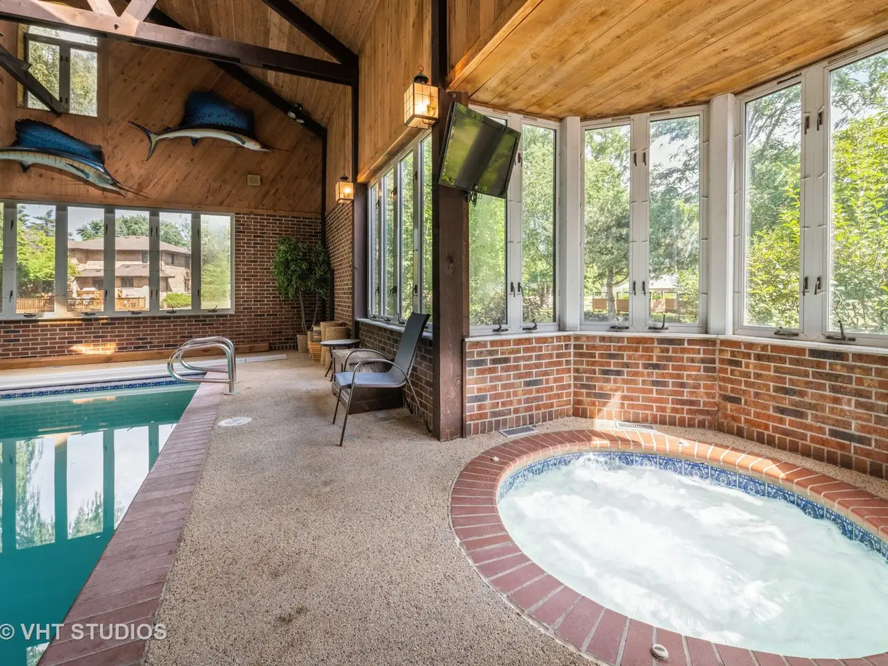 • Heated indoor pool with cedar planked ceilings