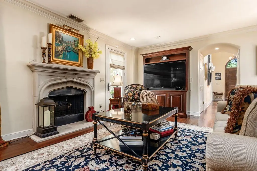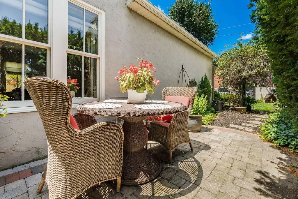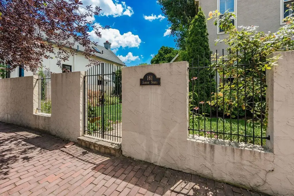 This beautifully designed home is tucked away in the heart of German Village. The gated front offers unique privacy with a large courtyard and two patios surrounded by gardens. The open floor plan with a first floor primary suite is sophisticated and elegant. The gourmet kitchen has high end appliances, granite counter tops and a walk in pantry. The kitchen opens to a beautiful living and dining space that features a stone fire place, large windows and french doors leading to the private patios perfect for letting your pets. The primary suite has an additional fireplace, custom built walk in closet, and large bathroom. The second floor features a media room accessible by both front and back staircases. The additional bedrooms and bath are perfect for guests with room for a home office. The third floor is ready for your hobbies or additional storage. A new roof, AC and fireplace was installed in 2025
