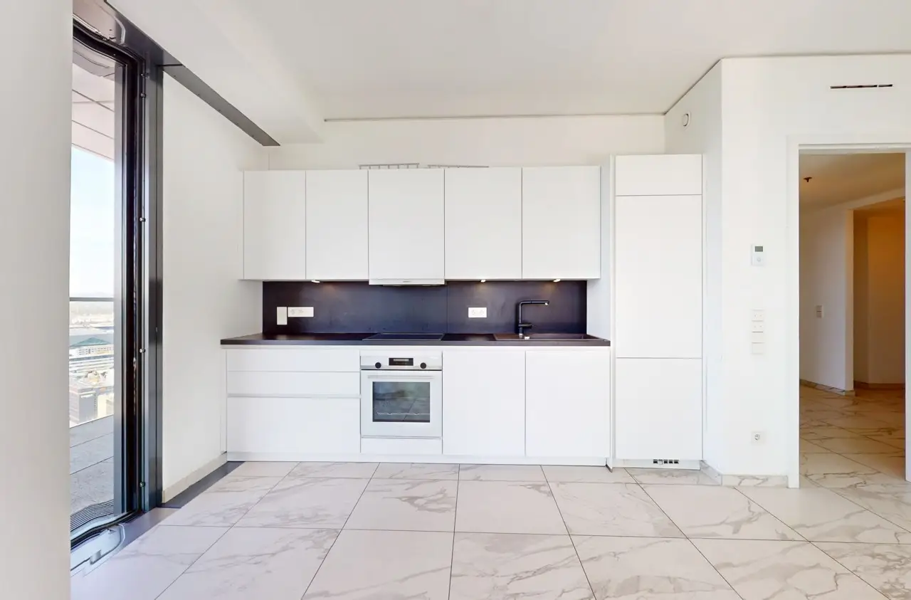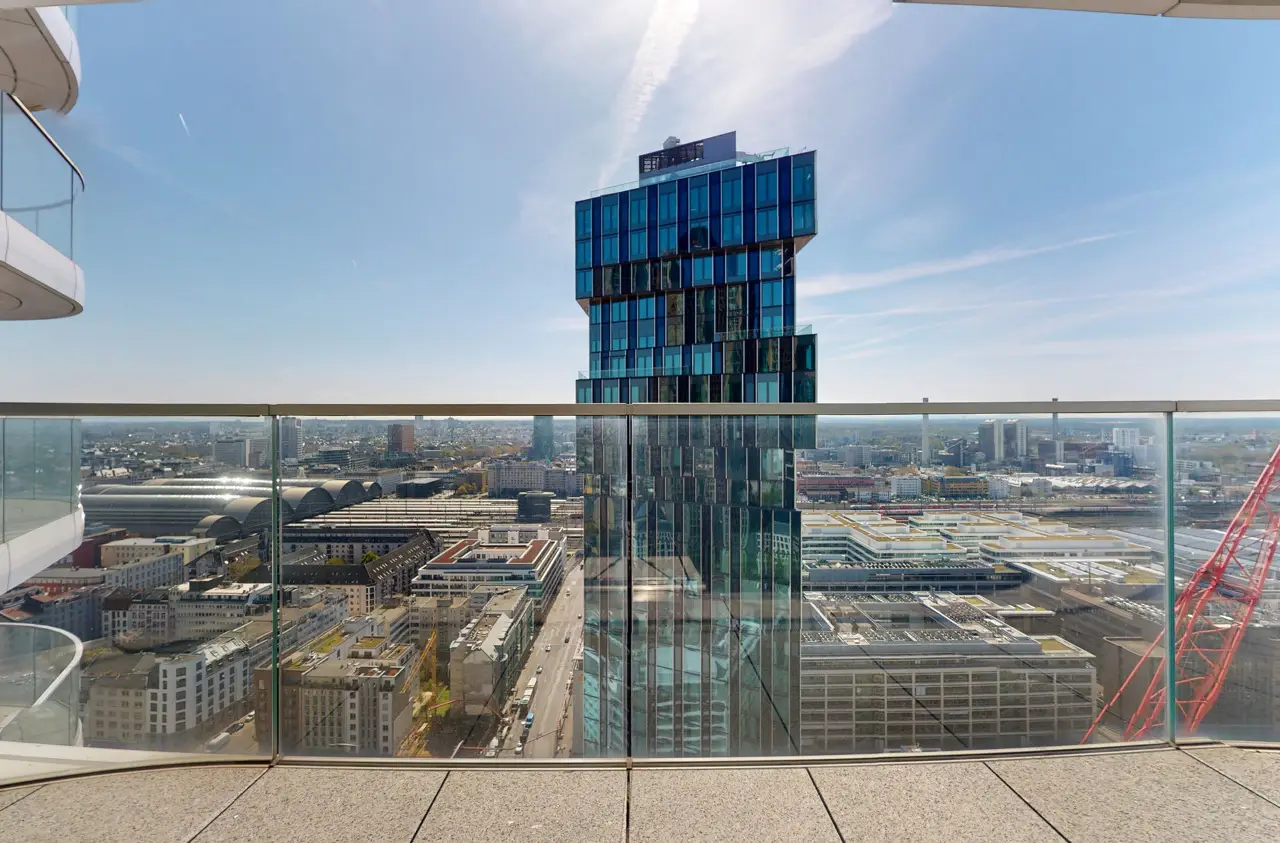 Welcome to the exclusive Grand Tower in Frankfurt - Germany's tallest residential high-rise, which stands for stylish, urban living with the highest standards. This extraordinary apartment on the 27th floor offers you a unique living experience on around 112 m² above the rooftops of the city. Thanks to the floor-to-ceiling windows, the entire apartment is flooded with light and opens up breathtaking views of the Frankfurt skyline and beyond. The spacious living area with open-plan fitted kitchen forms the heart of the apartment. The modern kitchen is seamlessly integrated into the room and impresses with high-quality appliances and plenty of storage space. From here, you have direct access to a large balcony that invites you to spend relaxing moments with a view over the city. A large, bright bedroom with direct access to the balcony offers you maximum living comfort. Adjacent is a high-quality en-suite bathroom, equipped with a bathtub and separate shower - ideal for relaxing morning routines or a peaceful end to the day. Another, smaller room with fine parquet flooring is perfect as a study or guest room and has access to a second, separate mini-balcony - a quiet retreat at a lofty height. There is also a third, smaller room, also with parquet flooring, which can be used in a variety of ways, for example as a home office or walk-in closet. The space is rounded off by a second, interior bathroom with a modern shower - stylishly designed and practical for guests or daily use. As a resident of the Grand Tower, you will enjoy numerous exclusive benefits that go far beyond ordinary living. A concierge service is available to you daily and ensures the highest level of comfort - just like in a luxury hotel. The Skydeck at a height of 172 meters is a real highlight: enjoy spectacular 360-degree views over the city and experience Frankfurt from a completely new perspective. The spacious Grand Garden offers a green oasis in the middle of the city - perfect for relaxing or meeting other residents. Stylish lounge areas and an underground parking space with quick and easy access round off the exclusive offer. The central location of the Grand Tower speaks for itself: the trade fair, the banking district, numerous shopping facilities, restaurants, cafés and cultural institutions are all in the immediate vicinity - everything that makes urban life worth living. In the neighboring Skyline Plaza shopping center, the exclusive Meridian Spa offers fitness, wellness and body care in an upscale ambience. This apartment is more than just a home - it is a lifestyle. Ideal for people who are looking for something special and value quality, design and service. Arrange your viewing appointment now and be inspired by the Grand Tower.