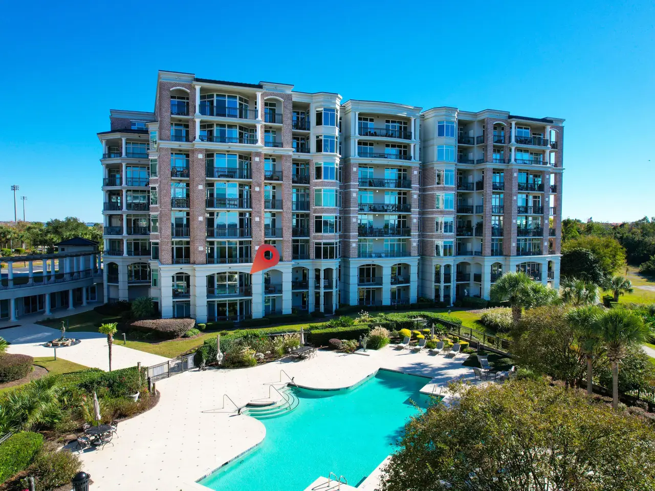 A rare opportunity to own a beautifully reimagined residence at The Renaissance on Charleston Harbor, showcasing breathtaking views of the Ravenel Bridge and Charleston skyline. Perfectly positioned on the exclusive Plaza Level, this 3-bedroom, 2.5-bath home blends timeless elegance with modern luxury. A semi-private elevator opens directly into the residence, revealing an open, light-filled floor plan with curated designer lighting, custom finishes, and exquisite craftsmanship throughout.Experience refined harborfront living--where luxury, privacy, and location converge--just minutes from downtown Charleston, Patriots Point, and shopping, dining, and medical facilities in Mt. Pleasant.The chef's kitchen is a showpiece, featuring Thermador appliances, sleek custom cabinetry, a wine cooler, and a center islandideal for entertaining. An electric fireplace warms the living area, which opens to a covered terrace extending the length of the home, accessible from the living room, dining area, and primary bedroomperfect for enjoying Charleston's harbor breezes and sunset views. The living room is also open to the dining area and kitchen for easy living and entertaining. The spacious primary suite features dual walk-in closets and a spa-inspired bath, complete with a soaking tub, walk-in shower, and double vanities. The second bedroom features an en-suite bathroom with a walk-in shower. The third bedroom also makes the perfect home office. Resort-style amenities include a concierge, swimming pool, fitness center, event and meeting rooms, library, gated garage with covered parking, lush landscaping, and on-site guest suites. Additional conveniences include conditioned storage, multi-layer security, and a comprehensive regime covering exterior maintenance, insurance, water, sewer, basic cable, common-area cleaning, and on-site maintenance. Two pets allowed.