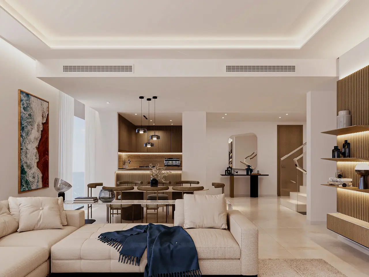 - Private outdoor spaces offering panoramic sea and skyline views.
