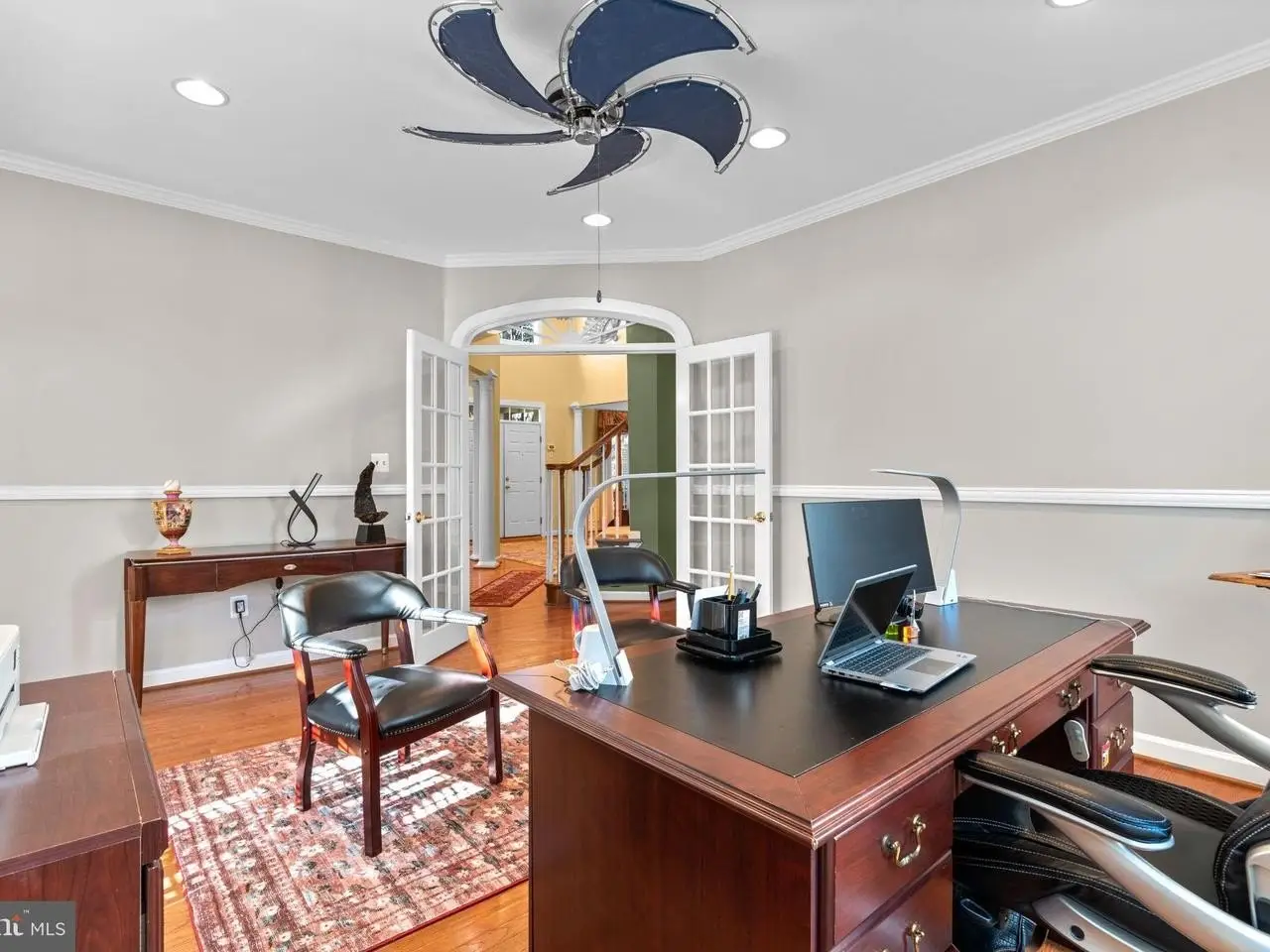 If you are you looking for a stunning home with over 7,000 total square feet of living space, situated on over an acre of meticulously landscaped grounds, and is centrally located to Annapolis, Washington DC and Baltimore, then this is THE place for you. As you enter this stunning brick colonial, you'll notice a grand two-story foyer that is elegantly adorned with a graceful turned staircase. Off the foyer, you will find a spacious living room that invites both relaxation and conversation, along with a separate dining room, both of which are perfect for gathering with family and friends during special occasions and everyday meals. The main and upper levels feature rich hardwood floors that significantly enhance the beauty of this magnificent residence. Also on the main level is a light filled sunroom, accentuated by a tasteful tray ceiling, and a charming morning room off the kitchen that provides a delightful spot for quiet relaxation and enjoying your morning coffee. This level also boasts a well-appointed office that is ideal for productive work-from-home days, a cozy family room complete with a striking stone fireplace that serves as a stunning focal point, and an eat-in kitchen that is not only functional but also beautifully equipped with stainless steel appliances, granite countertops, and a butler's pantry that comes with a wet bar, making it perfect for entertaining. Freshly painted throughout, with stylish crown molding, elegant chair rails and 9 ft. ceilings, this home invites an abundance of natural light through its full-length windows. Venturing to the upper level, you will discover the luxurious primary bedroom suite, which includes a tranquil sitting area with fireplace that beckons for relaxation, two generous walk-in closets for ample storage, an updated ensuite bath fitted with a soothing soaking tub and separate shower designed for comfort, as well as a separate dressing room with sink and vanity. The second bedroom is also equipped with its own updated ensuite bath, while two additional bedrooms share a freshly renovated Jack and Jill bathroom, ensuring comfort and privacy for all residents. The lower level is a fully finished oasis, providing a fifth bedroom with an updated bath, a second office that can serve various purposes, and flexible spaces that can be adapted to meet your specific needs. A recreation room and game area, combined with a cozy fireplace and walk-out access to the beautifully landscaped backyard, make this space perfect for entertainment and leisure activities. The exterior features a rear composite deck that is complete with a screened in gazebo, spacious rear yard with a fire pit and places to just sit and relax among the mature trees, perfect for outdoor gatherings or peaceful evenings under the stars. Furthermore, it is conveniently located near the bustling Maple Lawn shopping center and major transport routes, blending luxury with accessibility and ensuring that all your daily conveniences are just a stone's throw away. This residence truly represents a harmonious balance of grandeur and comfort, making it an unparalleled choice for anyone seeking a dream home in Howard County.