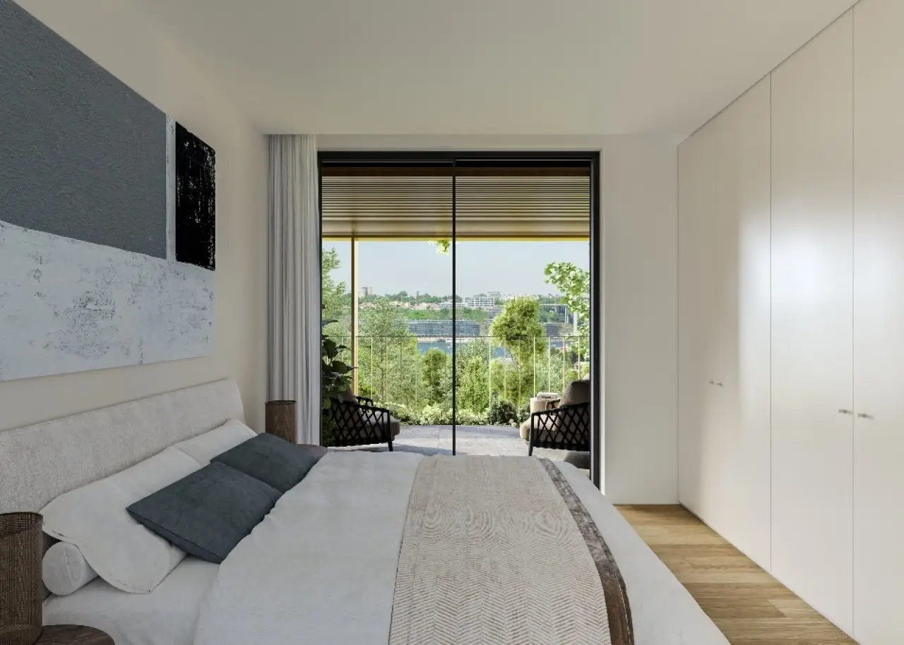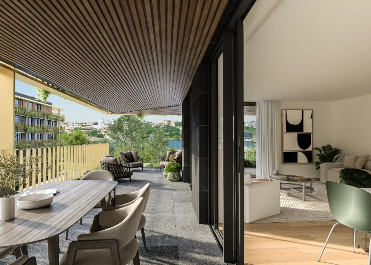 Four-bedroom apartment in the Marina Douro private condominium, with large balcony, for sale, opposite the Douro river in Gaia. This newly constructed four-bedroom apartment, situated within the Marina Douro condominium, with generous areas, quality materials and good taste, offers a sophisticated and comfortable interior ambiance. The balcony, surrounded by vases that stand out on the façade, appears as a natural extension of the houses, flooding the rooms with natural light. The excellent sun exposure also provides stunning views of the river, the sea and the nature reserve. This apartment stands out for its perfect balance between interior and exterior spaces which, together with the carefully selected materials, create an elegant and exclusive environment. The large living room with a direct connection to the balcony and the fully equipped kitchen are complemented by private areas with bright bedrooms, one of which is a Master suiteall with built-in closets. The Marina Douro condominium offers leisure areas such as a private garden, lounge and children's playground. All the apartments have parking spaces in the building's garage and storage, as well as thermal and acoustic insulation, air conditioning, heat pump, home automation and electric shutters. Opposite the River Douro and Afurada Marina, in a nature reserve between the cities of Vila Nova de Gaia and Porto, on the left bank of the River Douro. Less than 15 minutes from the center of Porto and Gaia, in a luxury and very quiet residential area, a stone's throw from the beach. CHARACTERISTICS:Area: 145 m2 | 1 562 sq ft Bedrooms: 4 Bathrooms: 3 Garage: 2 Energy efficiency: A