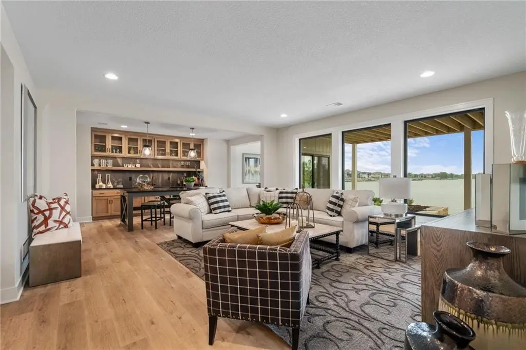 Show-stopping Dusty Rhodes Laguna plan offers a new look for reverse 1 1/2 story buyers wanting to live on the lake. Walking through the double door entry of this home, your first glimpse of the soaring beamed ceilings with massive open doors to the covered deck with fireplace inviting you tio view the lake. The openness of the main level has large private owner's suite which includes large bath with shower and tub and walk-in closet and laundry room. Huge great room with fireplace, large gourmet kitchen with butler's pantry, expandable dining area, plus a private flex room for an office ,additional bedroom, or study with it's own bath. Wait until you see the lower level that has 3 entertaining areas (media room, game room and bar area. Two additional bedrooms, and 2 1/2 bath completes the walk-out lower level, which leads to the lake. This spacious 3583 sq. ft. home with 4 bedrooms, 4 1/2 baths is the perfect plan on one of the nicest Creekmoor Lake lots. Living on the lake allows you to have your own dock to dock your boat, and private lake access. Additional Creekmoor amenities include use of golf course (paying only a green fee) use of the exercise facility, pools, walking/biking trails, sports courts as well as the convenience of Tavern on the Moor restaurant makes living at Creekmoor complete.