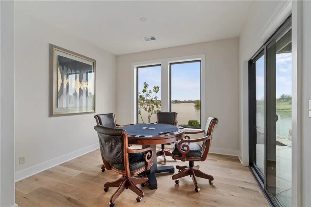 • Media room, game room, and bar area