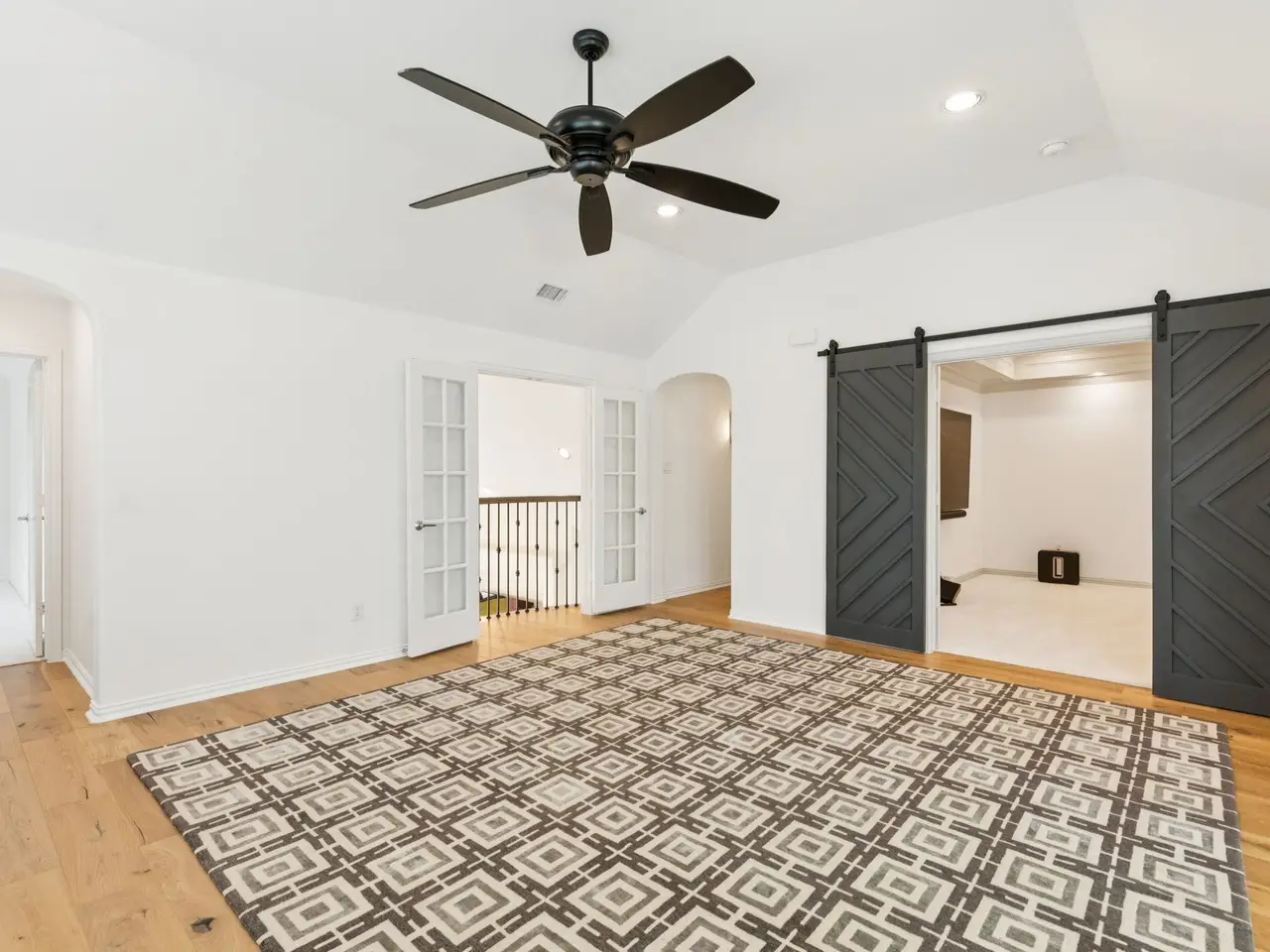 Media room with barn doors