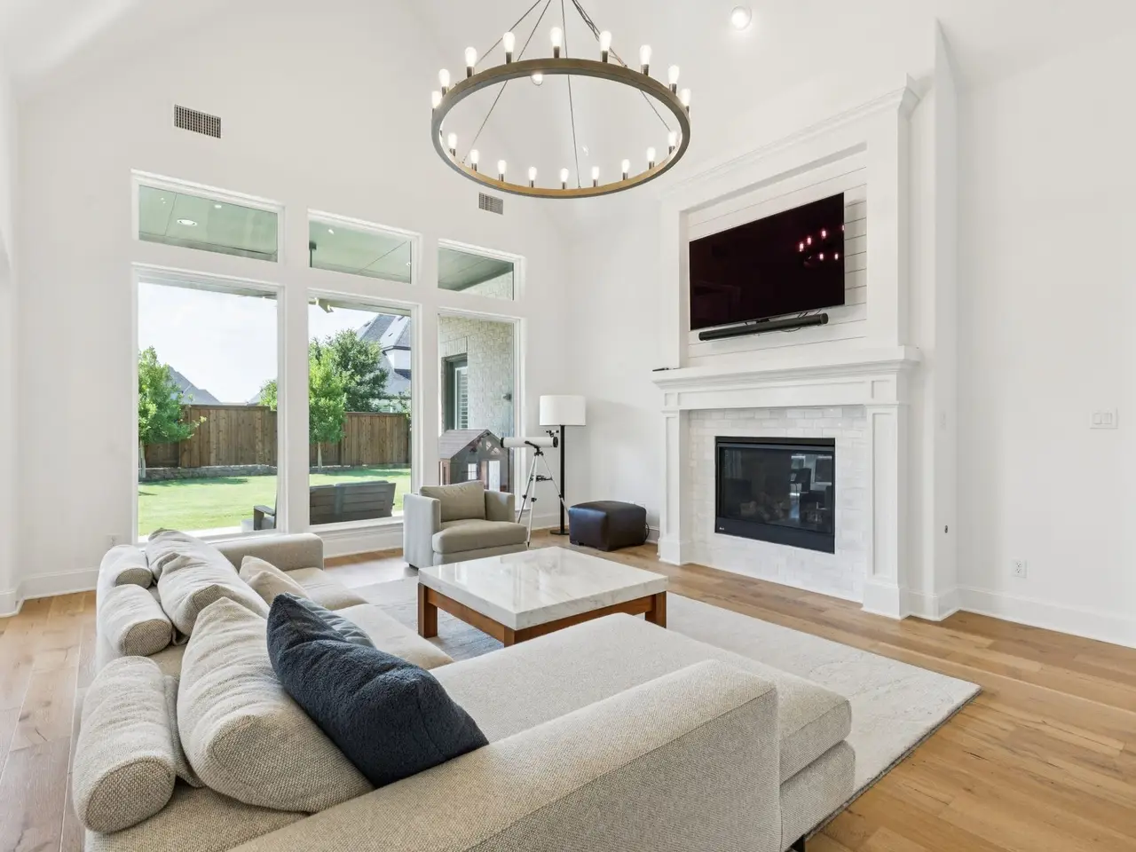 Gorgeous home in Windsong Ranch! From the moment you enter through the iron front door, youre greeted by a striking wood-and-iron staircase and hardwood floors. Complete with a whole home generator, the main level offers a private study with French doors, an elegant dining room with a butlers pantry, and a chef-inspired kitchen with white cabinetry, marble countertops, glass-front upper cabinets with lighting, 6-burner gas cooktop, double ovens, built-in refrigerator, and walk-in pantry. The living area boasts vaulted ceilings and designer lighting, creating an inviting space for entertaining. The main level also has a guest suite, primary bedroom with his and hers closets and a beautiful bath. Upstairs youll find a spacious game room, separate media room with barn doors, and three generously sized bedrooms each with their own ensuite bath. Enjoy the large backyard with covered patio, a 4-car garage, and countless upgrades throughout. Taxes for ISD are paid to Denton.