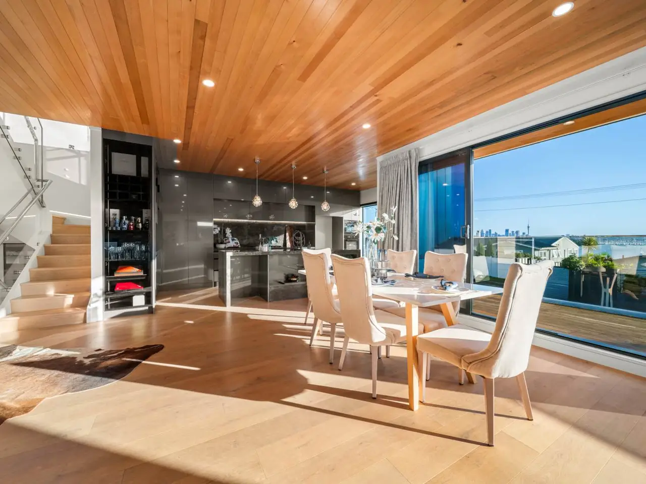 Step into a world where elegance meets energy, and every moment feels extraordinary.This stunning freehold, freestanding residence is your invitation to experience the very best in modern living - where privacy, comfort, and unforgettable panoramas come together in perfect harmony.Begin each day with awe as you look out over sweeping, 180-degree vistas - sparkling harbour waters, the iconic city skyline, the Sky Tower, and the Harbour Bridge.Host unforgettable gatherings on your expansive balcony, while watching the sky ignite with vibrant sunsets while laughter and conversation linger in the warm evening air. This is the ultimate spot for summer BBQs, celebrations, and quiet moments alike.Features:- Five luxurious bedrooms and a dedicated study space offer space, tranquillity, and comfort for every member of your family- Six modern bathrooms (including five ensuites) promise convenience and indulgence for all- Two generous living areas including a warm fireplace- Double garage ensures security and ease, every single day- Stunning concrete construction delivers both contemporary flair and enduring peace of mind.- A total of 419sqm (mol) floor area and 410sqm (mol) freehold land areaYour chance to own a premier North Shore address, stroll just two minutes to Hauraki School, with Belmont Intermediate and Takapuna Grammar School in zone, perfect for families who demand excellence in education. Enjoy effortless access to transport links, boutique shopping, and the very best beaches, cafes, and amenities the North Shore has to offer.Opportunities like this are truly rare - contact the exclusive agents to view this masterpiece now. Deadline sale: Closes on Monday 8 December 2025 at 3:00PM (unless sold prior)