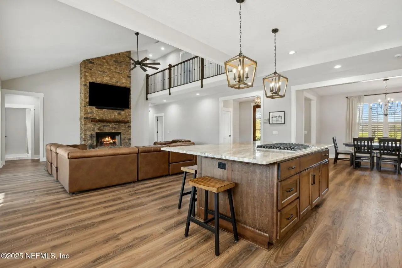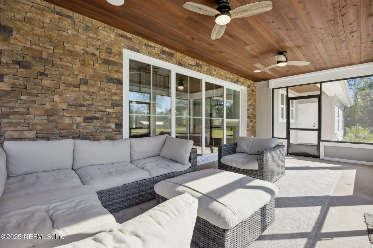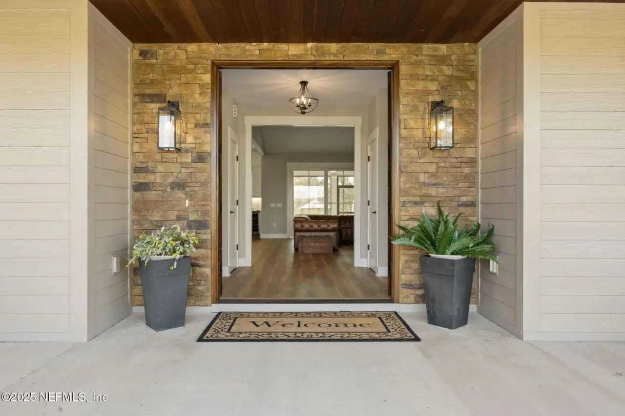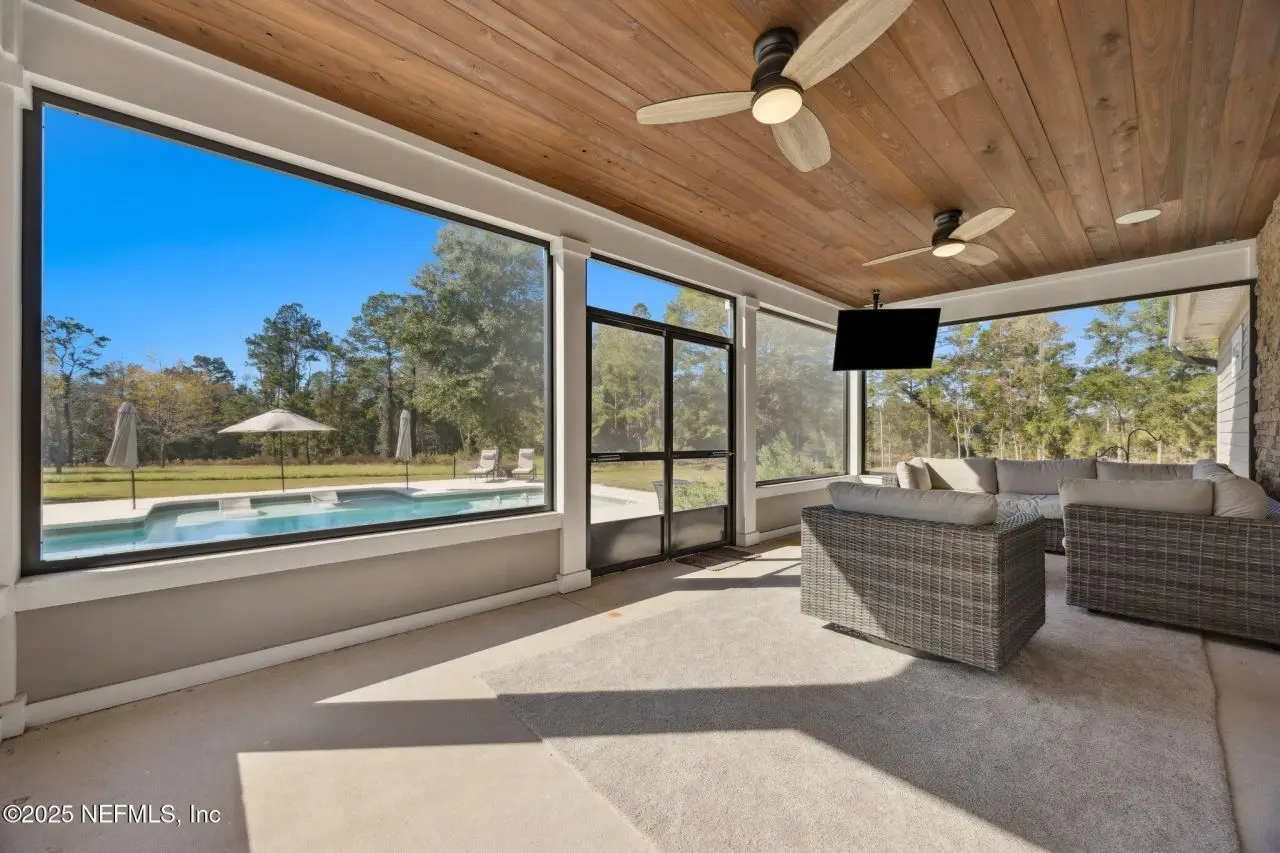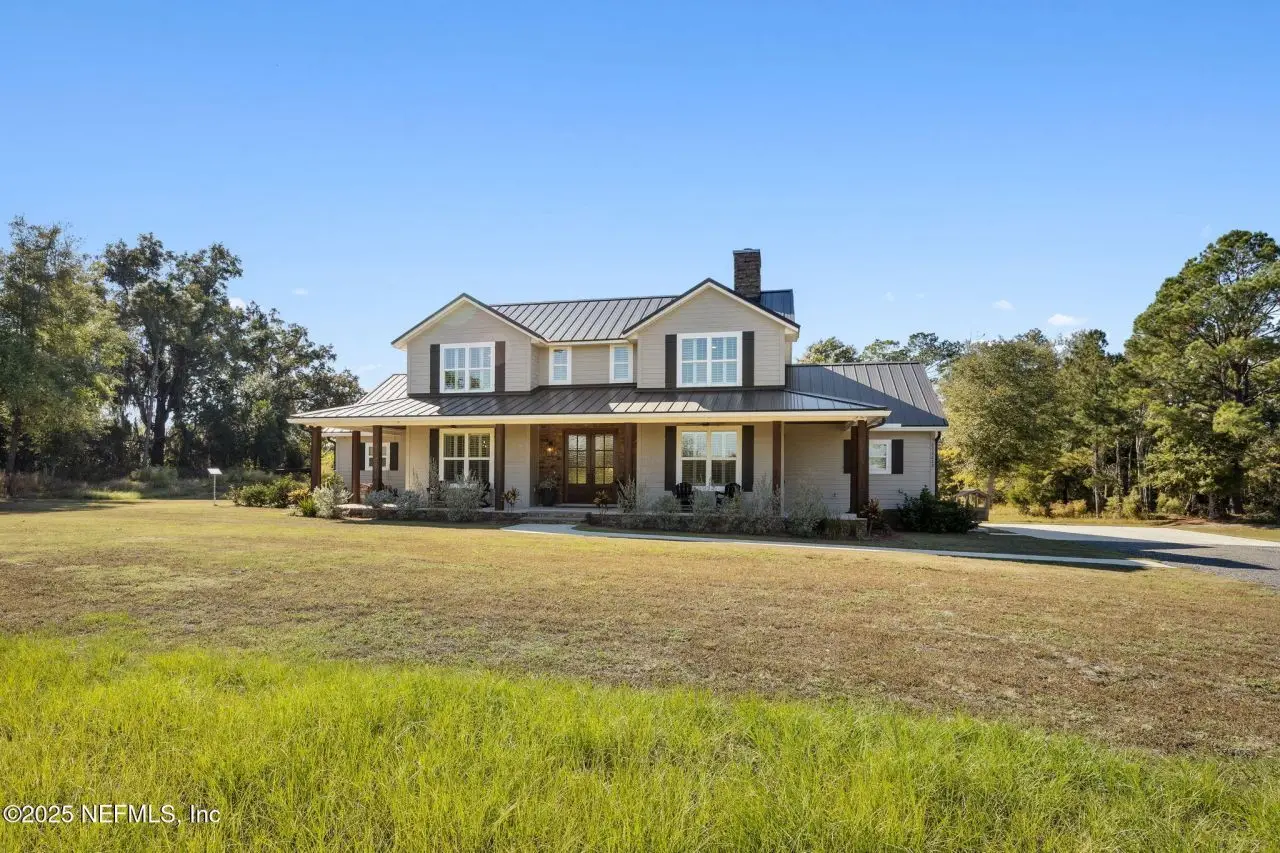 Stunning 2023s-built estate on nearly 24 acres with luxury finishes and serene privacy. Completed in August 2023, this 5BR/3.5BA, 2,985 sq ft home blends modern elegance with country charm. The chef's kitchen features quartzite counters, 10' ceilings, floor-to-ceiling cabinetry, an oversized island, walk-in pantry, and stainless KitchenAid appliances. Enjoy cozy nights by the soaring stone fireplace or open the 16' glass doors to a screened porch overlooking sunsets and a private pond. The saltwater pool with dual sun shelves is heated/cooled for year-round enjoyment. Durable upgrades include metal roofs, Hardie siding, spray foam insulation and double-paned windows. Extras: 60'x40' pole barn, Sonos sound system, custom wood shelving, plantation shutters, media closet, chicken coop & Generac Generator A rare opportunity for peaceful living with high-end amenities.