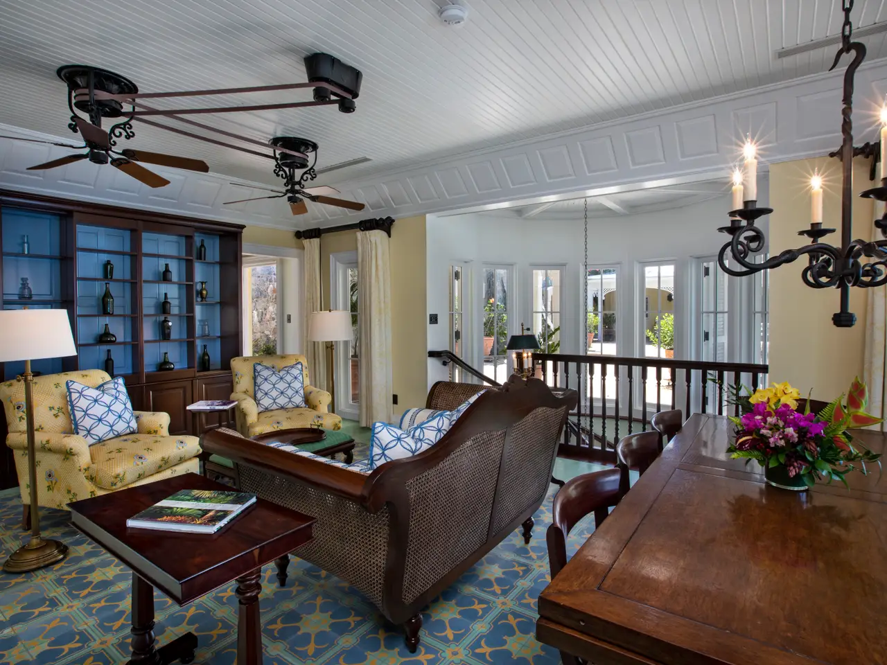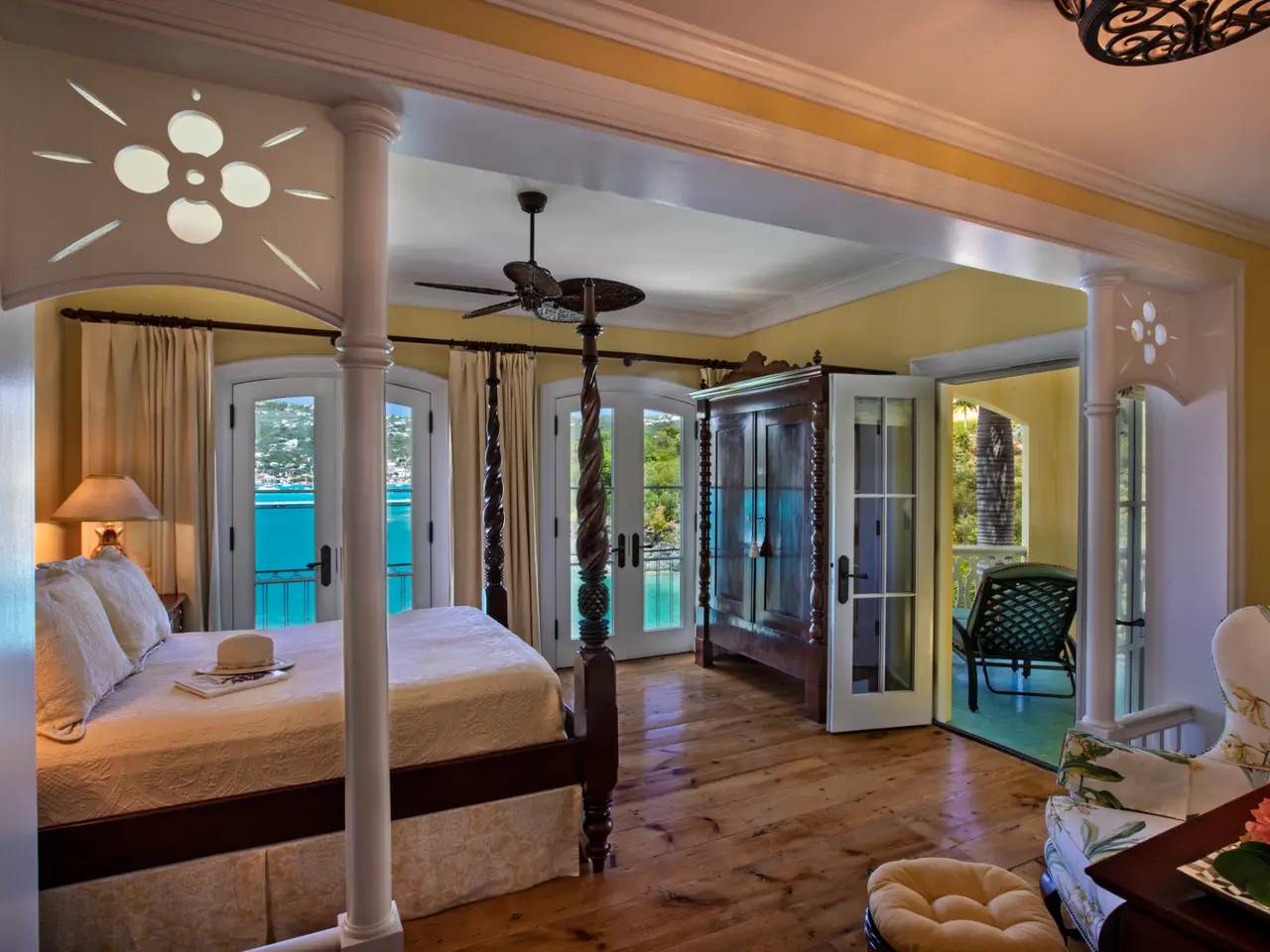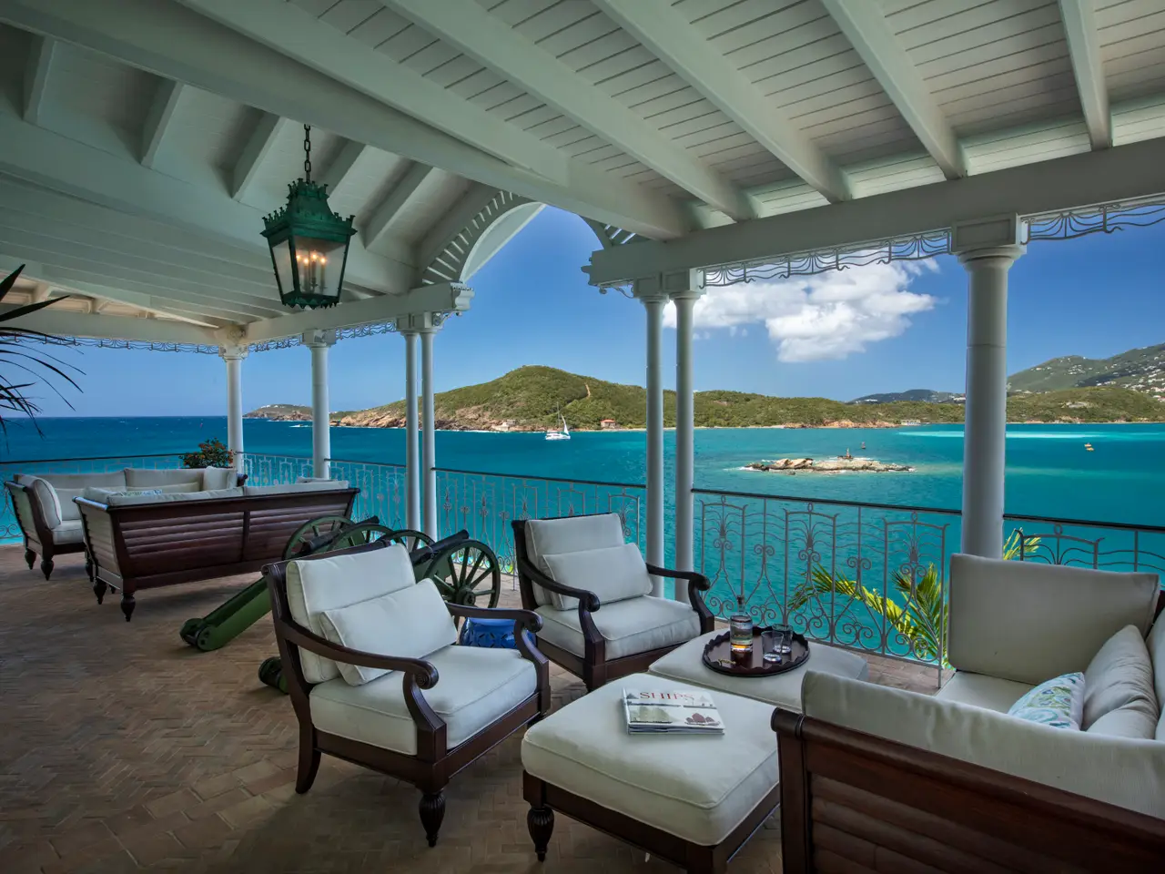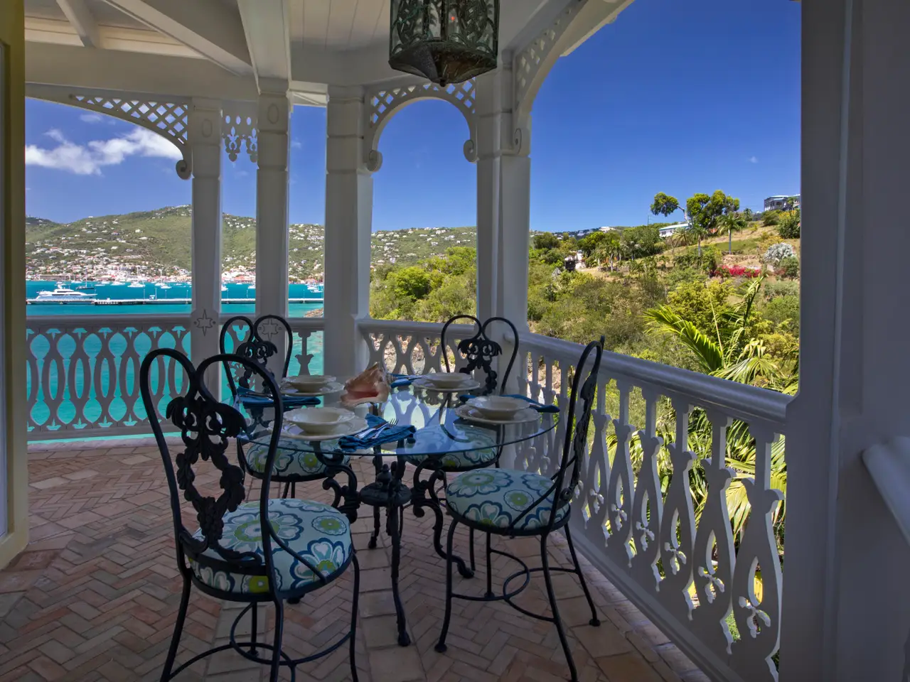 The Waterfront Estate is more than a home. It's a one-of-a-kind experience. The expansive nine-acre estate includes four homes and boasts a total of 18 bedrooms, 14 baths, two infinity pools and 25,490 square feet of luxury and privacy across 11 parcels. Tropical walkways bursting with royal palms and native plants connect all four homes. The real treasure among these are the two waterfront villas, both with direct water access. Stone staircases, as well as two trams with intermediate stops, allow you to descend all the way to the turquoise ocean below. As you enter the main villa, the tasteful and elegant furnishings will usher you to another era. Magnificent architecture, enchanting stonework, unique hardwoods, and a prized collection of antiques evokes feelings of nostalgia, grandeur, and adventure. Each room has a distinct persona and story of its own, from the 800 square foot great hall to the wine grotto, all brought together by the old-world charm of a Caribbean estate aesthetic. The fun truly begins as you step outside and explore the many terraces and verandas overlooking Charlotte Amalie harbor. Try your hand at shooting one of the two working water cannons straight into the Caribbean Sea. Relax on the lounge deck or soak in the infinity pool. Take a stroll along the gorgeous 50-foot white sand beach. Watch the sunset over Hassel Island on your own private 80-foot dock. Enjoy the Caribbean's most spectacular music and light show courtesy of the estate's terraced waterfall, which features 10 jumping jets, eight fire braziers, 17 falls, a fog machine, more than 100 LED lights and a holographic water screen. Whether you're interested in an exceptional island getaway or the ultimate place to entertain, this captivating property will exceed your expectations. Property Details: Main Villa: 5 Bedrooms, 5 Full Baths / 2 Powder Rooms, 6,500 Total Square Feet, Infinity Pool (1,630 Cubic Feet) Guest House Cottage: 4 Bedrooms, 2 Full Baths / 1 Powder Room, 2,400 Total Square Feet Second Villa: 6 Bedrooms, 5 Full Baths / 1 Powder Room, 4,400 Total Square Feet, Infinity Pool (2,750 Cubic Feet) Two Car Garage Third Home: 3 Bedrooms, 2 Full Baths
