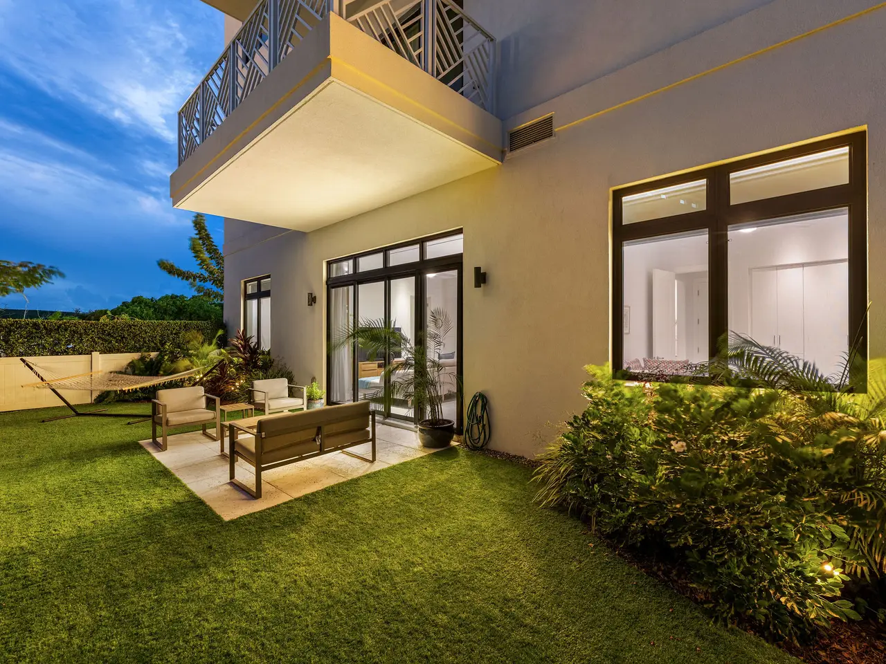 Olea 414 – a beautifully appointed two-bed, two-bath garden residence within the prestigious Olea community, right in the heart of Camana Bay. Offering an unparalleled level of convenience and lifestyle, this address places you moments from the very best of the Seven Mile Beach corridor and just minutes from the shoreline of Seven Mile Beach itself.Enjoy effortless walkability to Cayman International School, world-class dining, boutique shopping, entertainment, and every amenity that defines Camana Bay. Close enough to enjoy it all, yet positioned for complete privacy.This luxurious end-unit features a spacious living and dining area anchored by a well-designed kitchen with a generous island, high-end appliances, abundant storage, and a bright, airy atmosphere. The living space flows seamlessly to the private, lush garden—an inviting setting for relaxing, entertaining, or simply unwinding in total seclusion.The primary bedroom benefits from the end-unit location, welcoming exceptional natural light, and includes a large walk-in wardrobe and elegant en-suite bathroom. The second bedroom is equally generous in size, ideal for guests or as a versatile home office, and is thoughtfully positioned for comfort and privacy. High ceilings and premium finishes elevate the entire residence.The fully fenced garden enhances the sense of retreat, all while being just steps from Olea's exceptional on-site amenities.Residents enjoy access to resort-style living, including a lazy river, multiple swimming pools, a state-of-the-art fitness center, beautifully landscaped grounds, and nearby tennis courts and recreation facilities.This home also benefits from geothermal air conditioning and a solar panel array covering approximately 40–50% of typical energy usage.Olea: Camana Bay's only true residential community. Experience it for yourself.