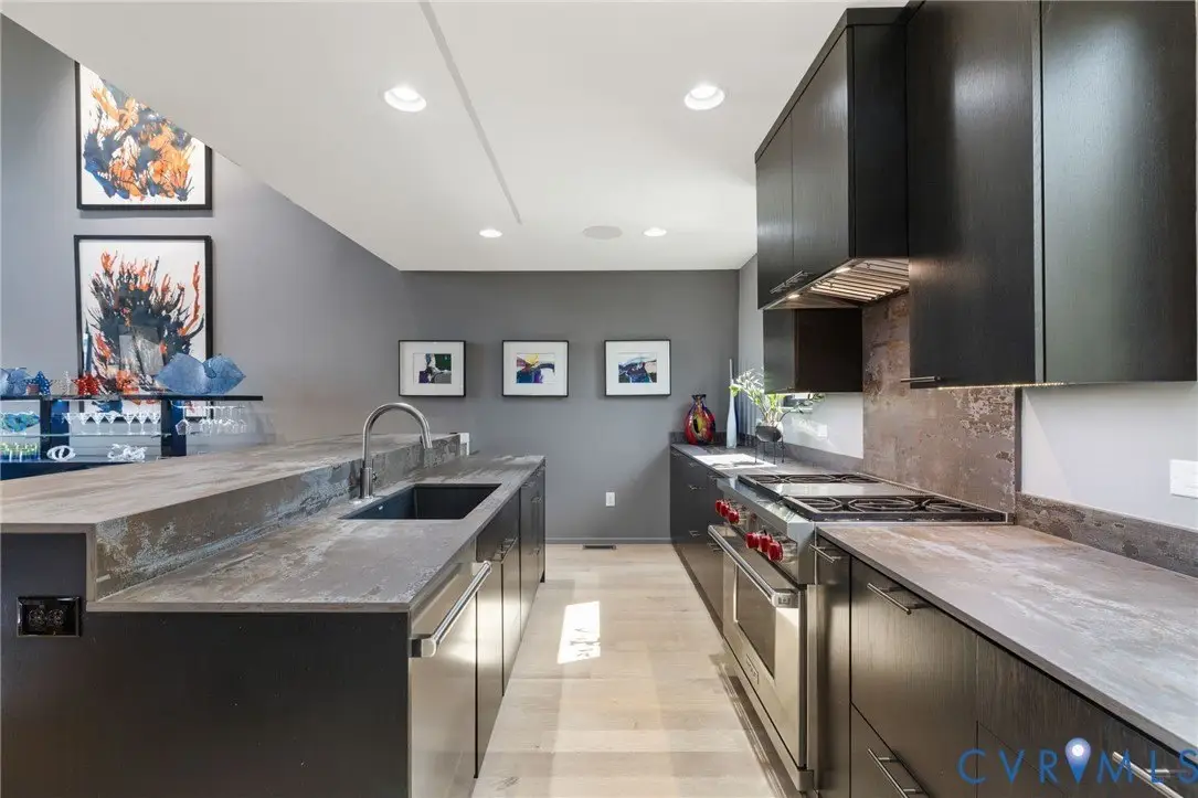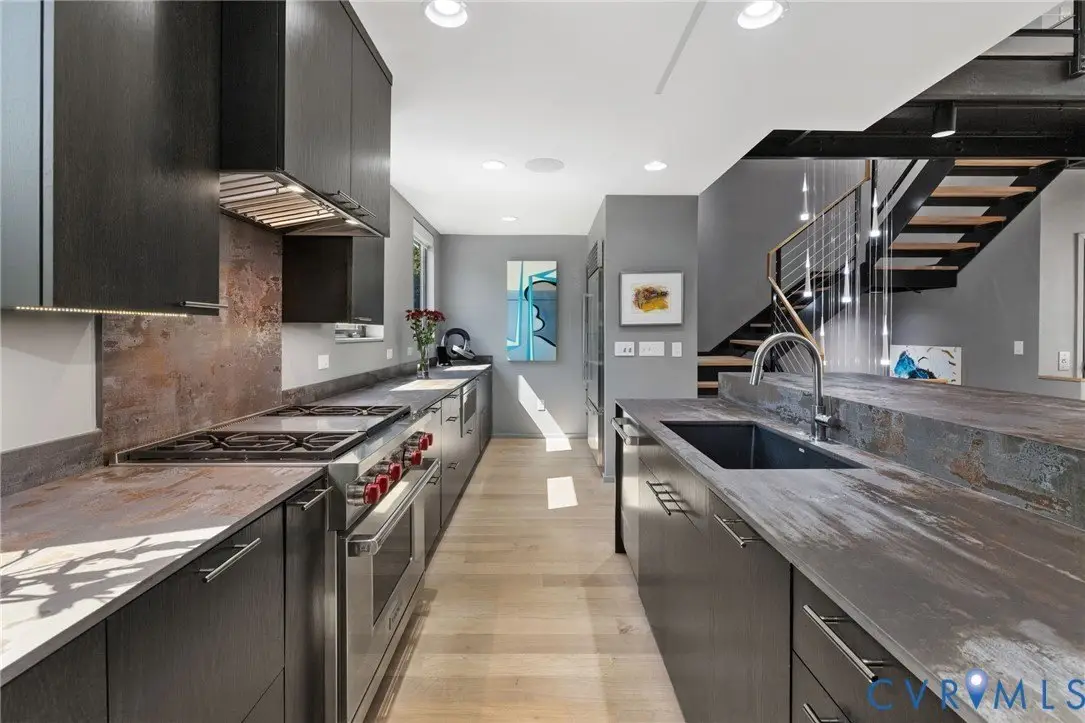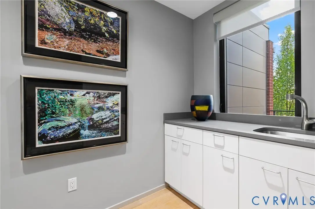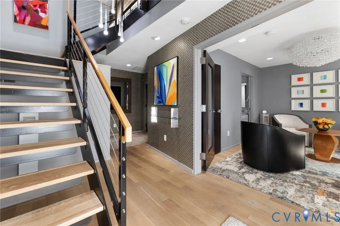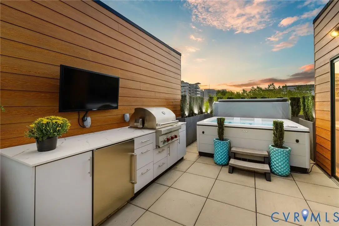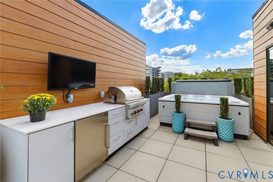 NEW PRICE at 7 West Townhomes, where architectural vision by Mario DiMarco Architects, merges the industrial heritage of Manchester with modern sophistication! Walls of glass showcase unobstructed views of the James River and downtown Richmond skyline, connecting each level to the vibrant city beyond. Enter through a private two-car garage, then ascend via private elevator or the dramatic floating staircase. This five-level residence offers three bedrooms and five baths, including a serene owners' suite with dual spa-like shower, soaking tub, towel warmer, private terrace, and custom walk-in closet. Meticulously curated finishes include solid white oak flooring, natural stone countertops, custom cabinetry, bespoke lighting, a 60""Â? linear fireplace, and TV's hidden by artwork! Venture up to the Mezzanine level and sit around the baby grand player piano, sending music throughout the 2-story living room below. The Chef's kitchen and butler's pantry, along with the rooftop kitchen, all feature Wolf and Sub-Zero appliances for seamless hosting. Smart home features include Control4 automation and Lutron motorized window treatments throughout. Everyday spaces, even the laundry and powder room, offer skyline views. Crowning the home is a private rooftop oasis with landscaped entertaining areas, outdoor kitchen and bar, Firepit table, and HOT TUB, all against sweeping sunset views of downtown. Steps from Stella's Manchester, Legends Brewing, The Continental, Brown's Island, and the James River Park System, this distinctive residence offers unmatched walkability and exclusivity. Industrial. Elegant. Connected.