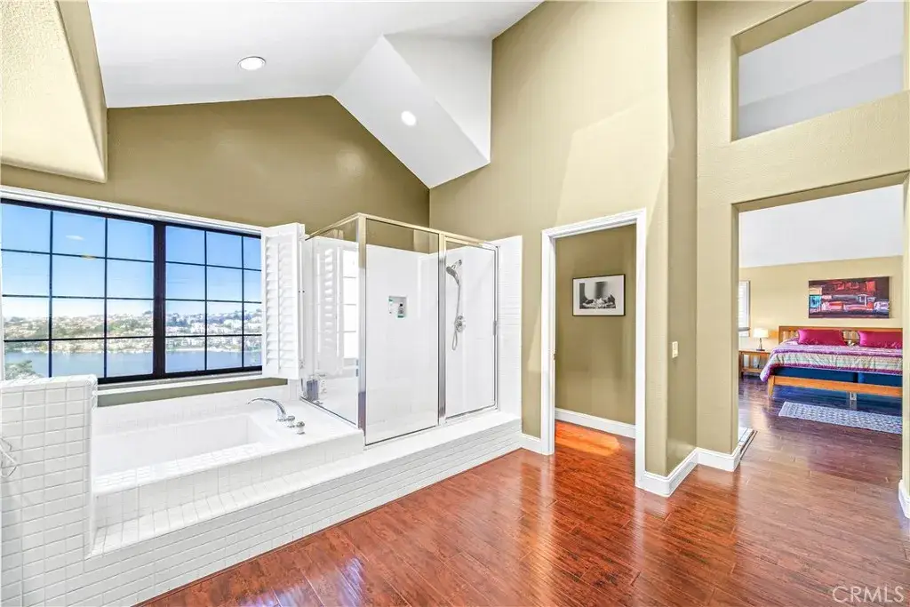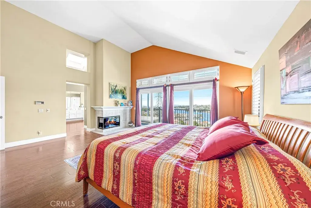 Simply stunning front row panoramic lake, city lights and sunset views from this exceptional, ideally situated floor plan that checks all the boxes. Located in the highly sought after guard gated community of Canyon Crest, this is the one! Starting with inviting curb appeal that includes custom stonework, established planting beds and a grassy lawn enter through a double door entry into a breathtaking lake view residence that truly has it all. Once inside a sweeping curved staircase, vaulted ceilings and great light from a spectacular abundance of windows set the tone. With engineered wood floors, designer paint and recessed lighting throughout you're drawn into an oversized formal living room with great light and a cozy fireplace and the accompanying formal dining room which has French doors out to the lake view deck. Next are a fantastic entertainer's chef's kitchen and an expansive family room. With upgraded travertine tile floors, quartz counters, including the central task island with breakfast bar seating the kitchen features an abundance if prep and storage space and great light from a wall of view windows and French doors out to the deck. Featuring stainless steel appliances, a commercial grade refrigerator, a walk-in pantry and a bar peninsula that adjoins the family room, this kitchen has it all. Anchored by a warm and inviting fireplace and dual French doors out to the patio the family room is the setting for true indoor/outdoor living. A highly desirable guest bedroom or office and guest bath with a step-in shower are just off of the living spaces. An inside laundry room and direct garage access completes the lower level. With amazing lake and city lights views the primary suite has view deck access, a private third fireplace and a dual sink vanity, view soaking tub, separate shower, dual closets and a privacy water closet door ensuite. Opposite, at the front of the house is an upper level living room and between them there are two bedrooms separated by a Jack & Jill bath. Out back is a custom view deck with a barbeque island, a shady patio cover, a firepit, room for multiple seating areas and panoramic views from everywhere. An attached 3 car garage and a 3-car driveway completes the residence. Situated on a single loaded front row lake view street in highly sought after Canyon Crest, enjoy access to great amenities, and with the lake association, enjoy everything the lake has to offer as well. Welcome Home.