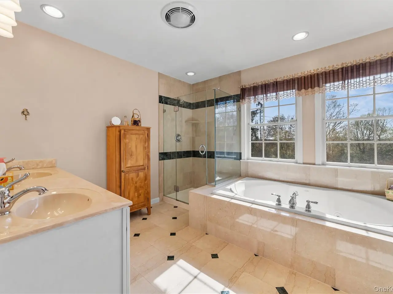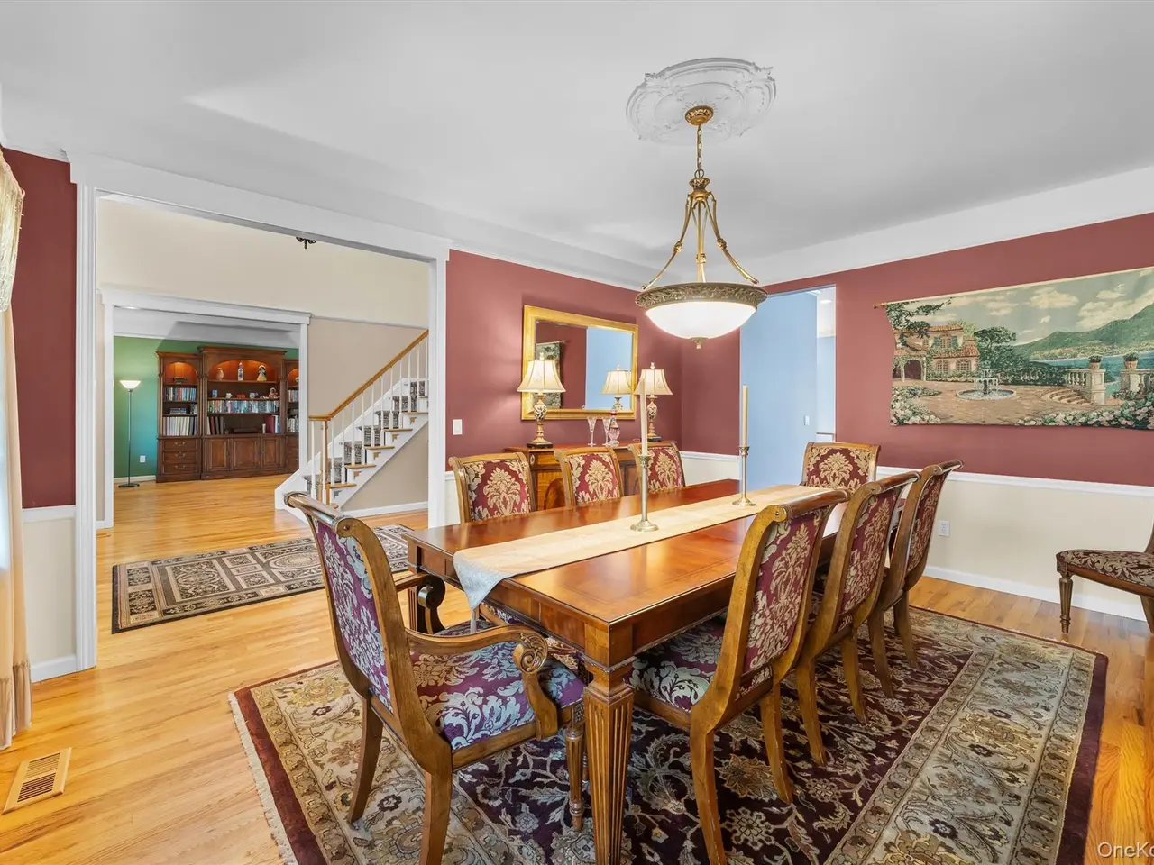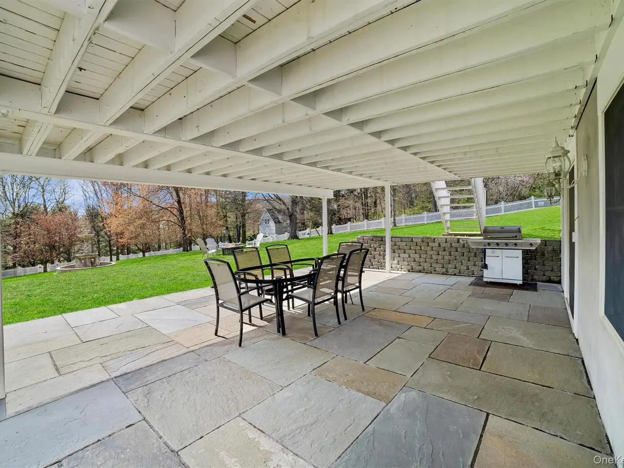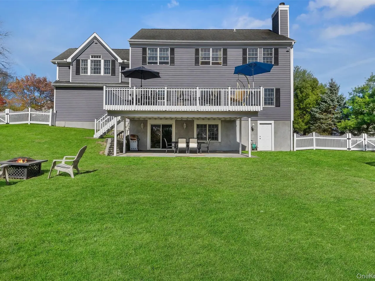 Welcome to Bari Estates. This beautifully maintained home shows pride of ownership in this impressive front porch colonial style. This home shows like a five bedroom and features a light and airy open two story entry, oversized dining room flows to a sundrenched eat in kitchen with butlers' server which opens to the family room with fireplace and sliding glass doors out to an oversized 25' x 20' deck overlooking a private and fenced yard with an imported water fountain from Europe. Enjoy and relax on your oversized deck or your covered blue stone patio and watch the most amazing and breathtaking sunsets as you finish the day. The primary bedroom offers tray ceilings, a walk-in closet and on-suite bathroom with a deep soaking tub and separate glass surround shower, three generous sized bedrooms and a light and airy bonus room at the end of the hall, perfect for a media room, game room, home office or for the extended family. The finished lower level offers more room to enjoy as a rec room, game/media room or guest room with sliders out to an oversized blue stone patio, plenty of storage in the lower level too and enjoy your own wine cellar. All of this and conveniently set and close to town shopping, bike trail, walking trails, major shopping, restaurants, Yorktown schools, parks, parkway and minutes to the metro north train station.
