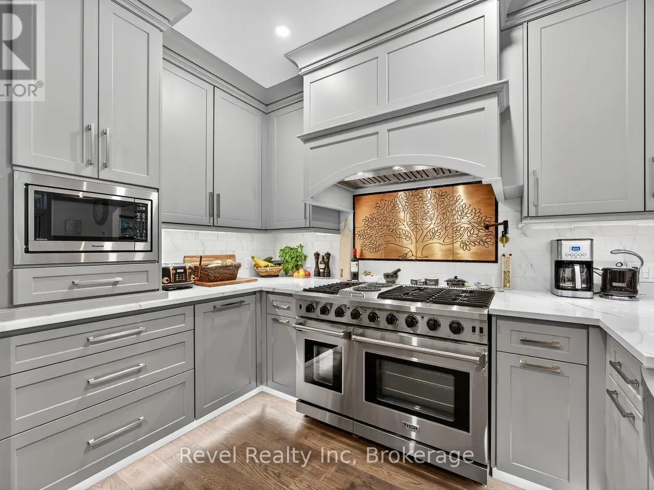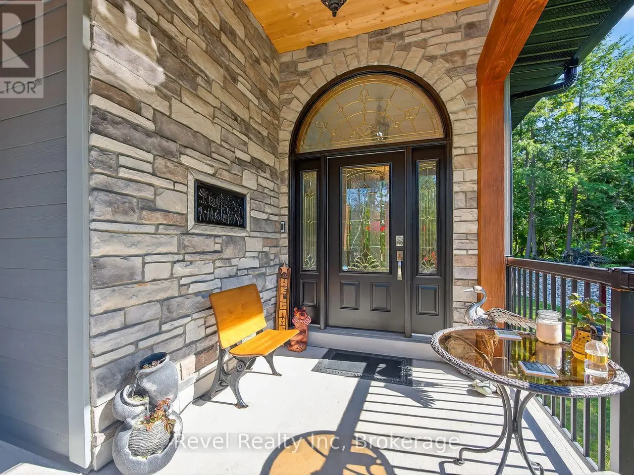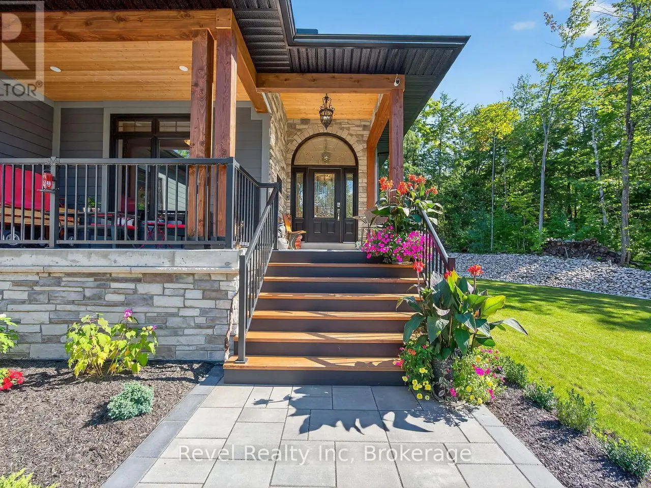 Luxury Living in Exclusive Thunder Beach! Imagine waking up beneath the serene Nipissing Ridge on 1.7 acres of landscaped privacy, with turquoise waters of Georgian Bay just steps away. This nearly new executive bungalow is a rare opportunity to call one of Georgian Bays most prestigious communities home. Every detail of this residence speaks to quality and craftsmanship. Built with ICF foundation and French drains for lasting comfort and energy efficiency, it also showcases rich hardwood floors, custom cabinetry, and spa-inspired bathrooms. The covered porch welcomes you into an airy, open-concept design where a chefs kitchen, featuring a Thor stove, pot filler, walk-in pantry, and multimedia bar, seamlessly connects to the dining area and covered deck. Every window frames tranquil views of trees, never neighbors. The primary suite offers a walk-in closet and a serene ensuite with an oversized glass shower equipped with multiple showerheads for your private spa retreat. Two additional bedrooms and a second full bath complete the main level. The finished lower level extends the lifestyle: radiant in-floor heating, a custom bar, built-in media surround, and oversized windows create a sophisticated entertaining space. Two more bedrooms, a full bathroom, and a walk-up to the heated garage ensure versatility perfect for an in-law suite. Beyond the home, the Thunder Beach lifestyle awaits. Ownership here means more than just a property its belonging to a community. Enjoy access to tennis courts, a private golf club, and a vibrant social scene that has defined this enclave for generations. And as the day closes, watch the horizon light up with sunsets that paint the sky in breathtaking shades of pink and gold. This is not just a home. It is an invitation to live exceptionally where luxury, lifestyle, and Georgian Bays natural beauty come together in perfect harmony. (id:7434)